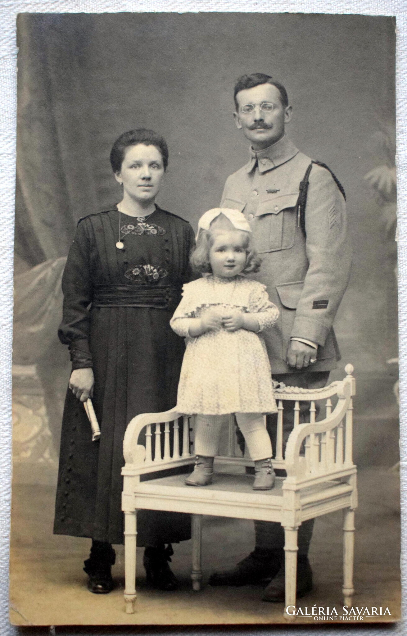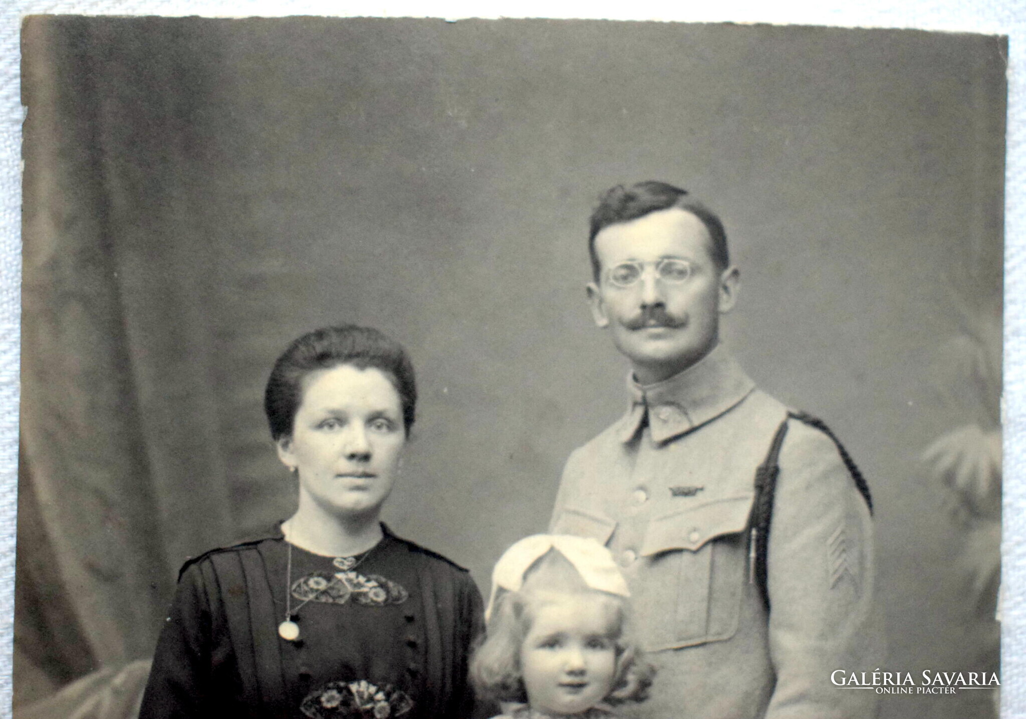 Antik katonai keményhátú , családi / műtermi fotó körbevágva