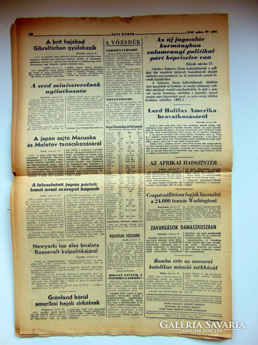 1941 március 27 / ESTI KURIR / RÉGI EREDETI ÚJSÁG Ssz.: 722