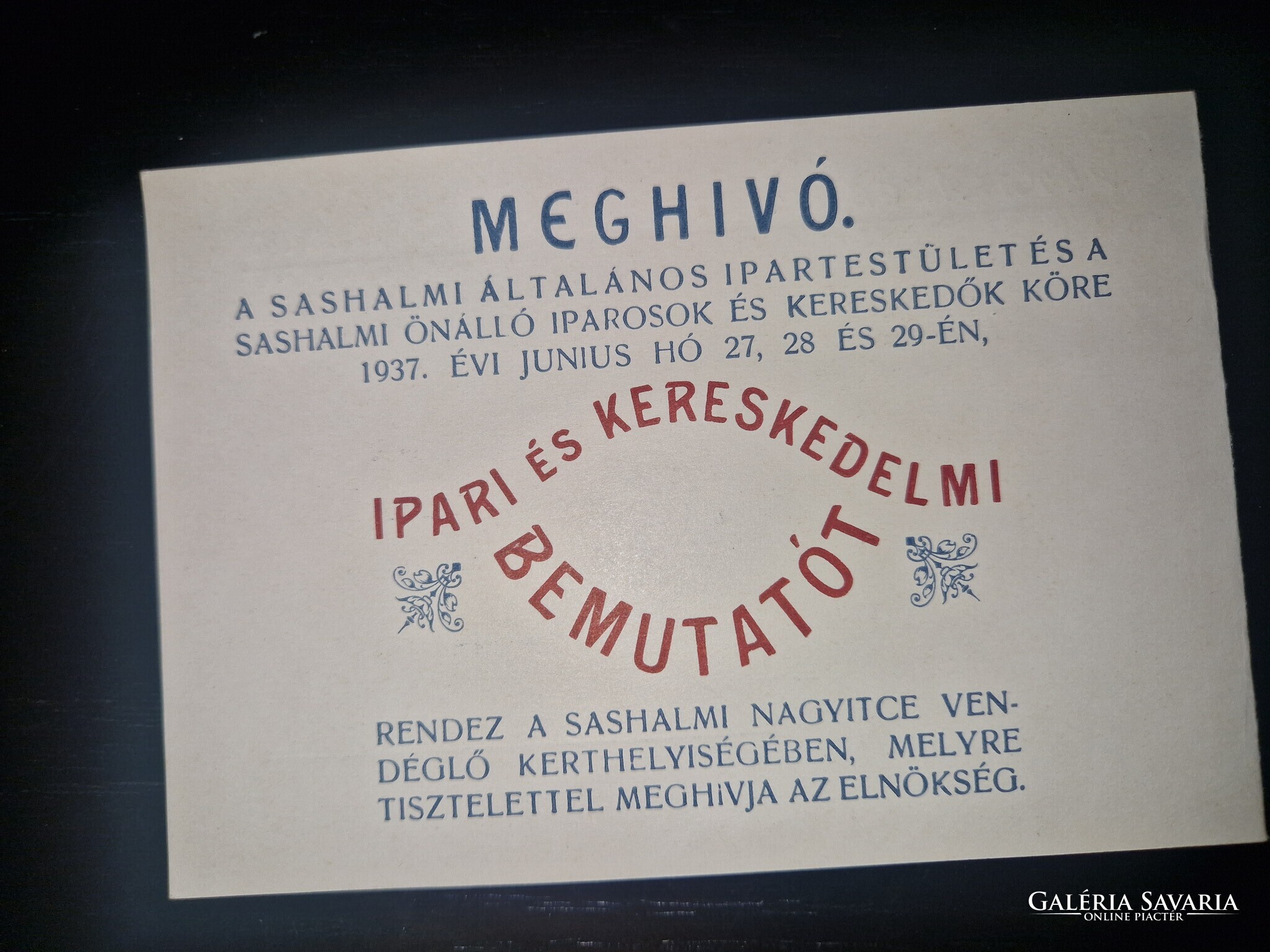 1937, Sashalom, az Ipartestület meghívója az Ipari és Kereskedelmi Bemutatóra