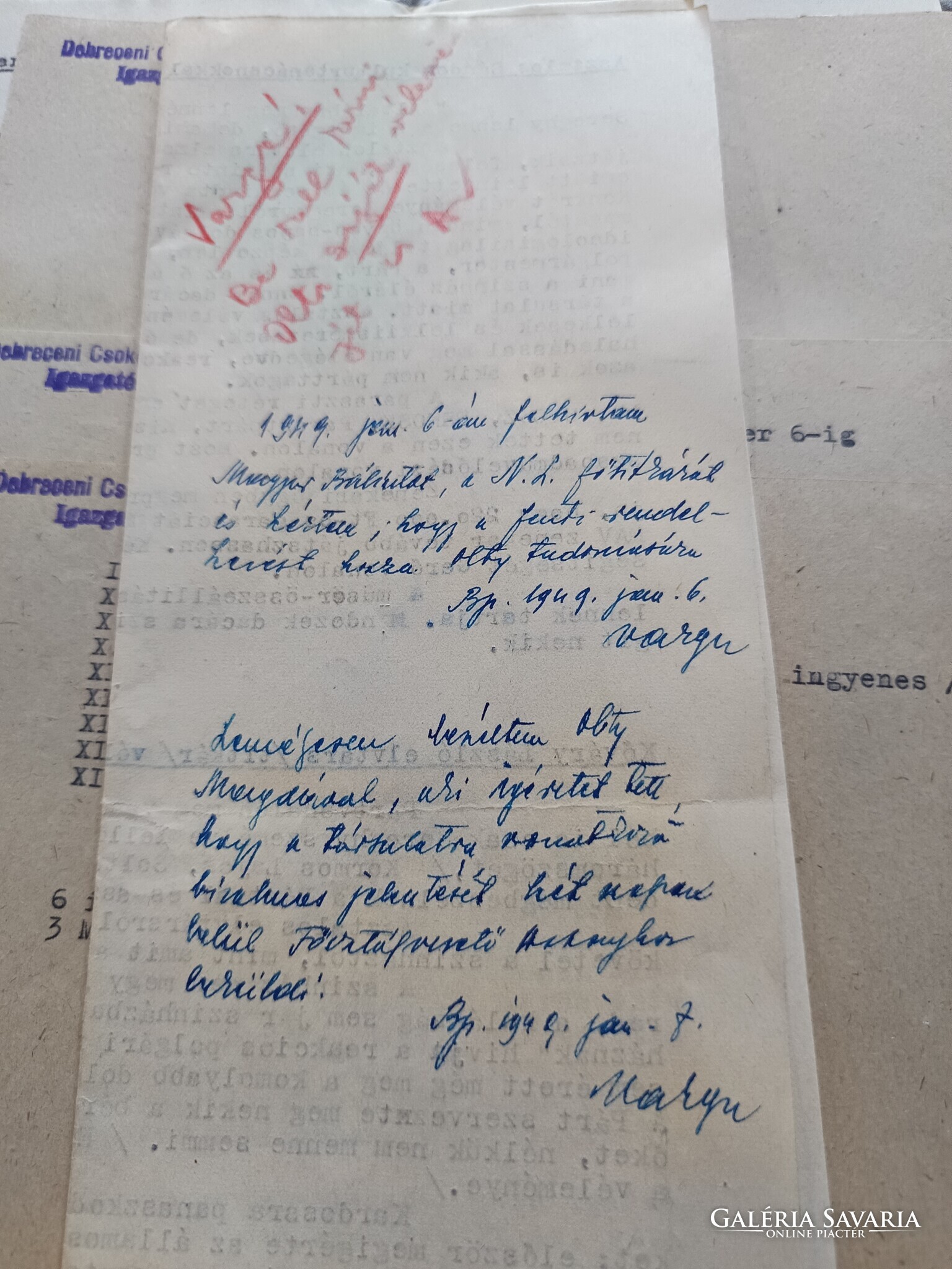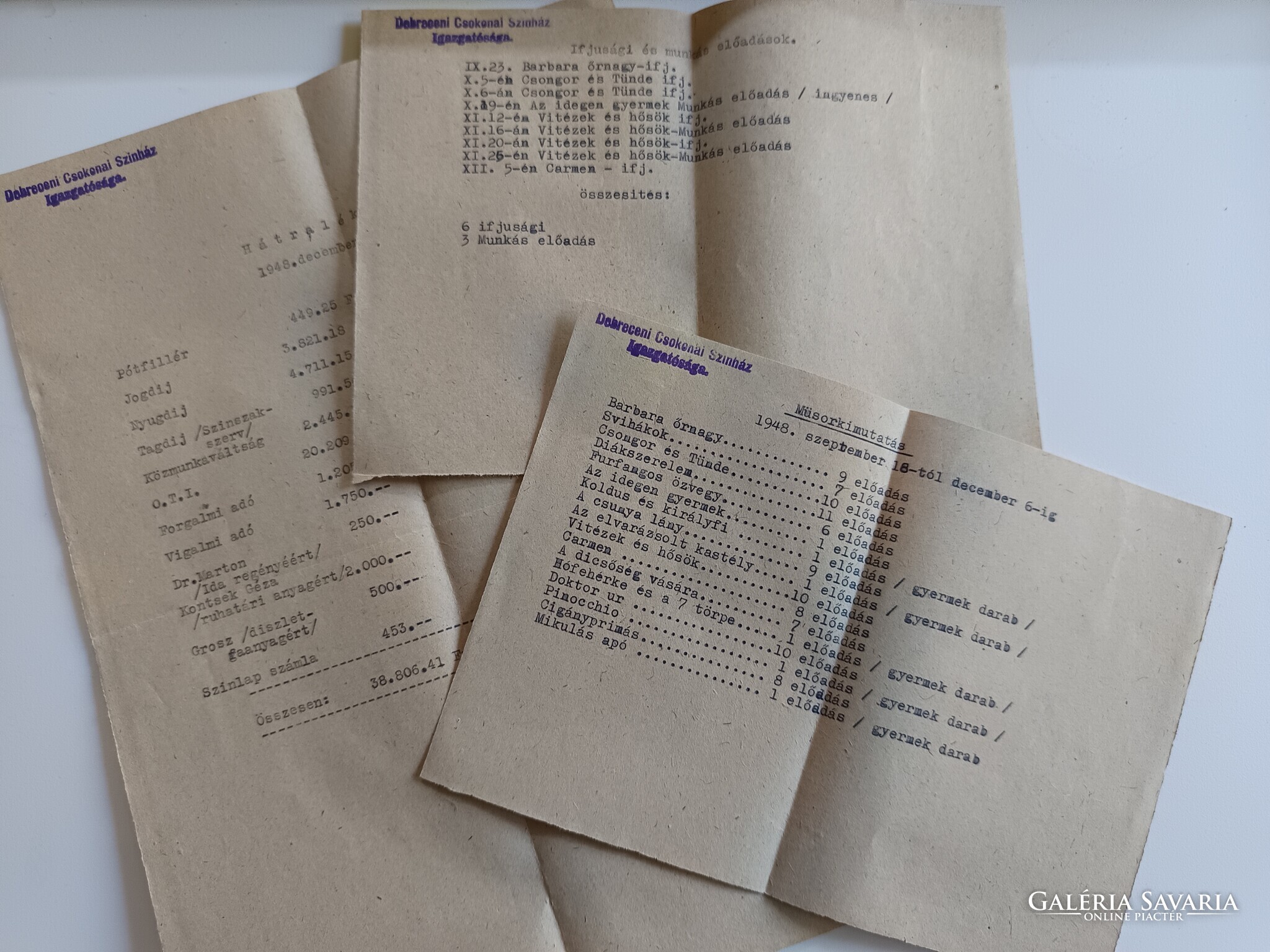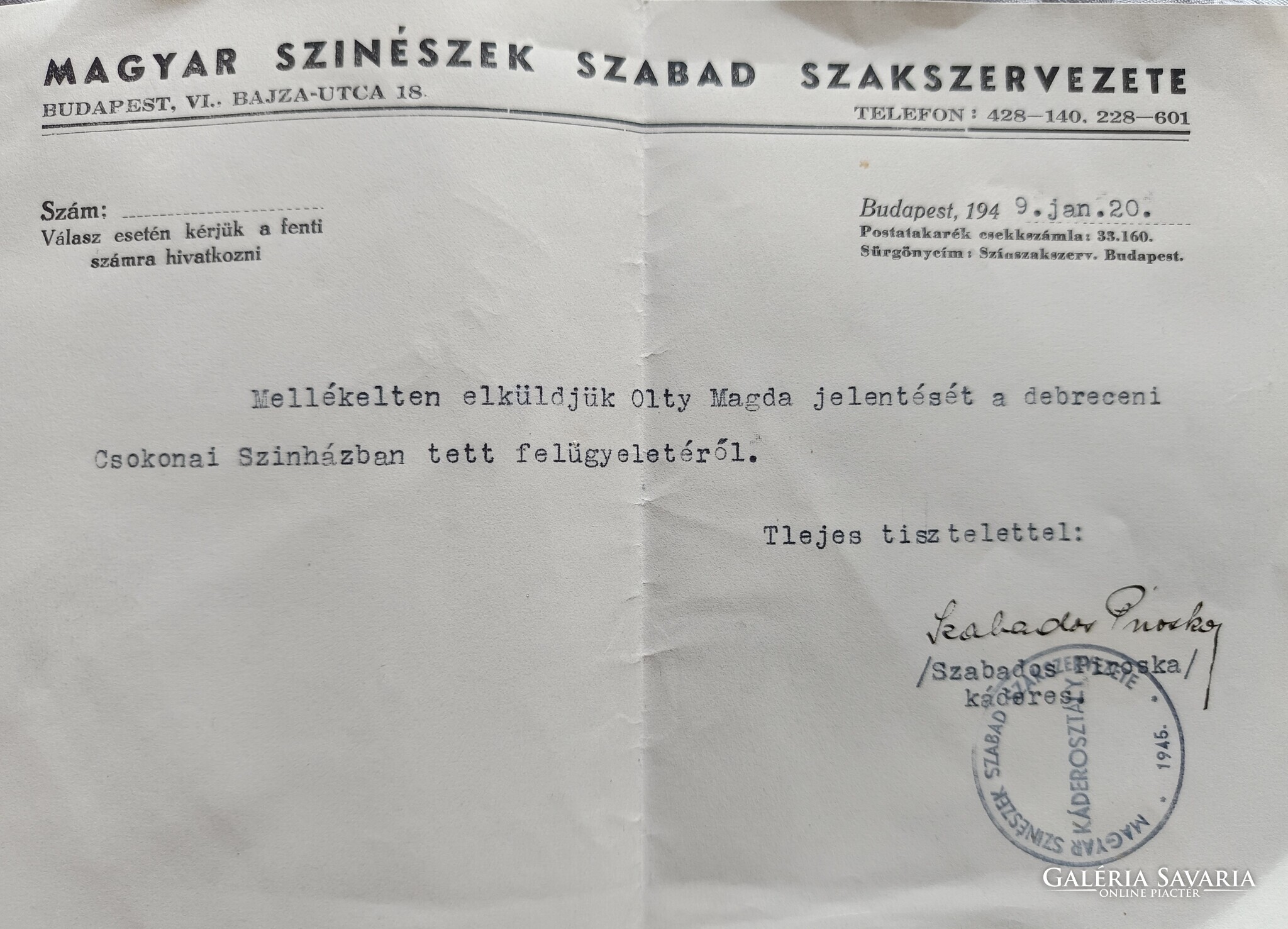 Olthy Magdolna jelentése a Sereghy Andor vezette debreceni Csokonai színházról. Eredeti aláírt dokumentumok!