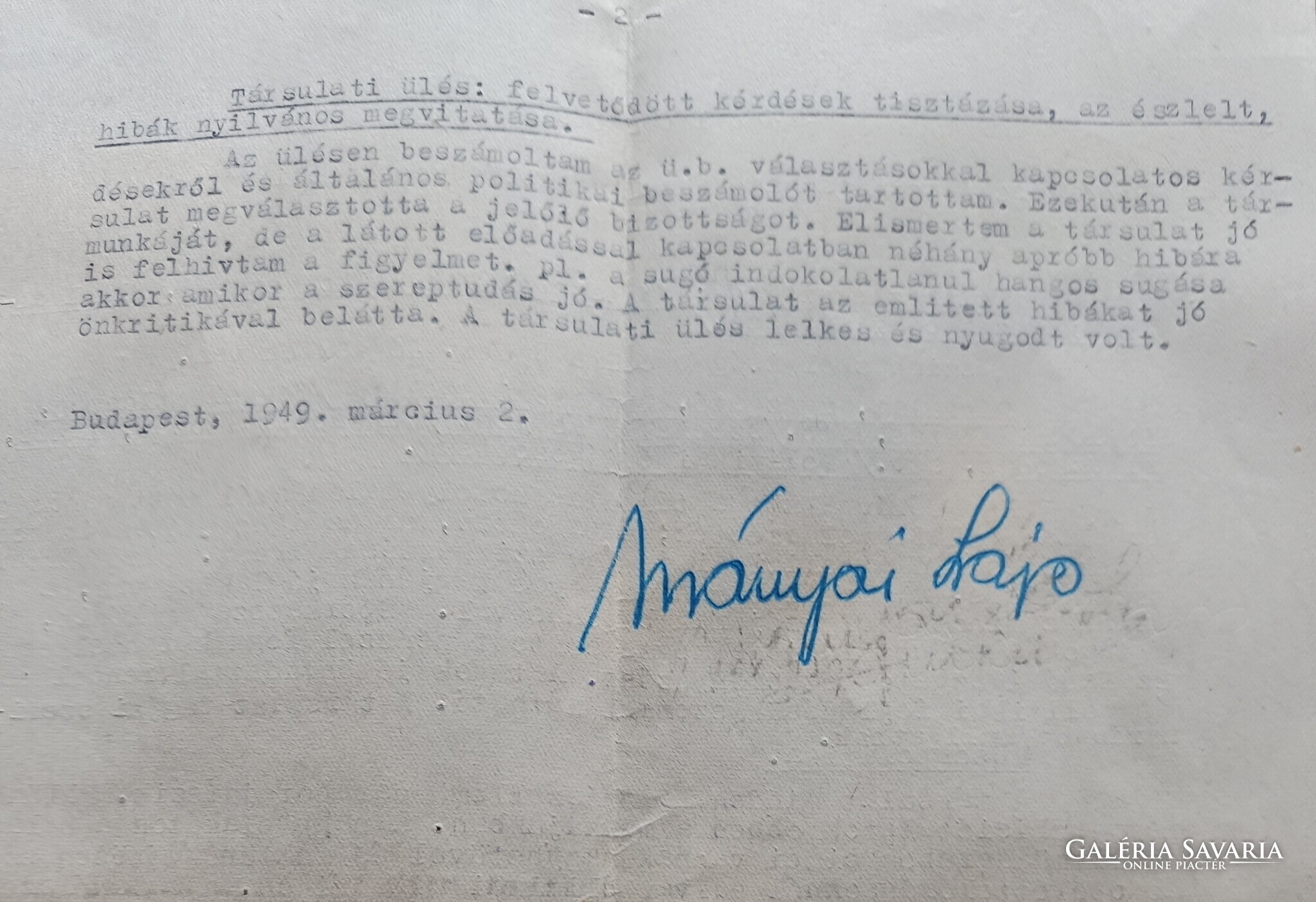 Mányai Lajos jelentése a Radó László kecskeméti sziniigazgató társulatáról. Eredeti aláírt dokumentum!