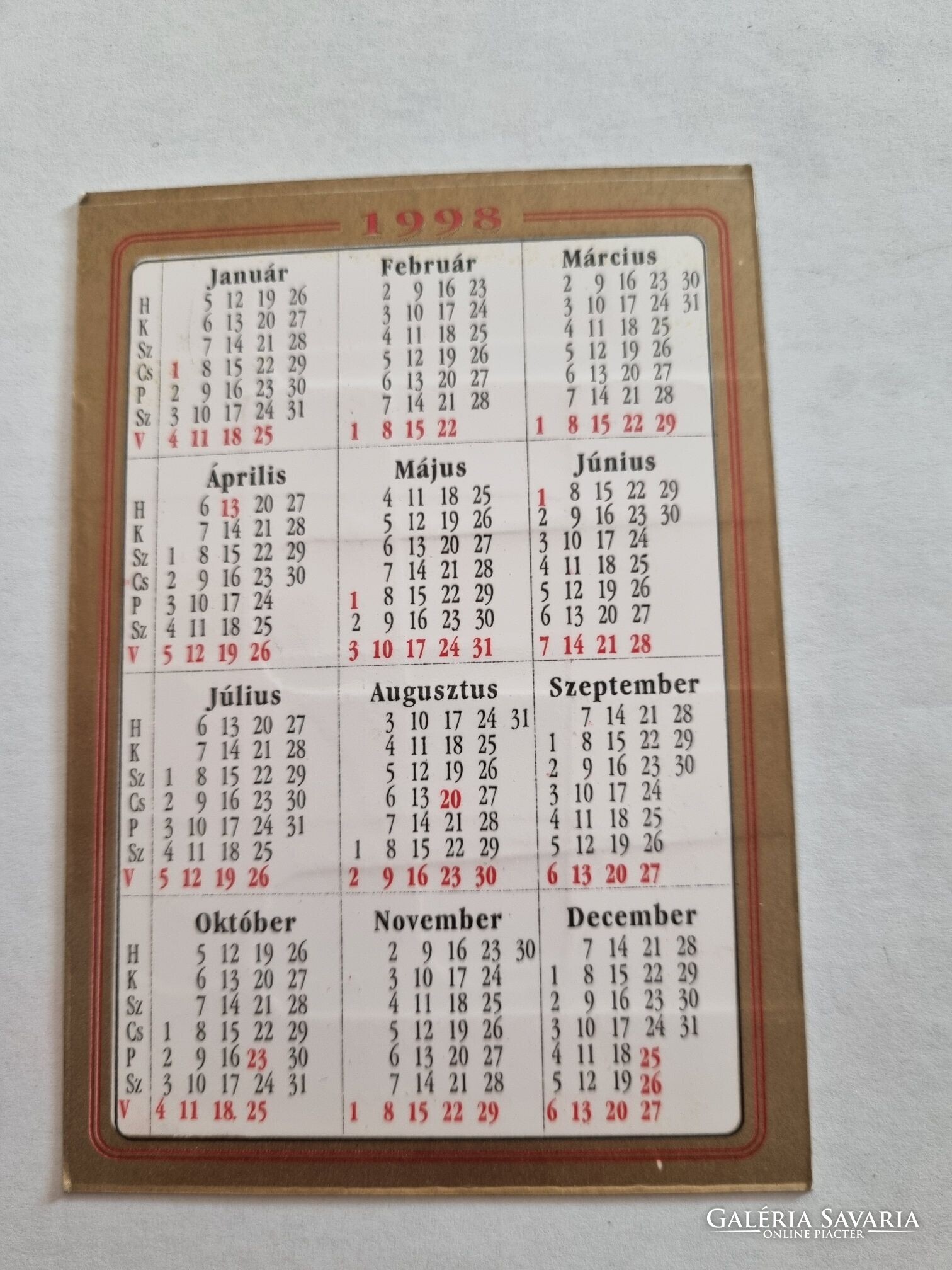 Eladó egy darab Fővárosi Önkormányzat 1998. évi kártyanaptár - Katona Tamás