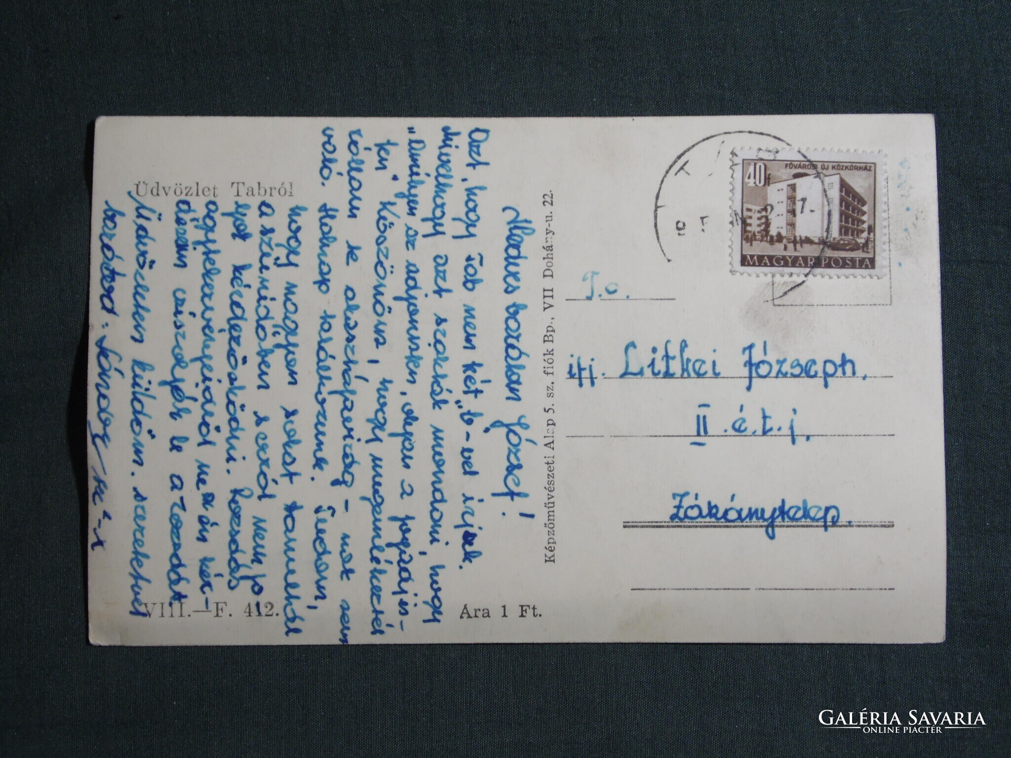 Képeslap,Tab,iskola,egészségház,község látkép,részlet,1950-