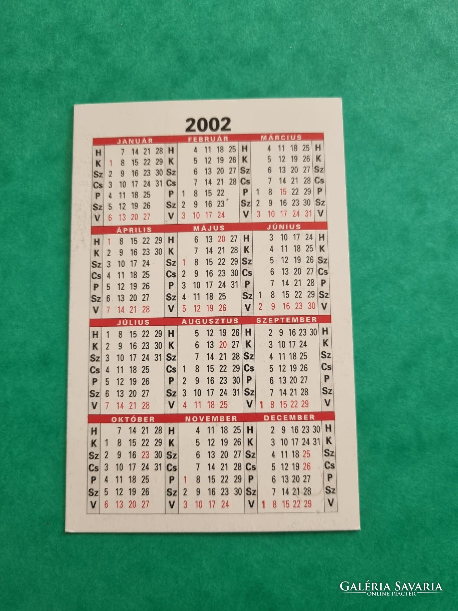 2002. évi kártyanaptár.