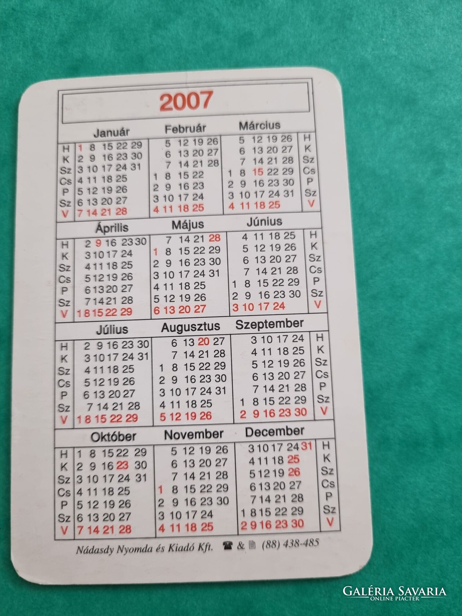 Eladó egy darab RÁRÓI PÉKSÉG Ásványráró 2007. évi kártyanaptár.