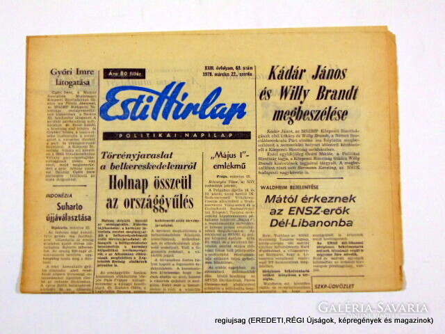1978 március 22 / Esti Hírlap / E R E D E T I, R É G I Újságok Ssz.: 12617