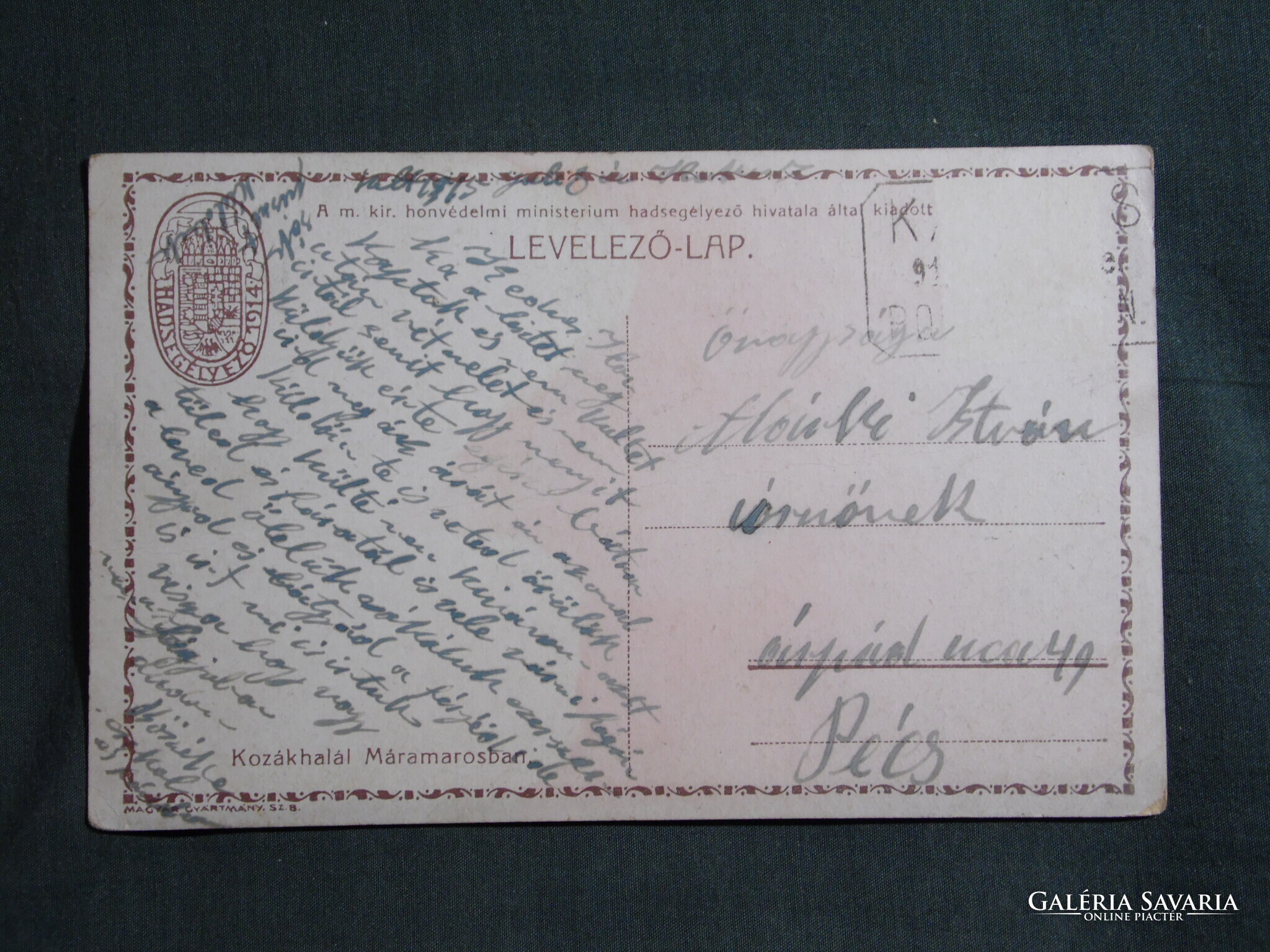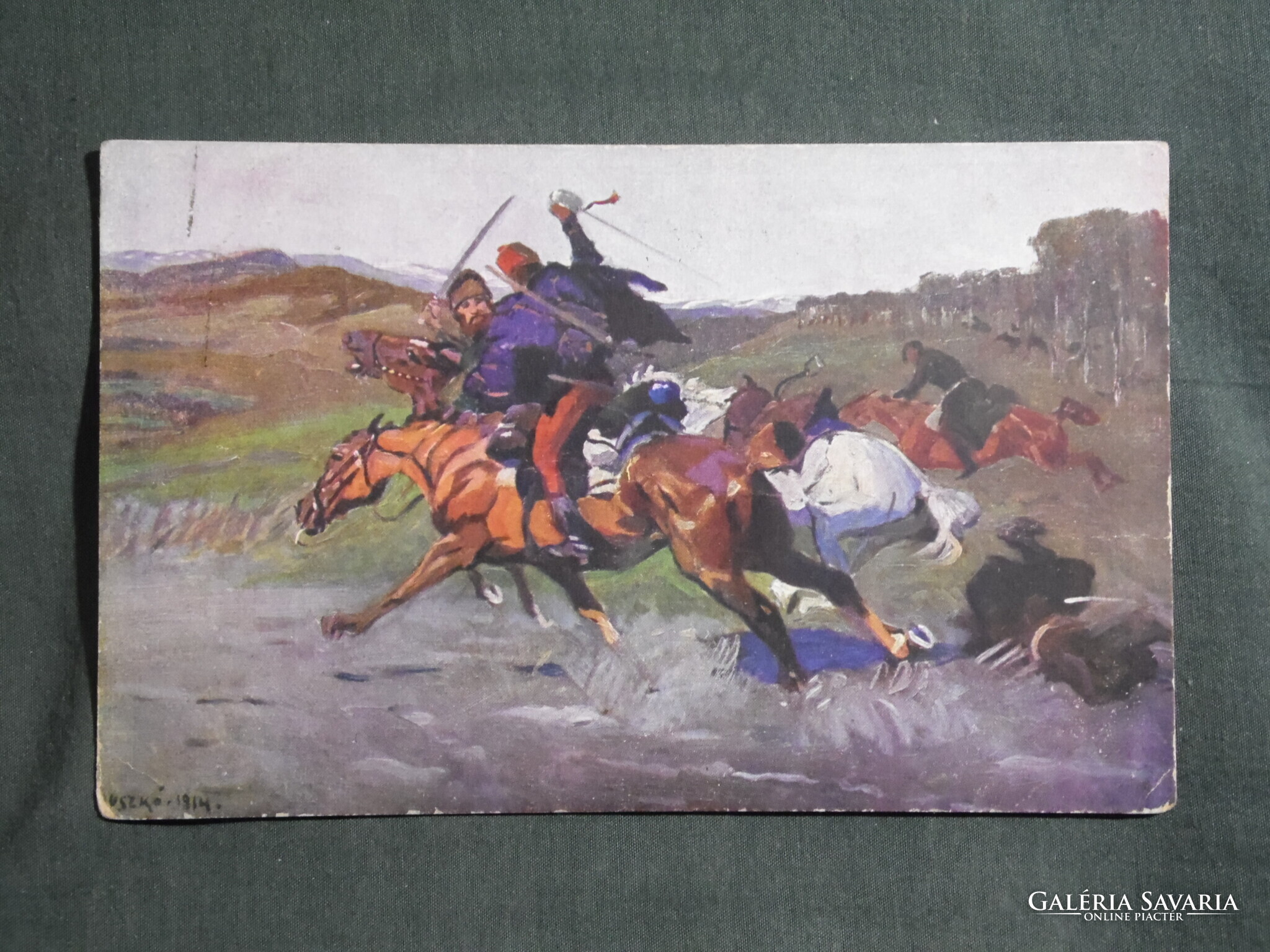 Képeslap,Honvédelmi minisztérium hadsegélyező hivatal,Kozákhalál Máramarosban,huszár,katona, 1915-