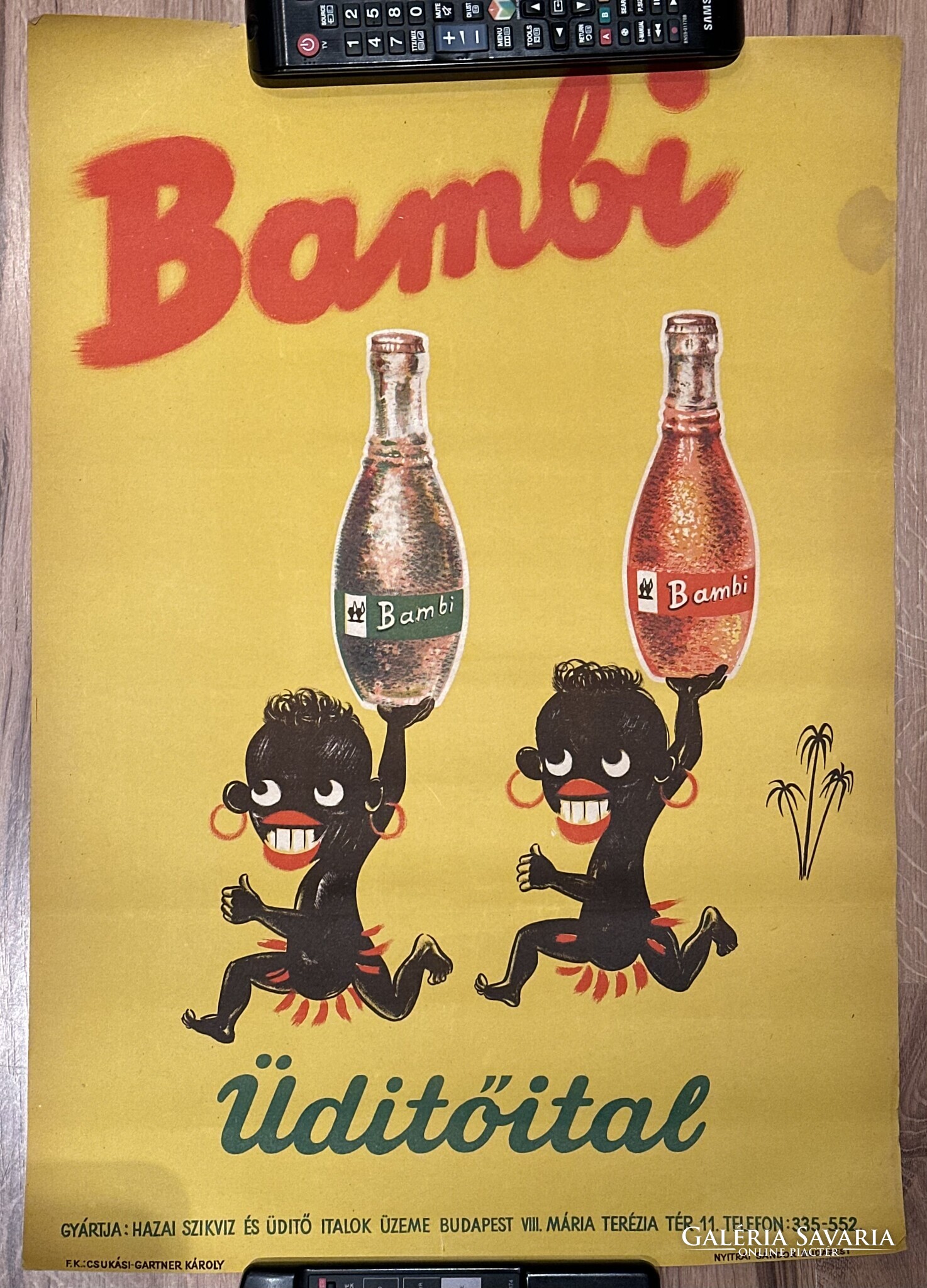 Eladó 1947 es Bambi üdítőital reklámplakát a képeken látható állapotban 59*42 cm méretben