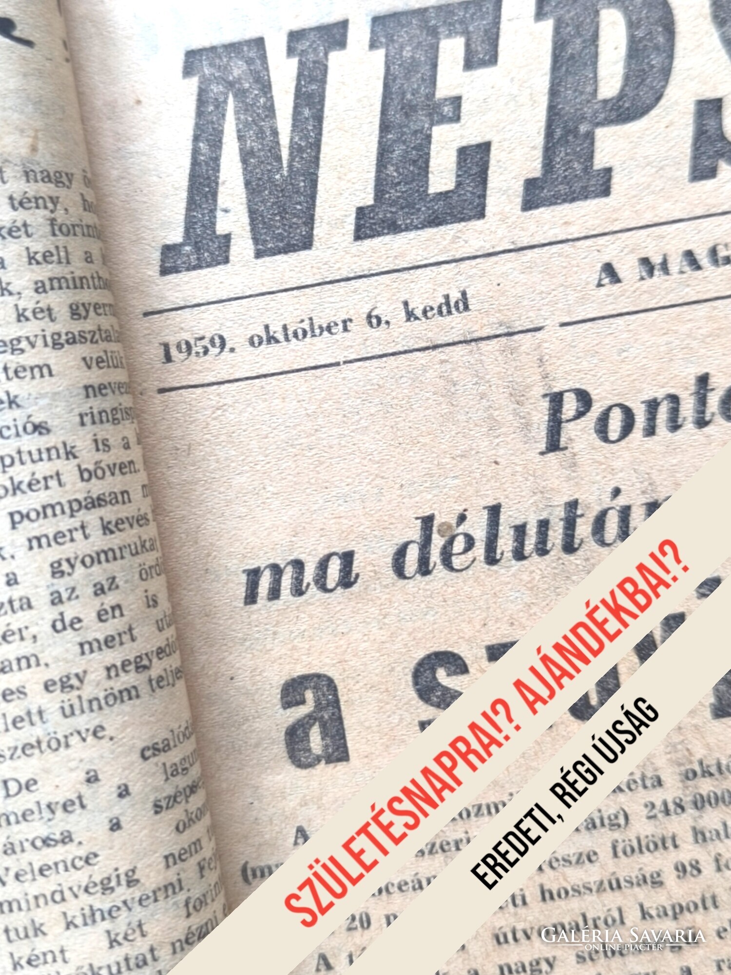 A Népszabadság 1959-es lapszáma a Kádár-korszak elejének jellegzetes sajtóterméke. Oldalain a bel- és külpolitikai hírek, pártközlemények, gazdasági beszámolók és társadalmi témák jelennek meg, a korszak hivatalos nyelvezetében. Egy ilyen napilap nemcsak hírlap, hanem hiteles kordokumentum: megmutatja, miről és hogyan tájékoztatták az embereket a mindennapokban.