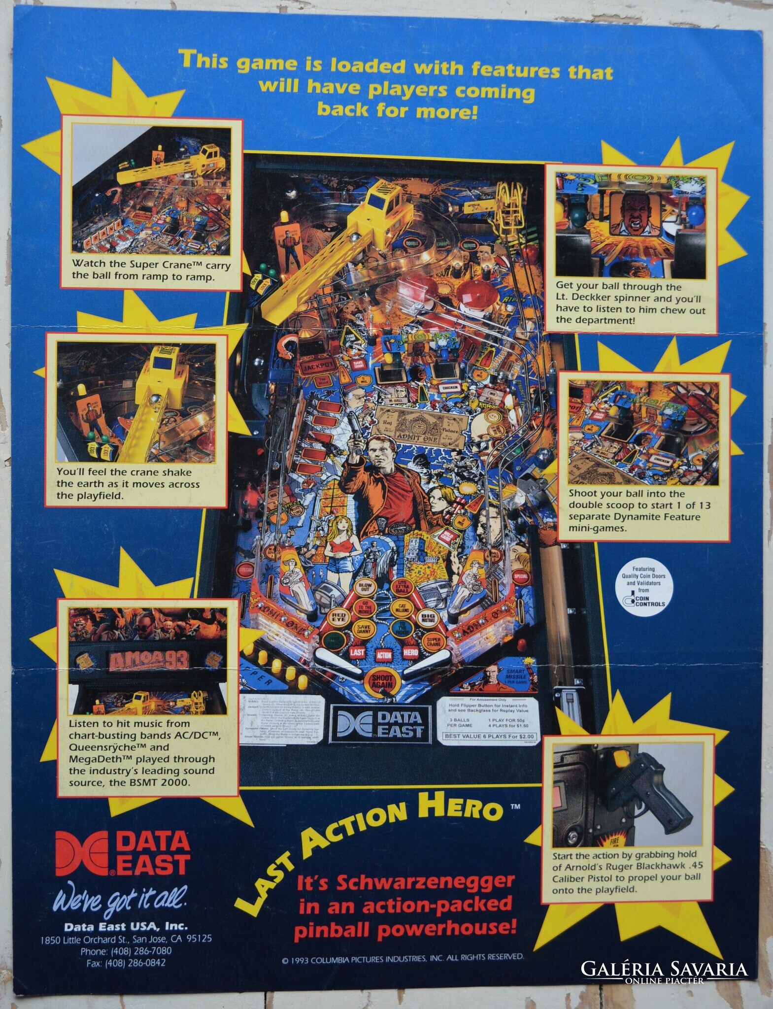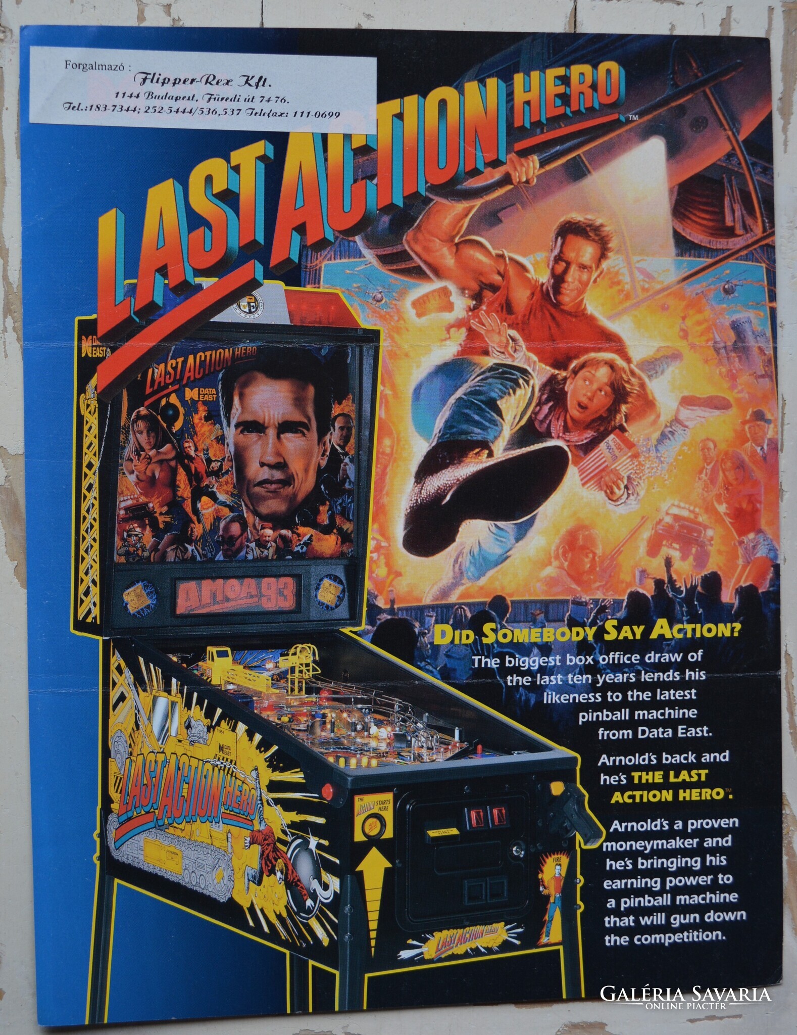 Pinball flyer Data East "Last Action Hero" Flipper reklám prospektus