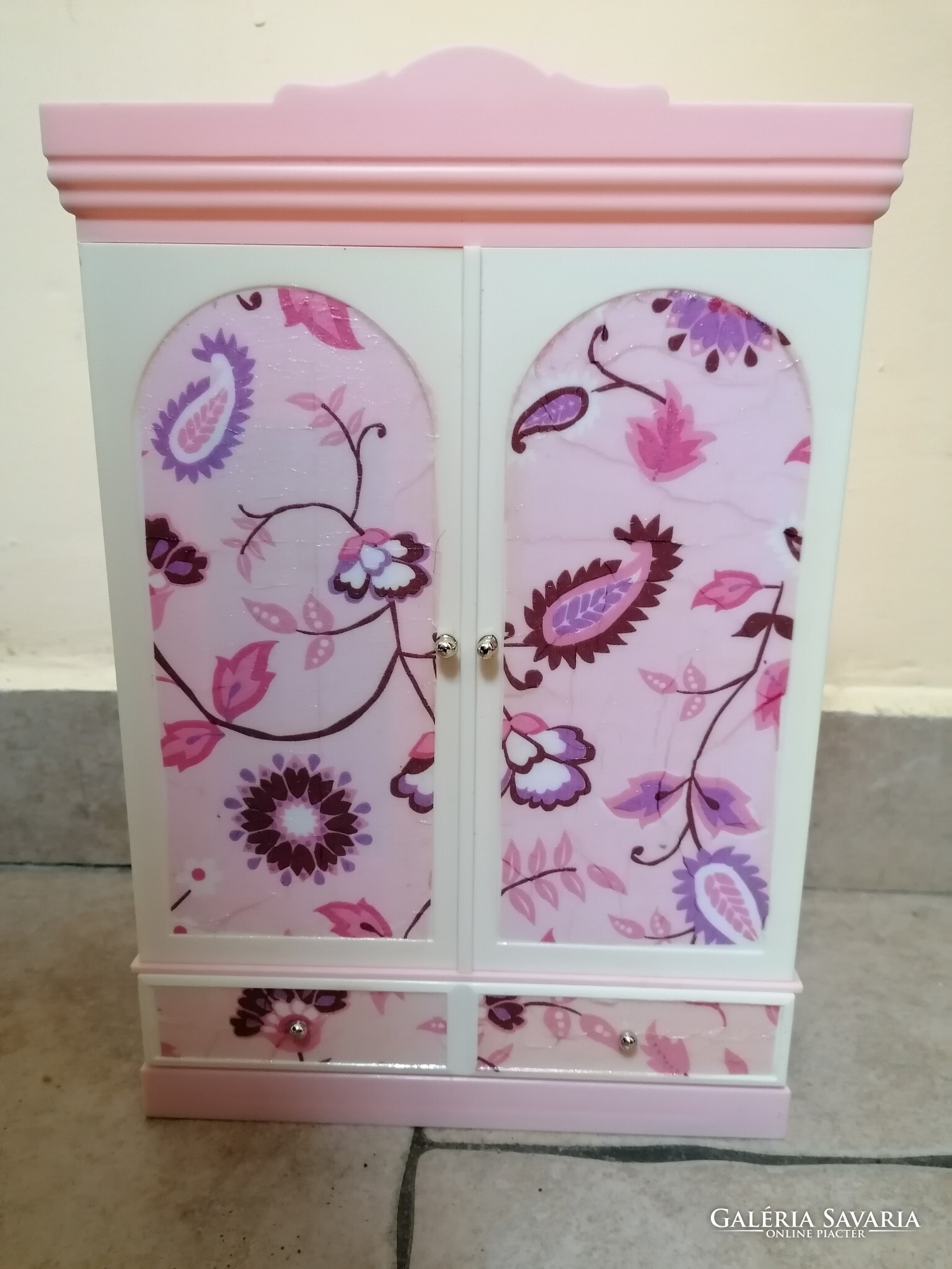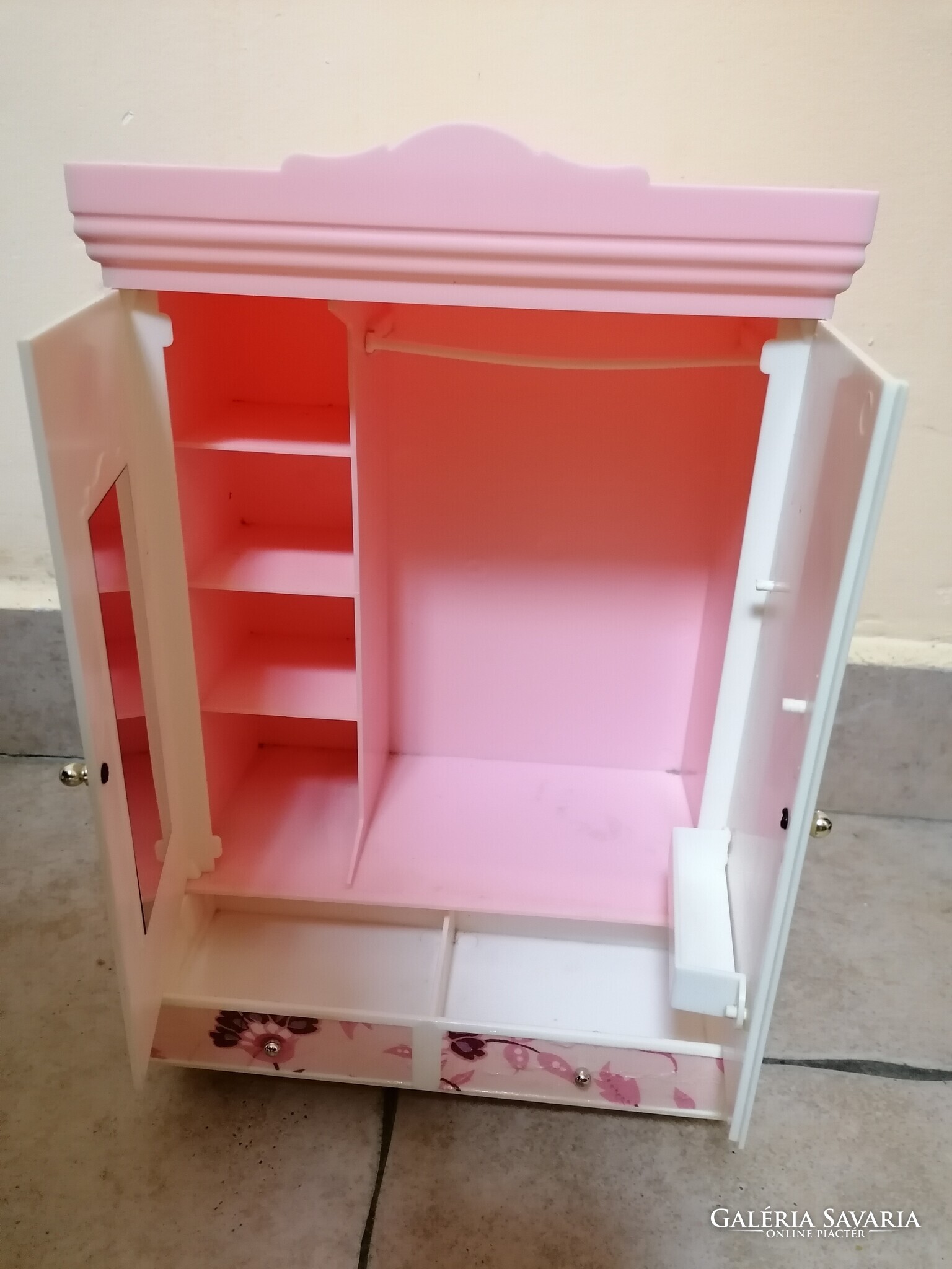 Barbi ruhás szekrény, akasztós rész alul 2 fiók. Műanyagból készült.