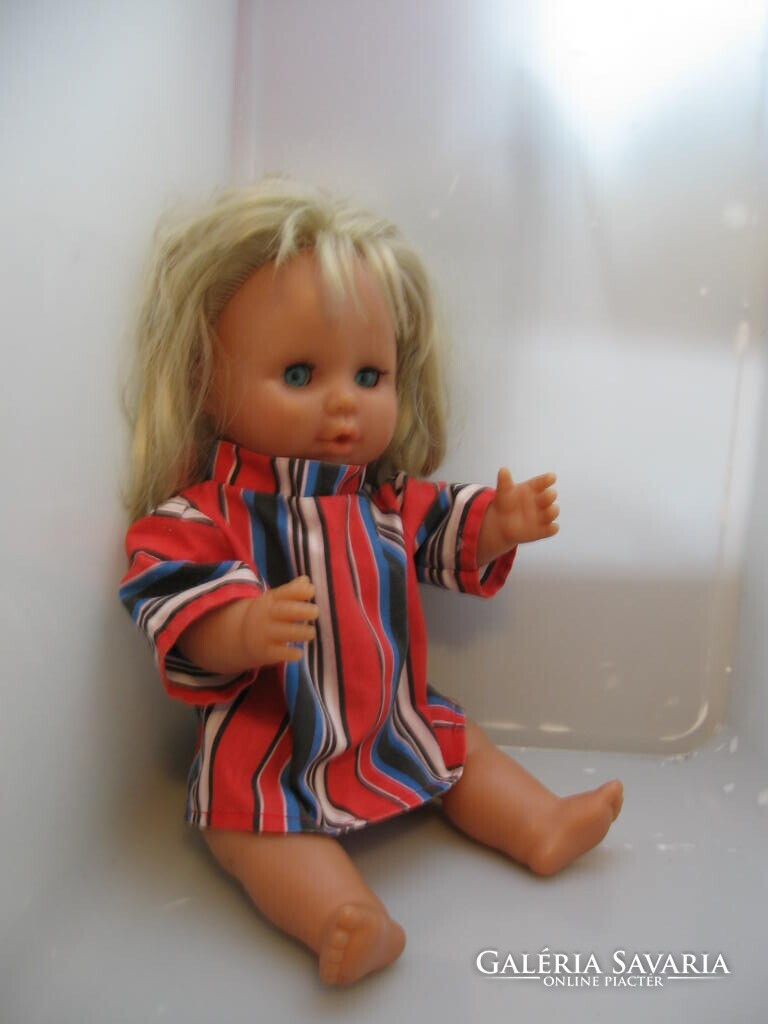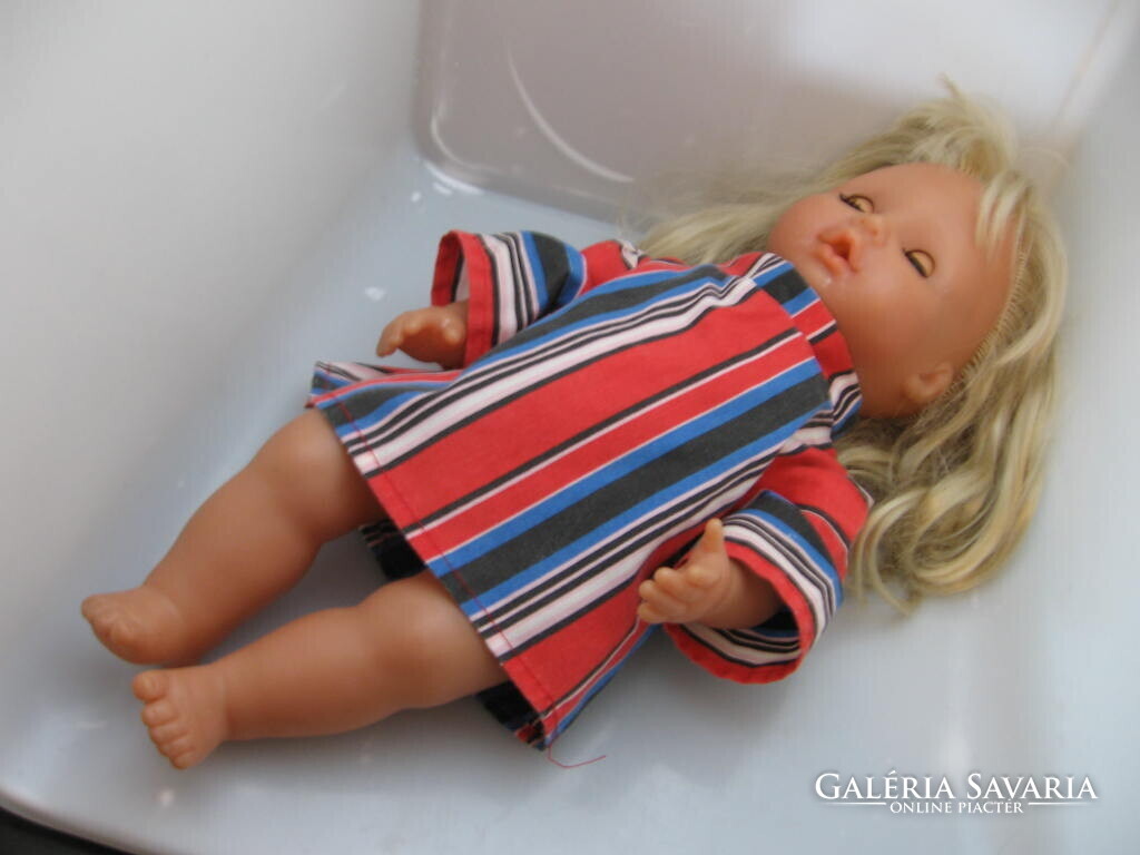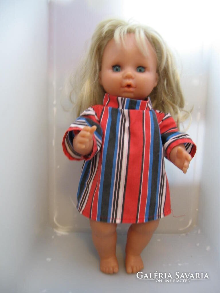 40 cm -es , kemény testű , szép hajú, csíkos retro ruhában.Rödental