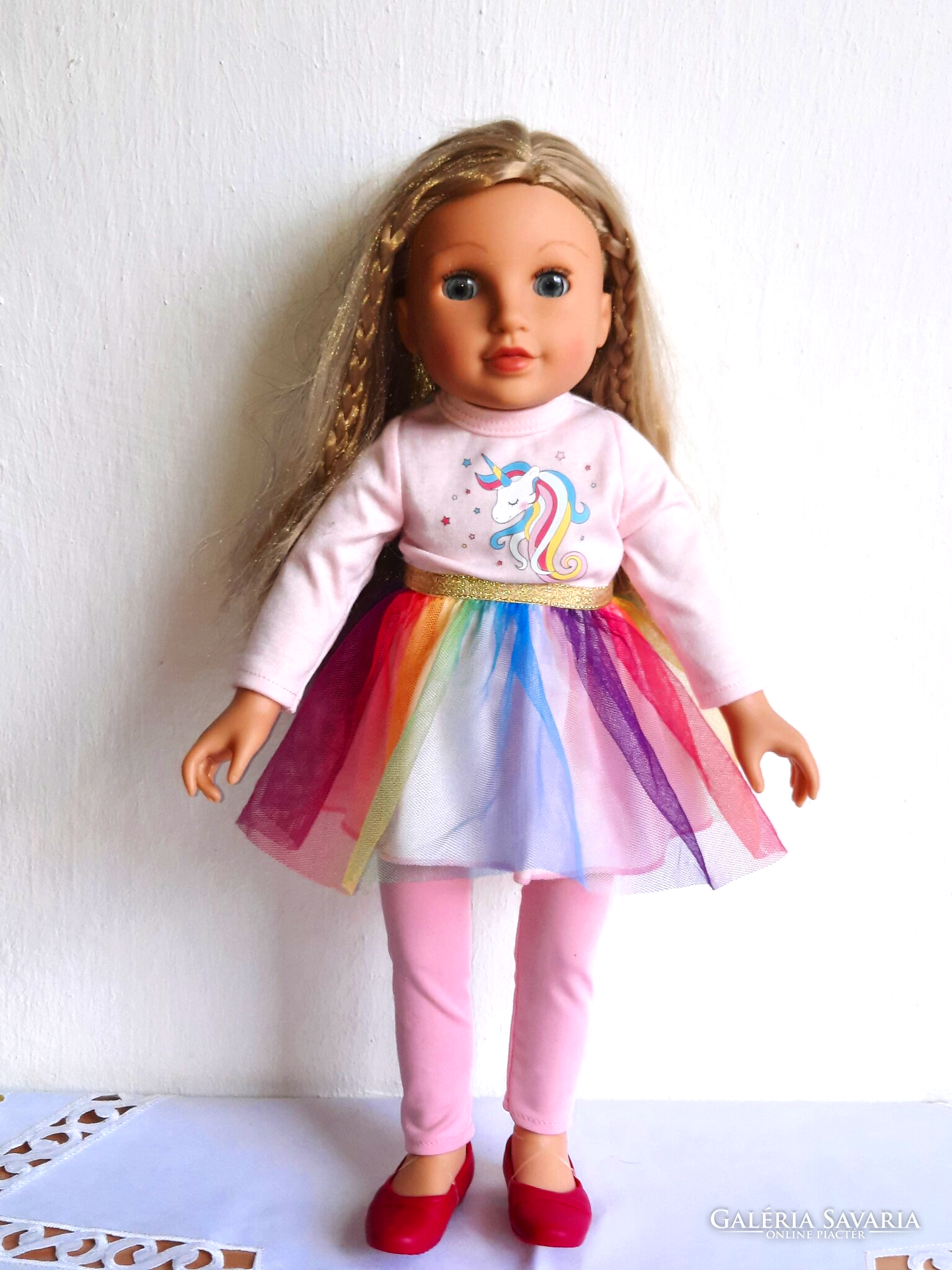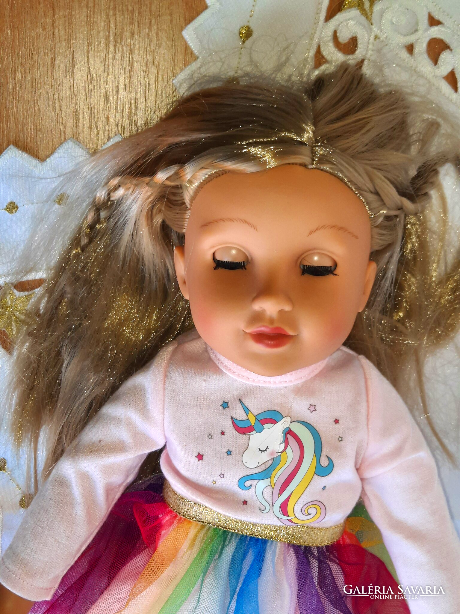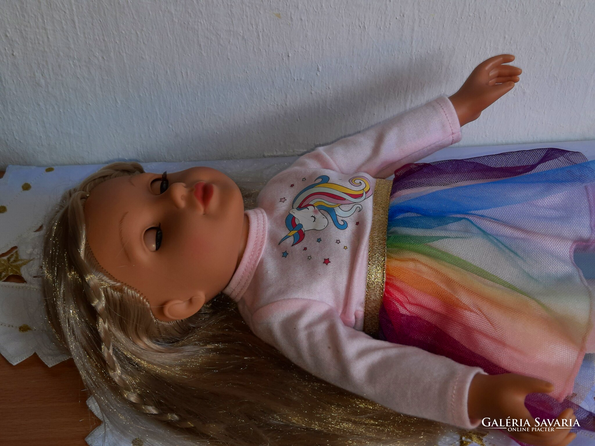 Gyönyörű alvós, hajas baba eladó. Magassága: 46 cm. Hibátlan állapotú.