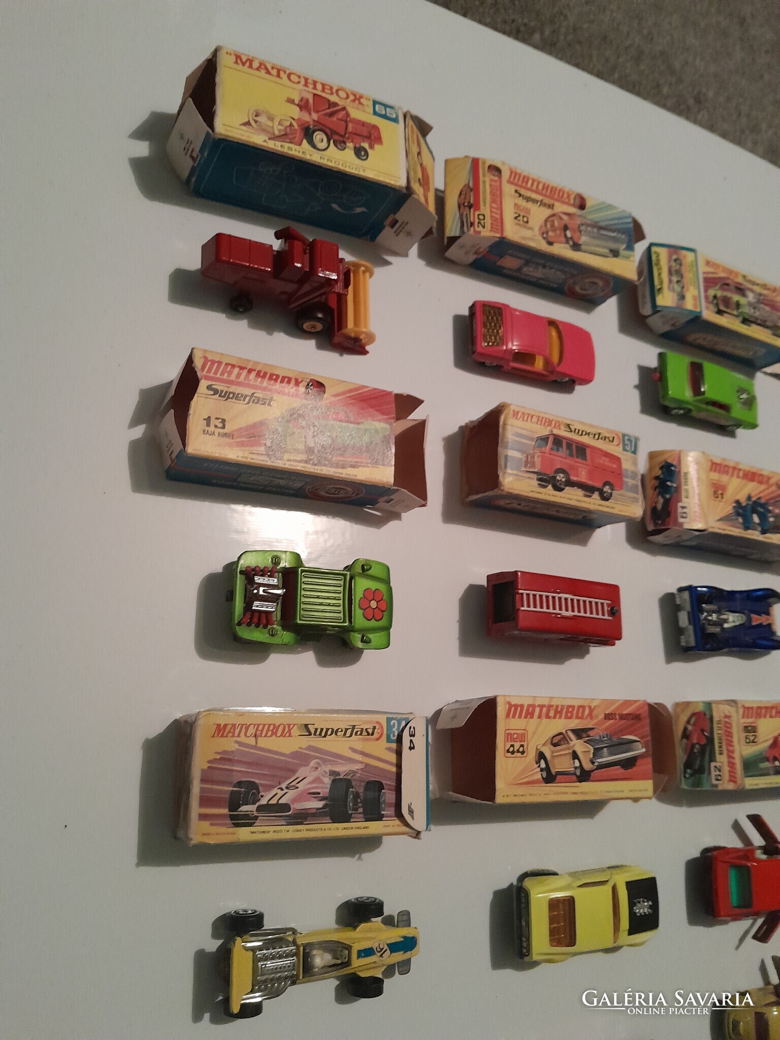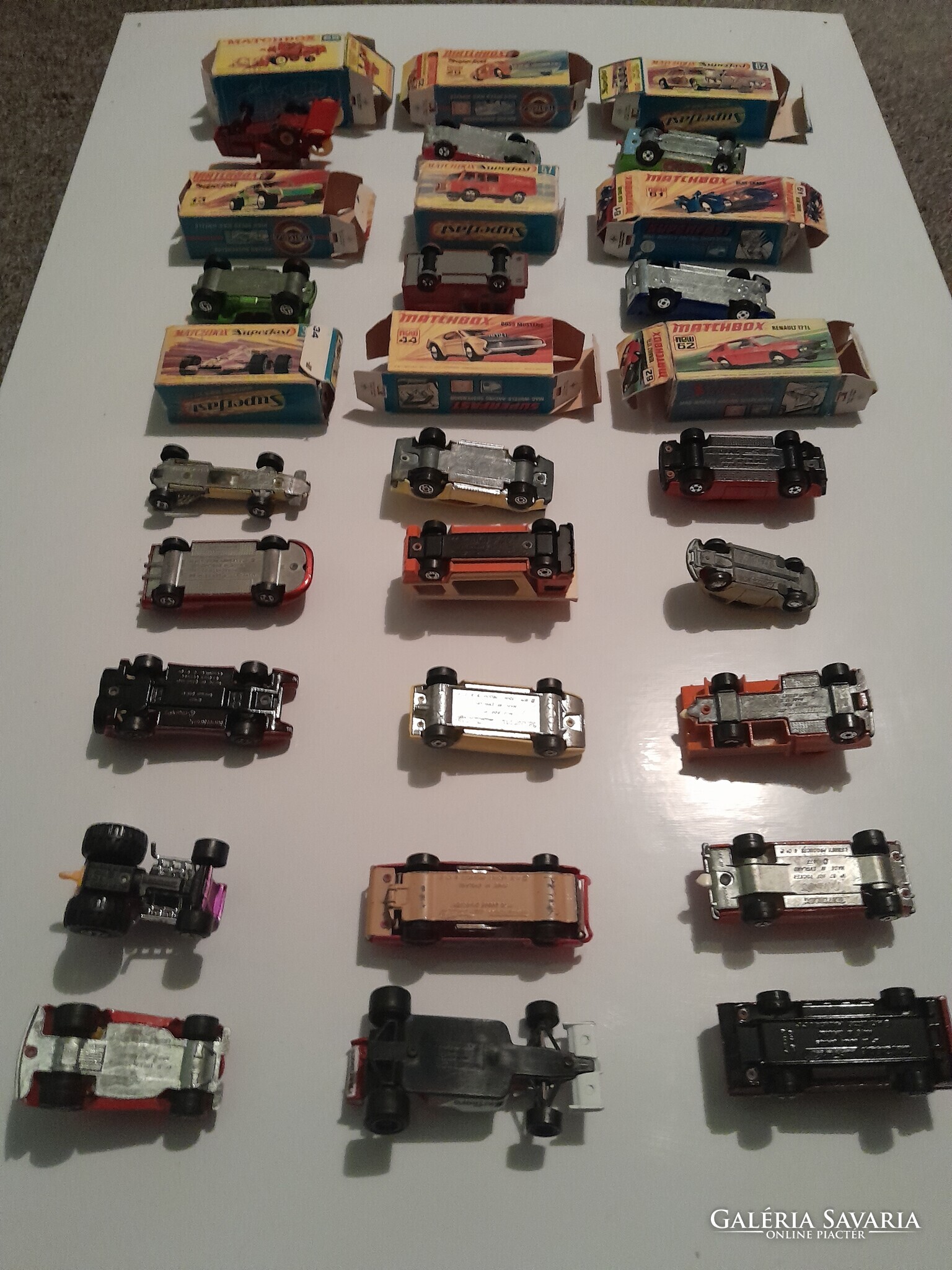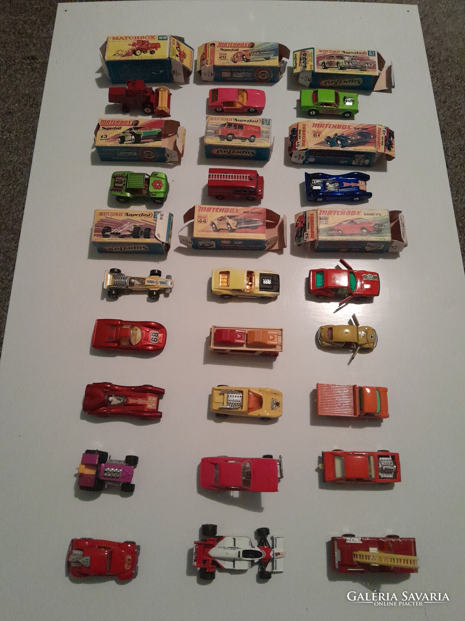 21 darab régi eredeti főleg matchbox modell autó, 9 darab eredeti csomagolással a képek szerinti gyűjtői állapotban.