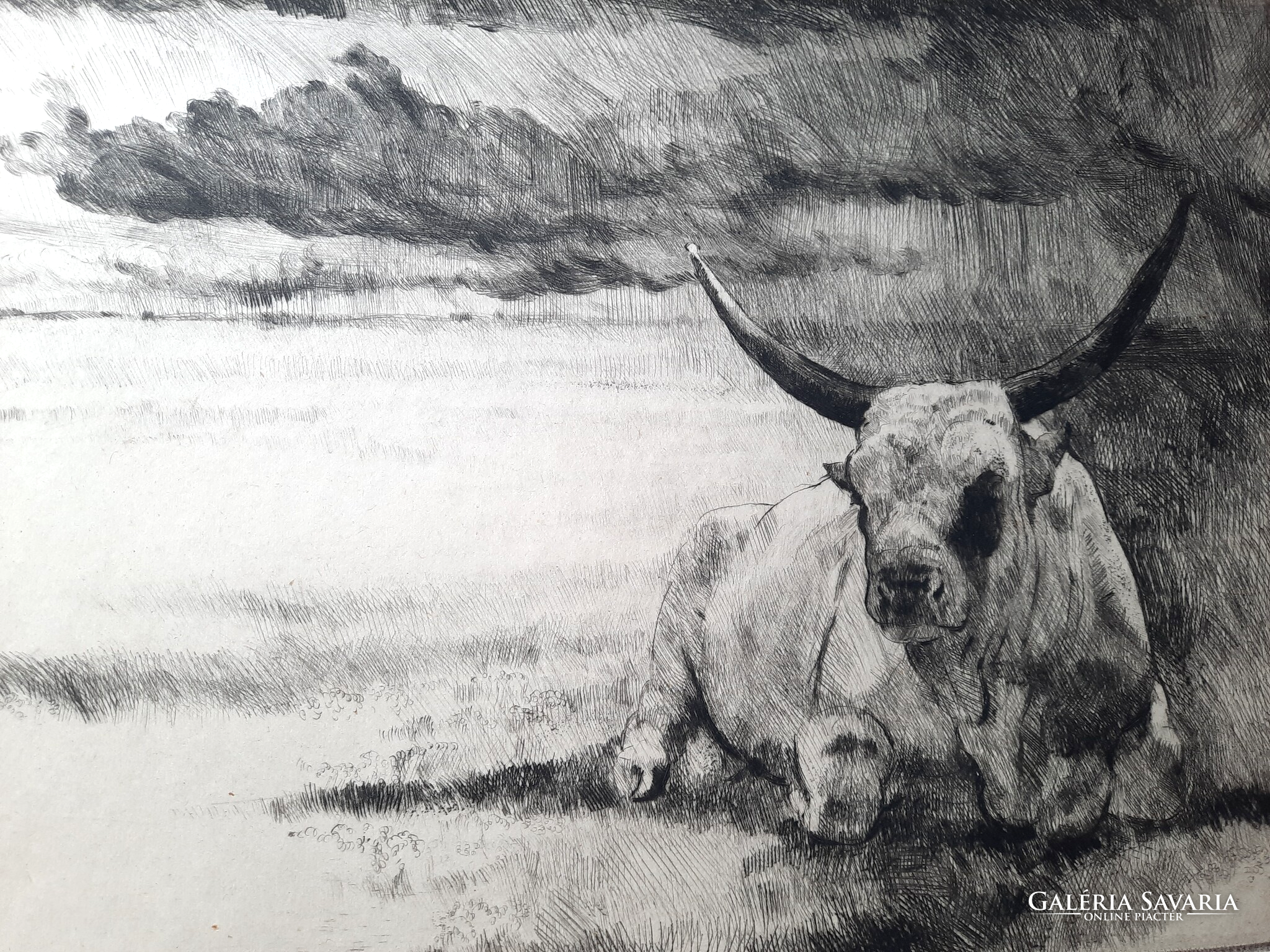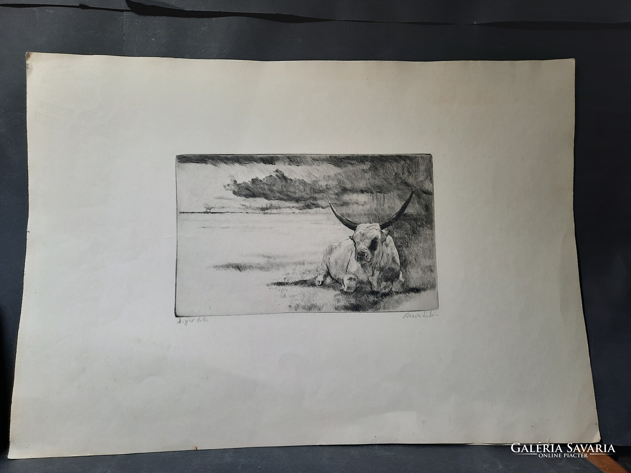 Bencze László: Magyar bika - eredeti jelzett rézkarc