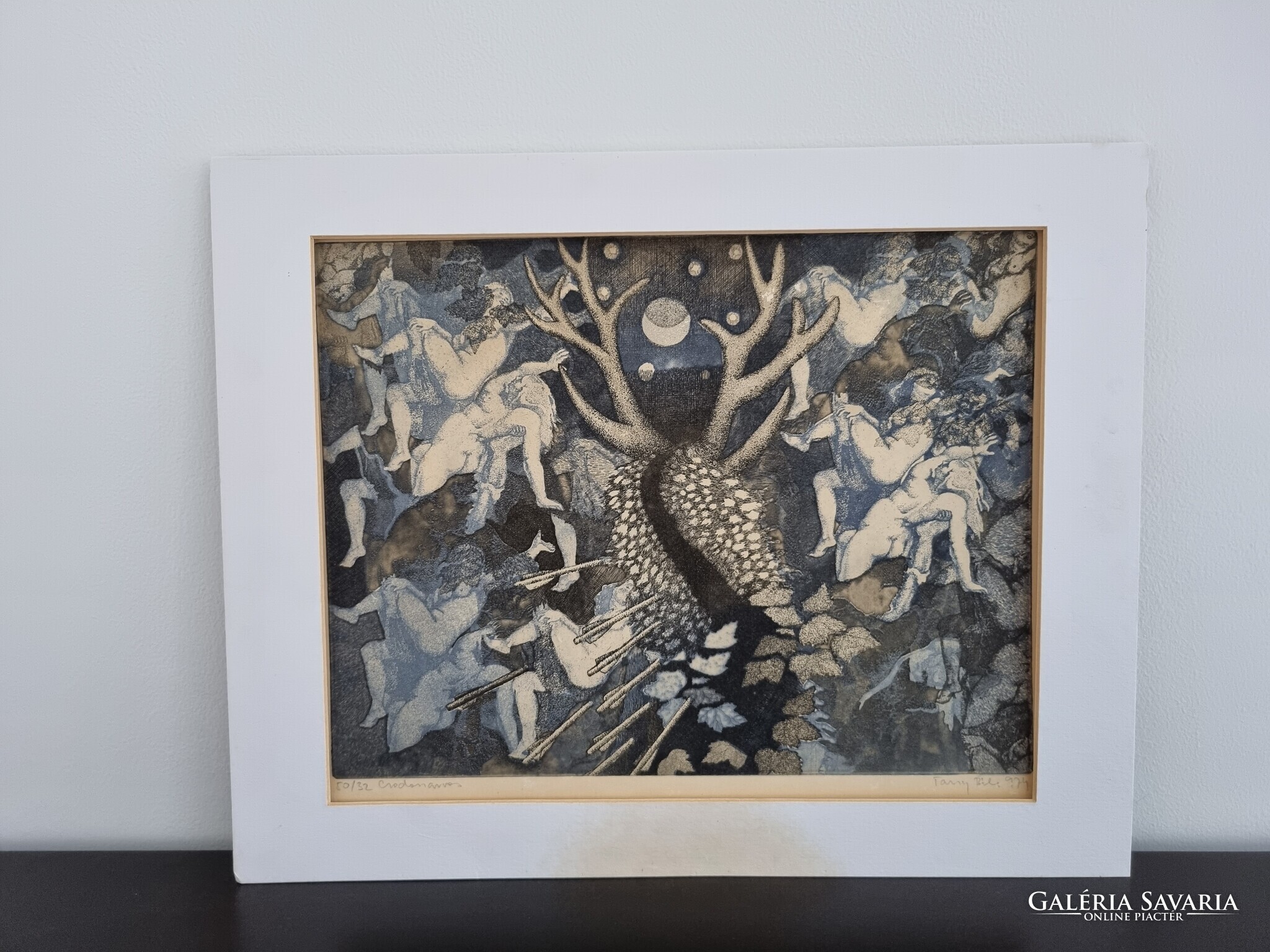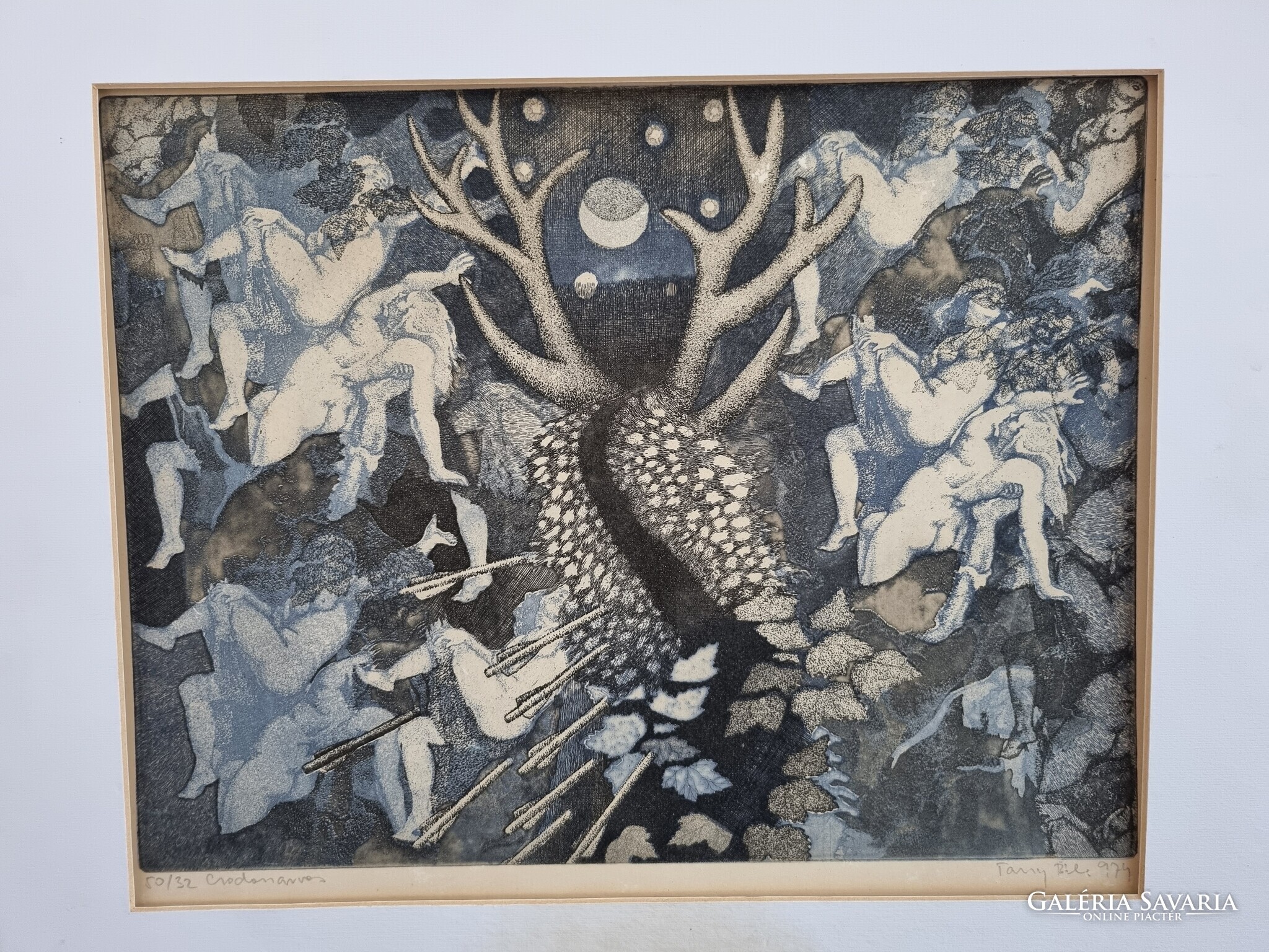 Tassy Béla Csodaszarvas című rézkarca 50/32 - 1974 , szignált alkotás