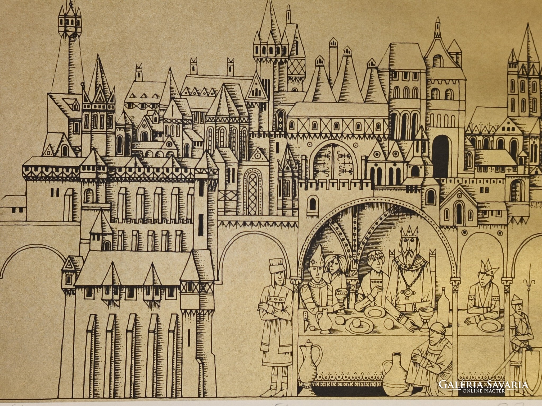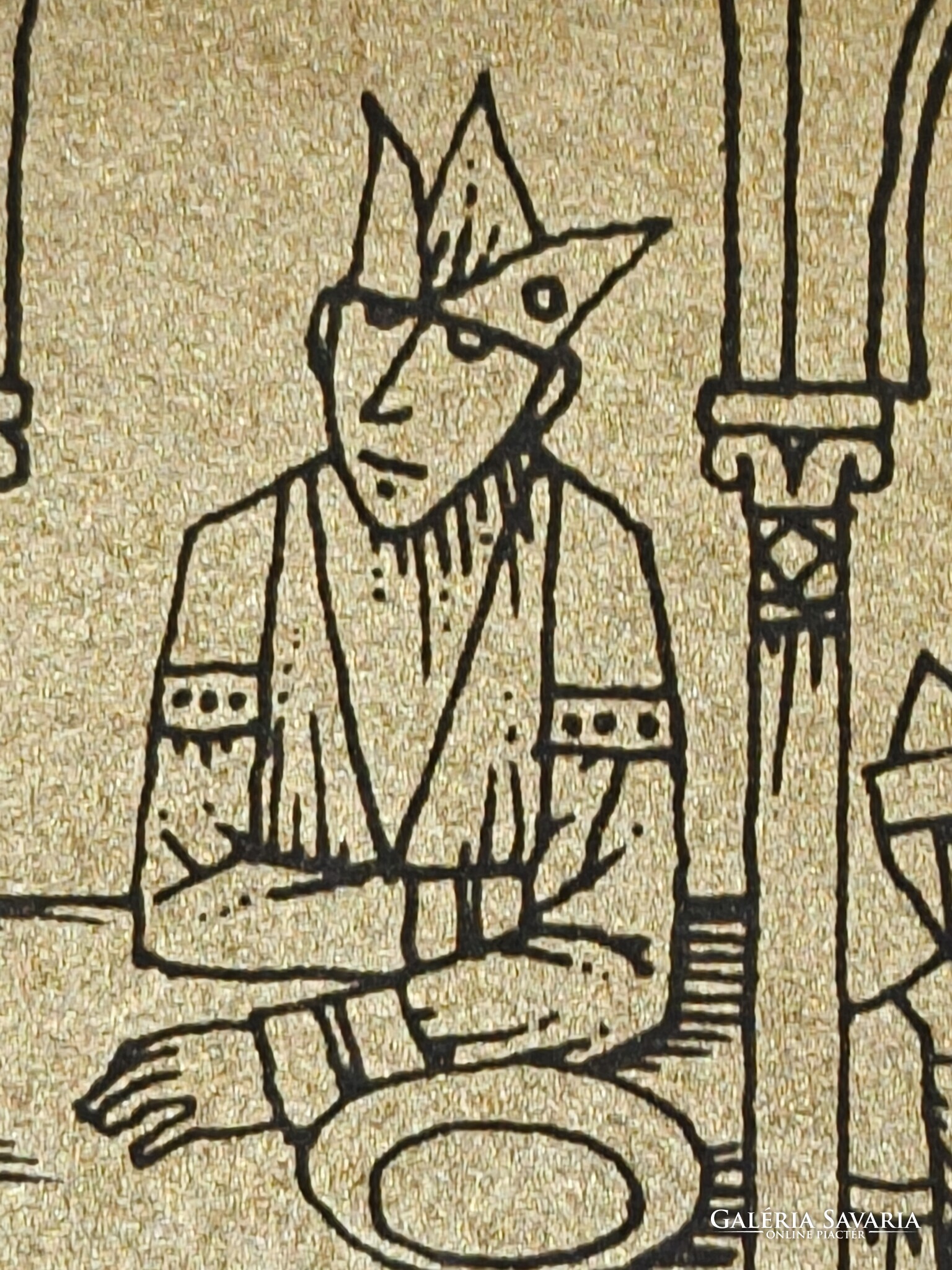 állapot képeken látható, rajz hibátlan, hordozó papír jobb oldalon beázás nyomai / paszpartu el fogja fedni/