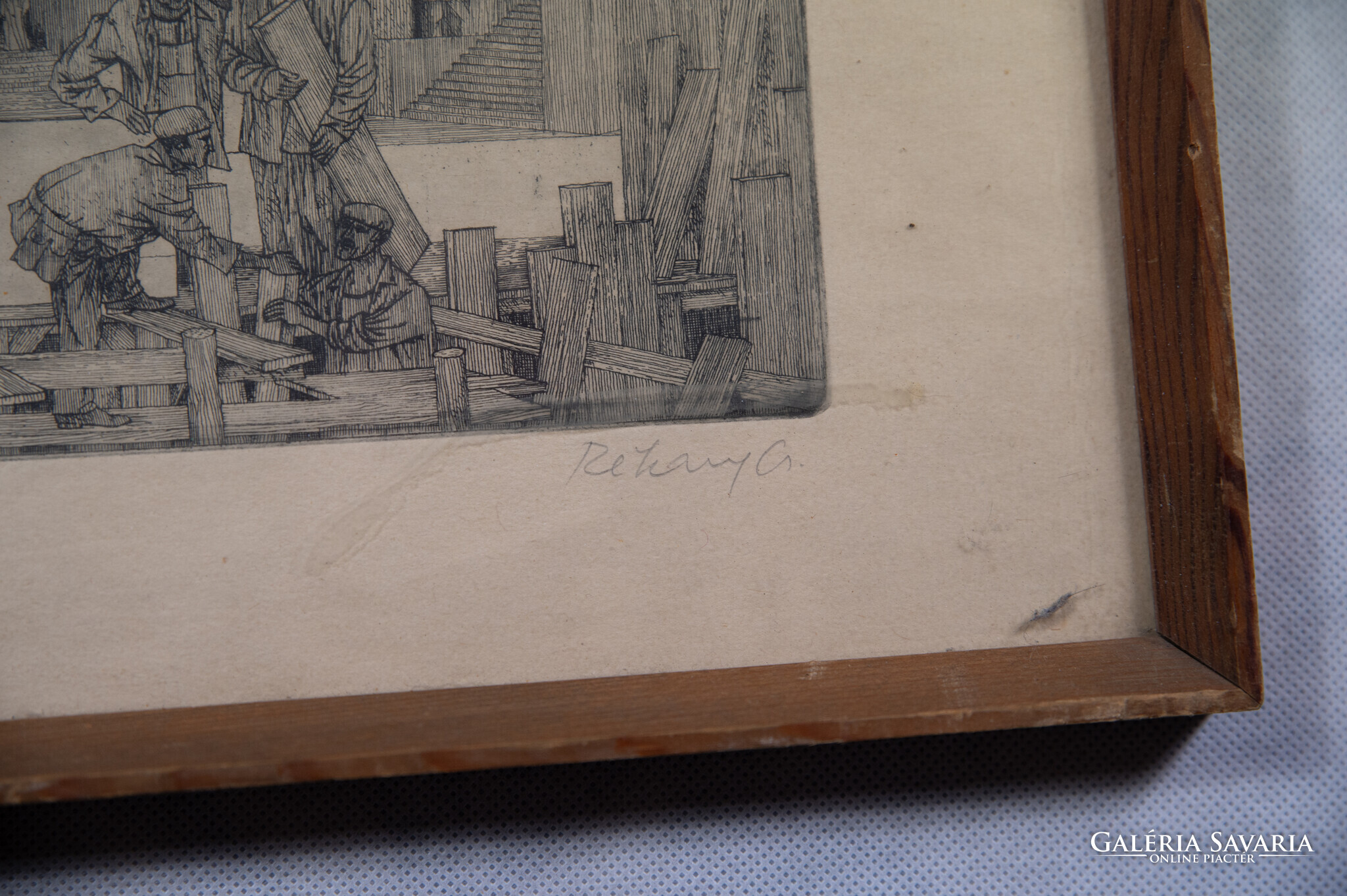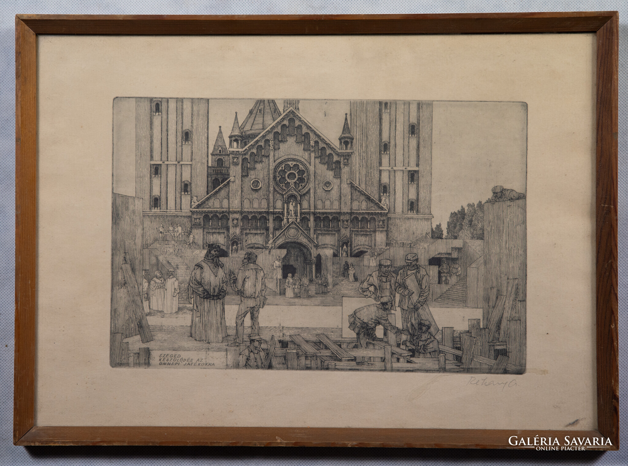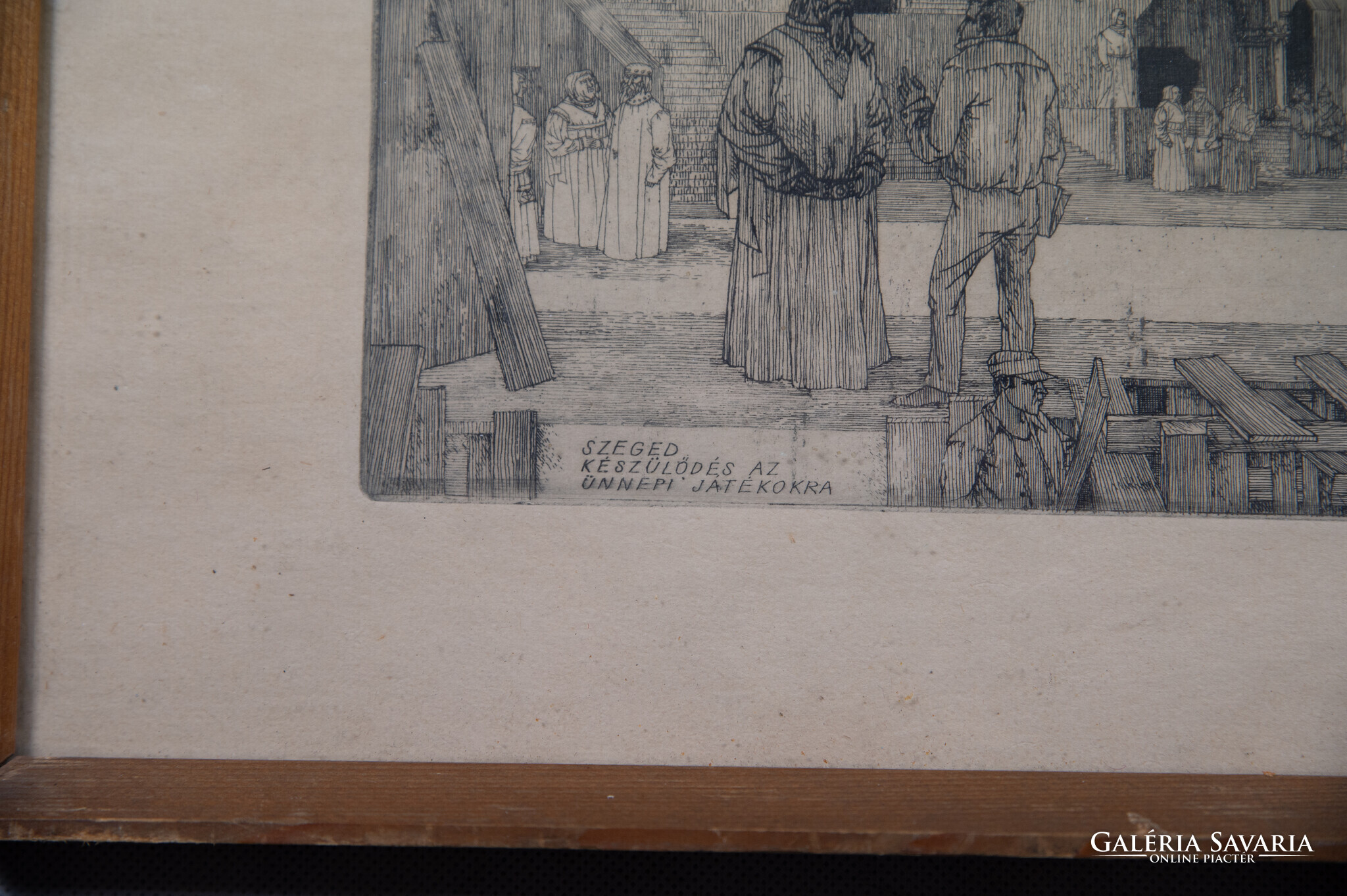 Rékassy Csaba: Szegedi készülődés az ünnepi játékokra rézkarc
