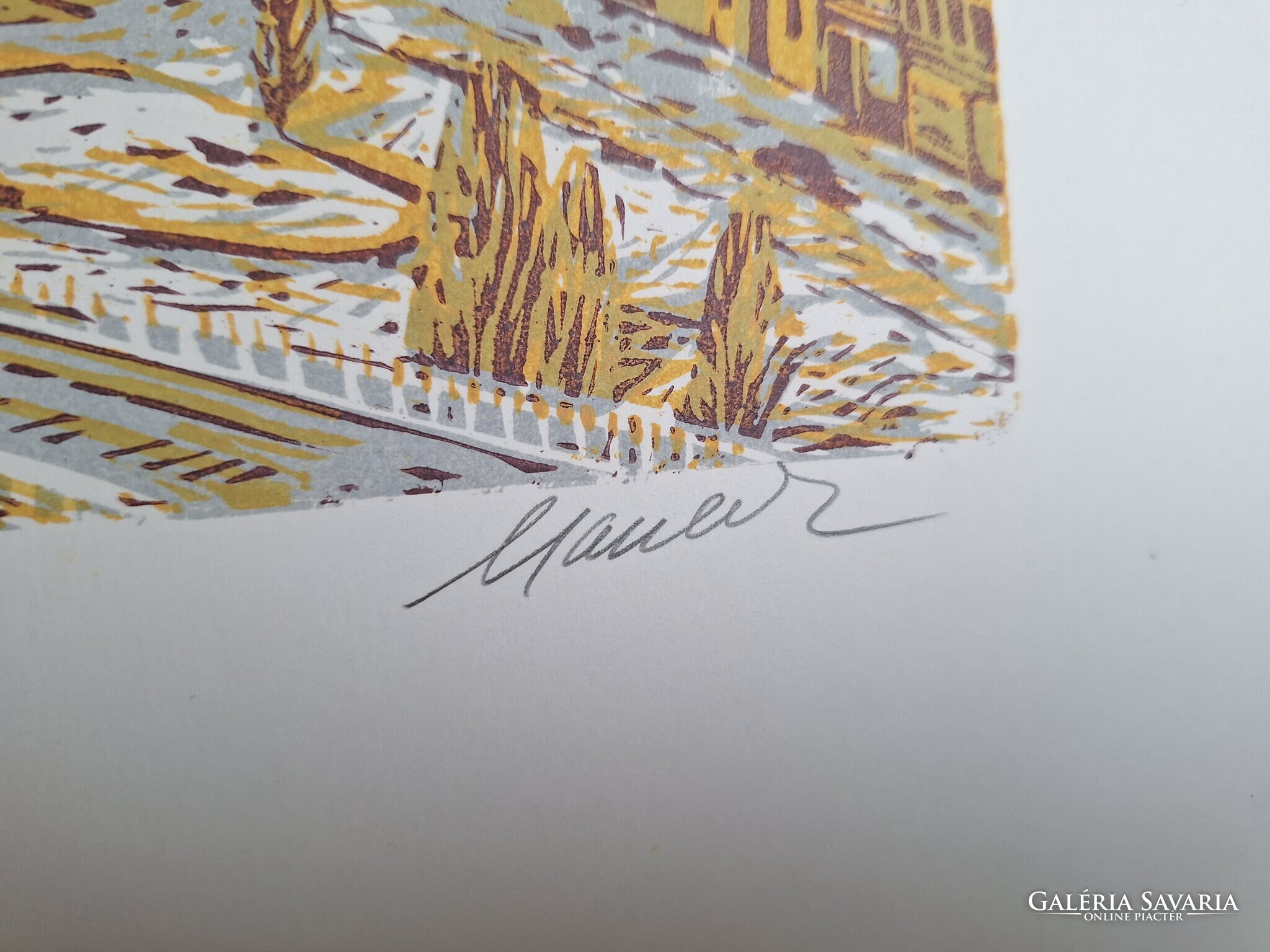Lenyűgözően szép budapesti panoráma, Csavlek András (1942-) eredeti grafikája. A művész által sajátkezűleg aláírt jobbra lent. A mű remek állapotú, csupán a lap szélén van egy apró szakadás (nem érinti magát a művet). Fantasztikus színek, páratlan szépségű élőben!