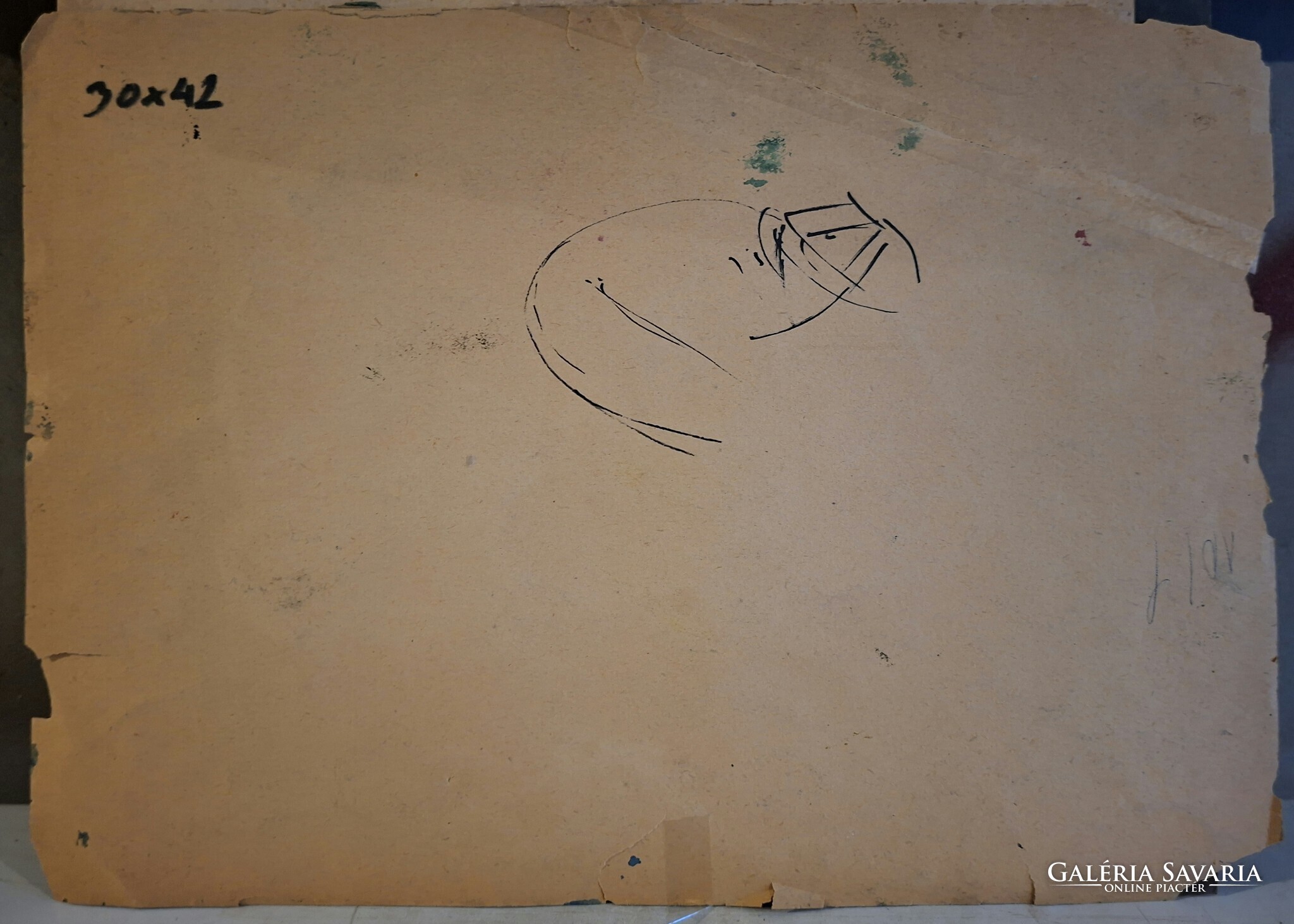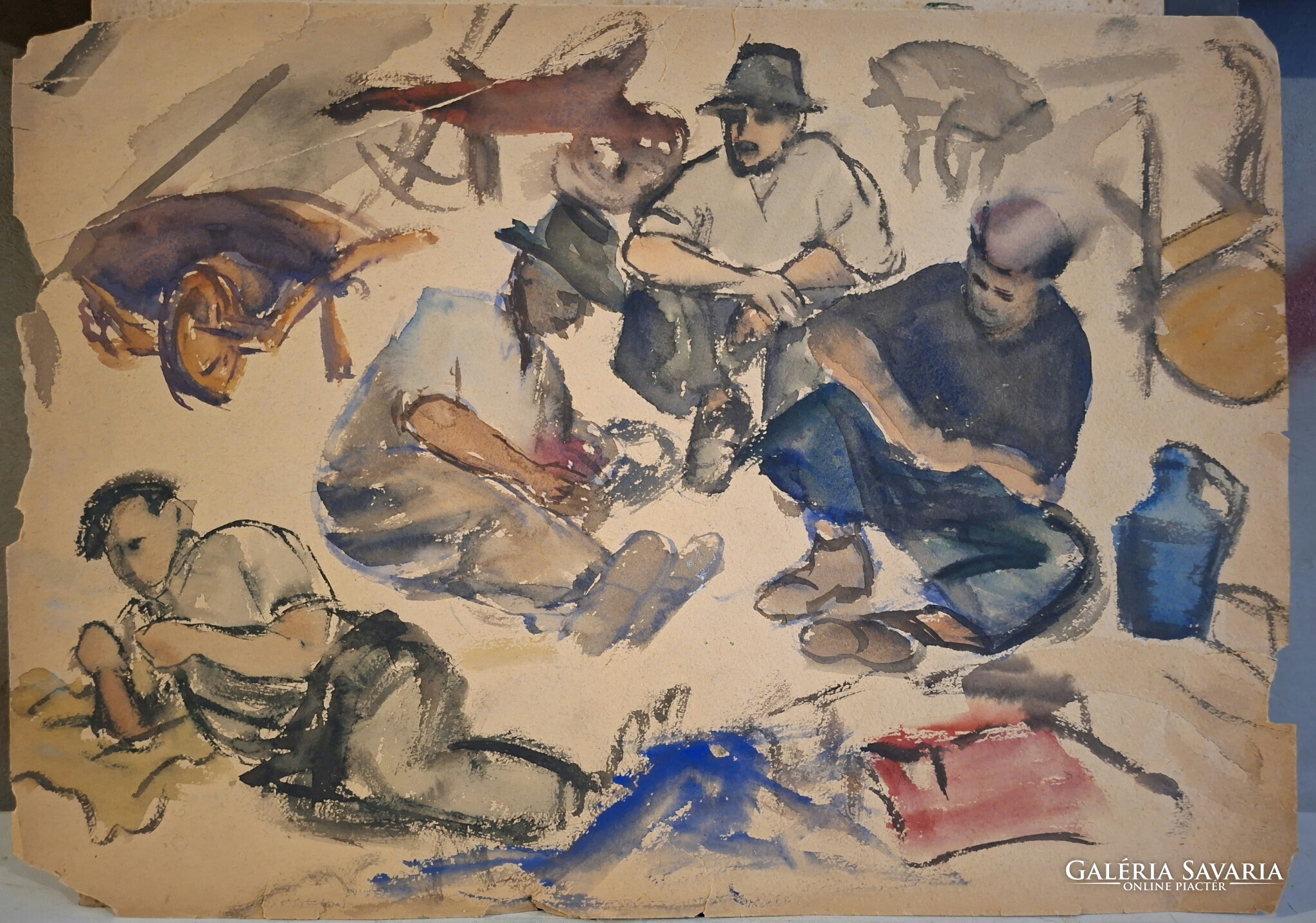 1 ft-ról! Ismeretlen magyar festőművész vázlata. Különféle alak ábrázolások. 30x42cm. Keret nincs.