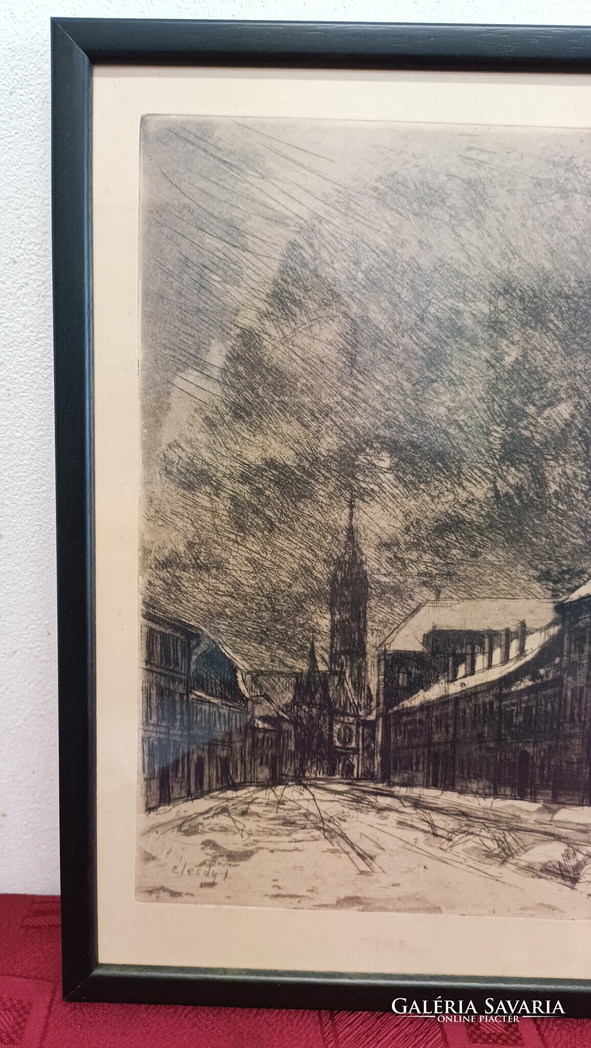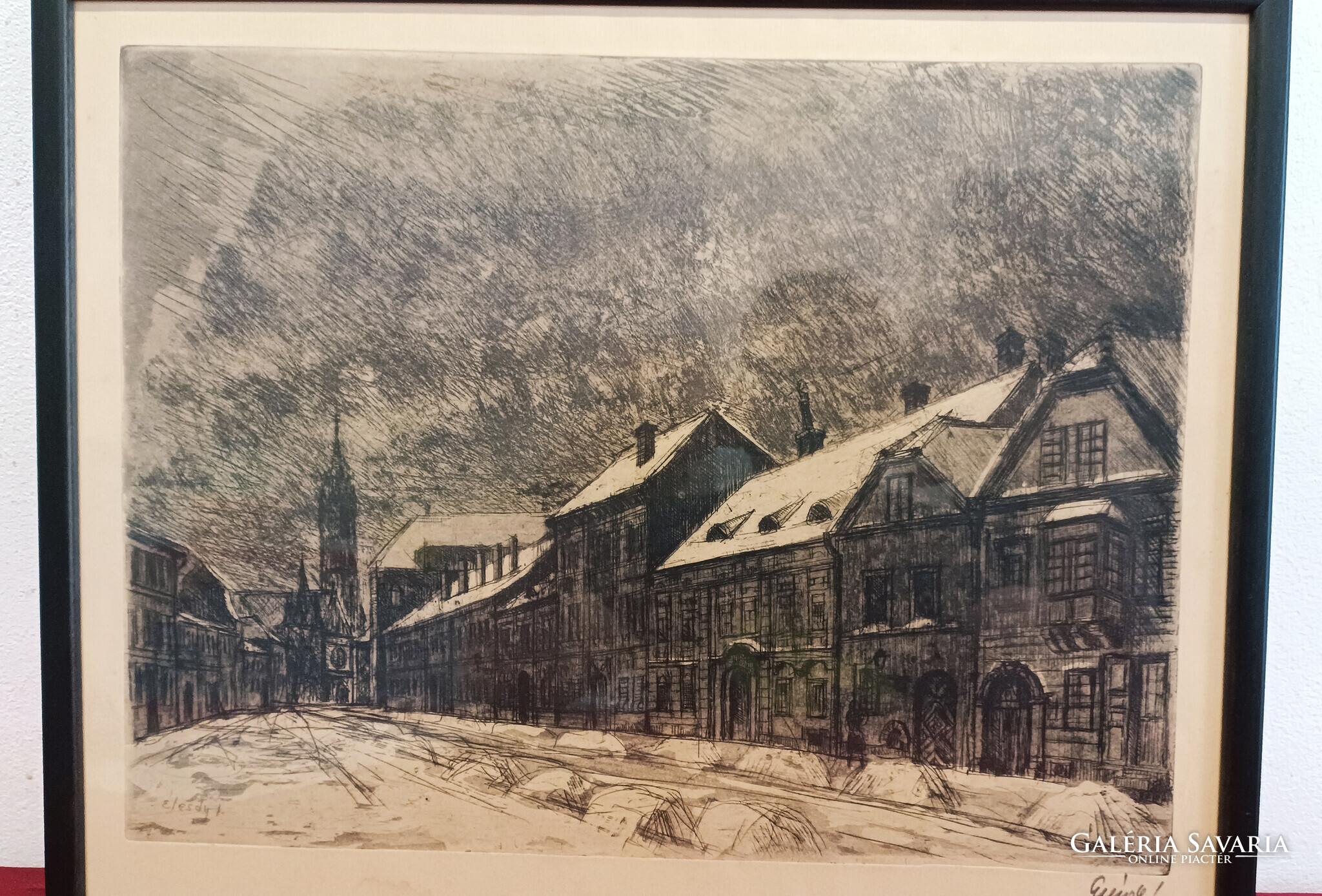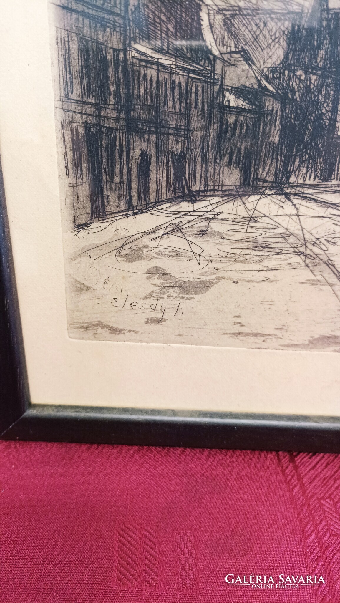 Élesdy István Utcakép Rézkarc