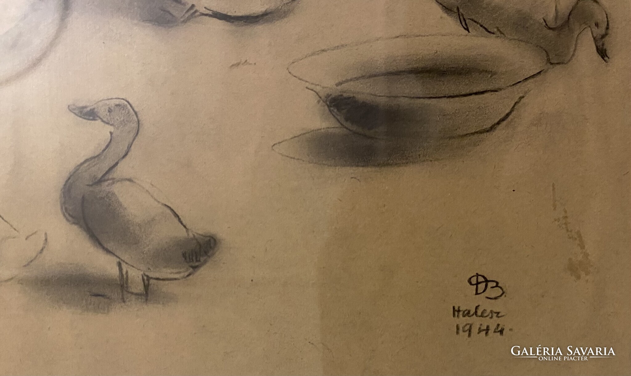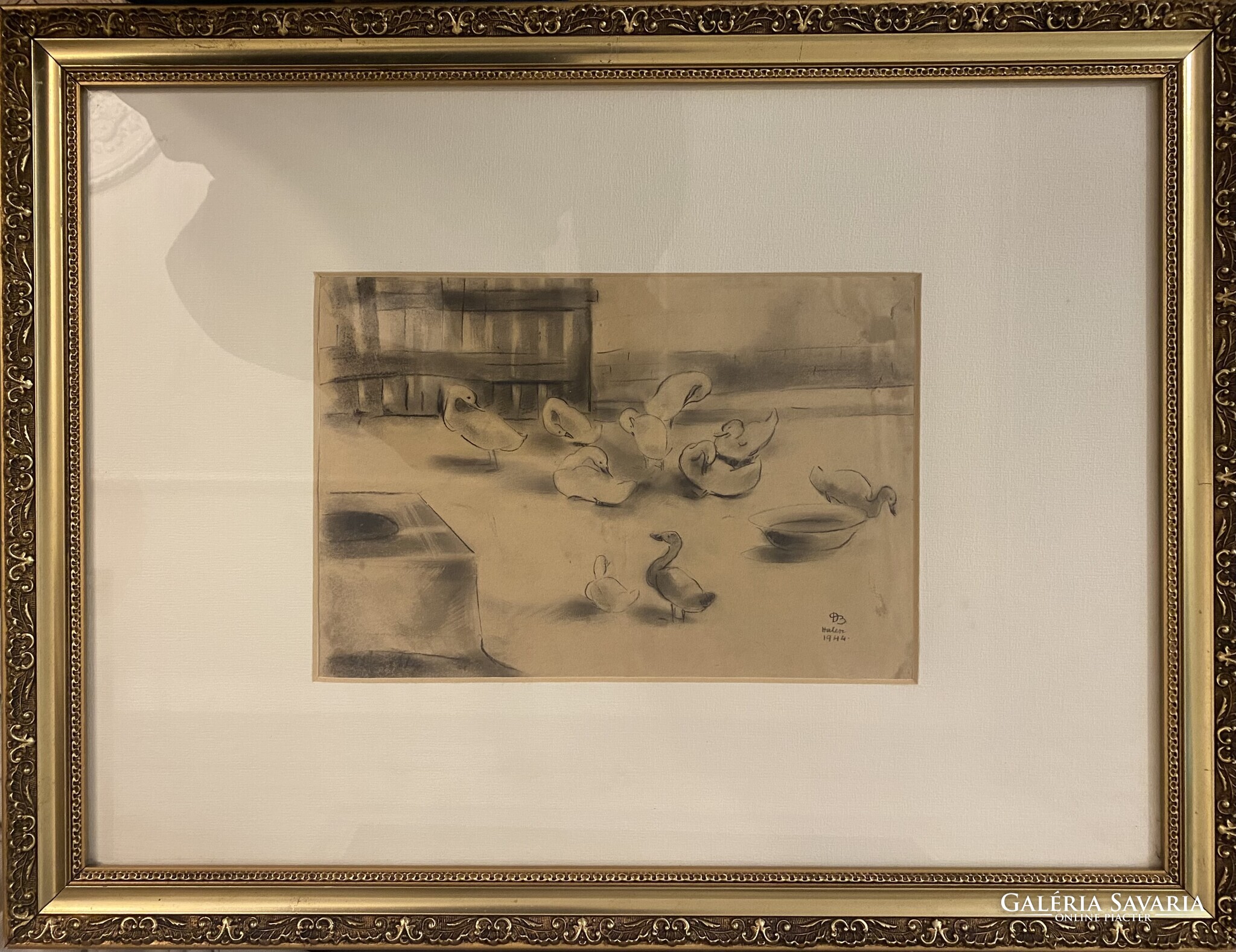 Ducsay Béla: Mari néni kacsái - szén, papír (1944).