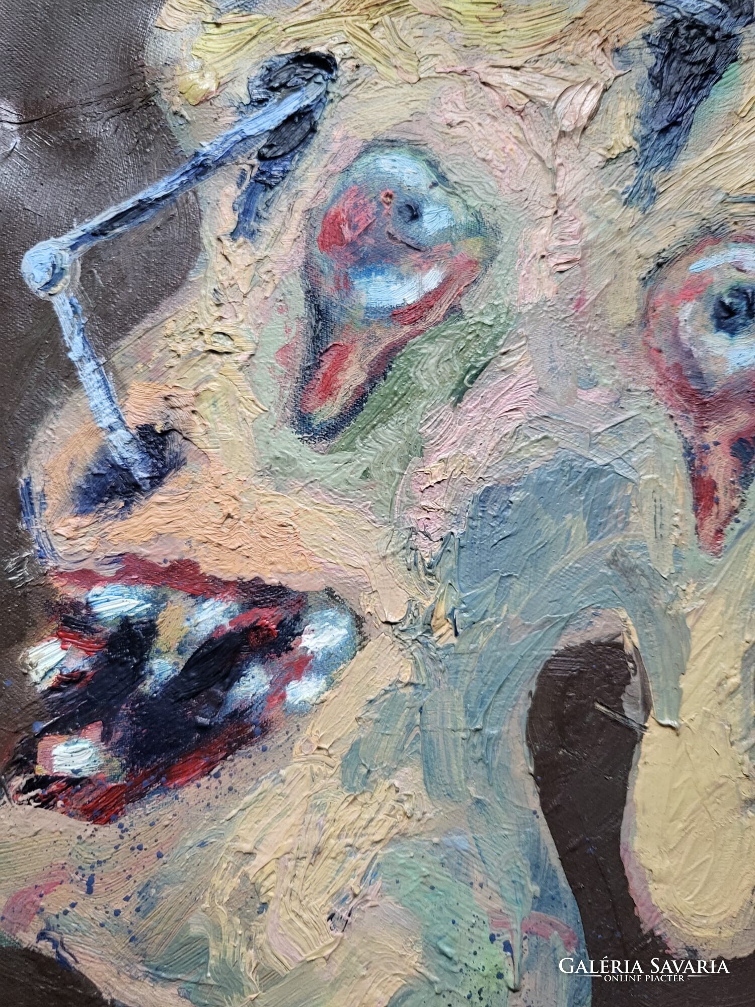Expresszív olajfestmény – groteszk férfiportré, vászon (45×35 cm)