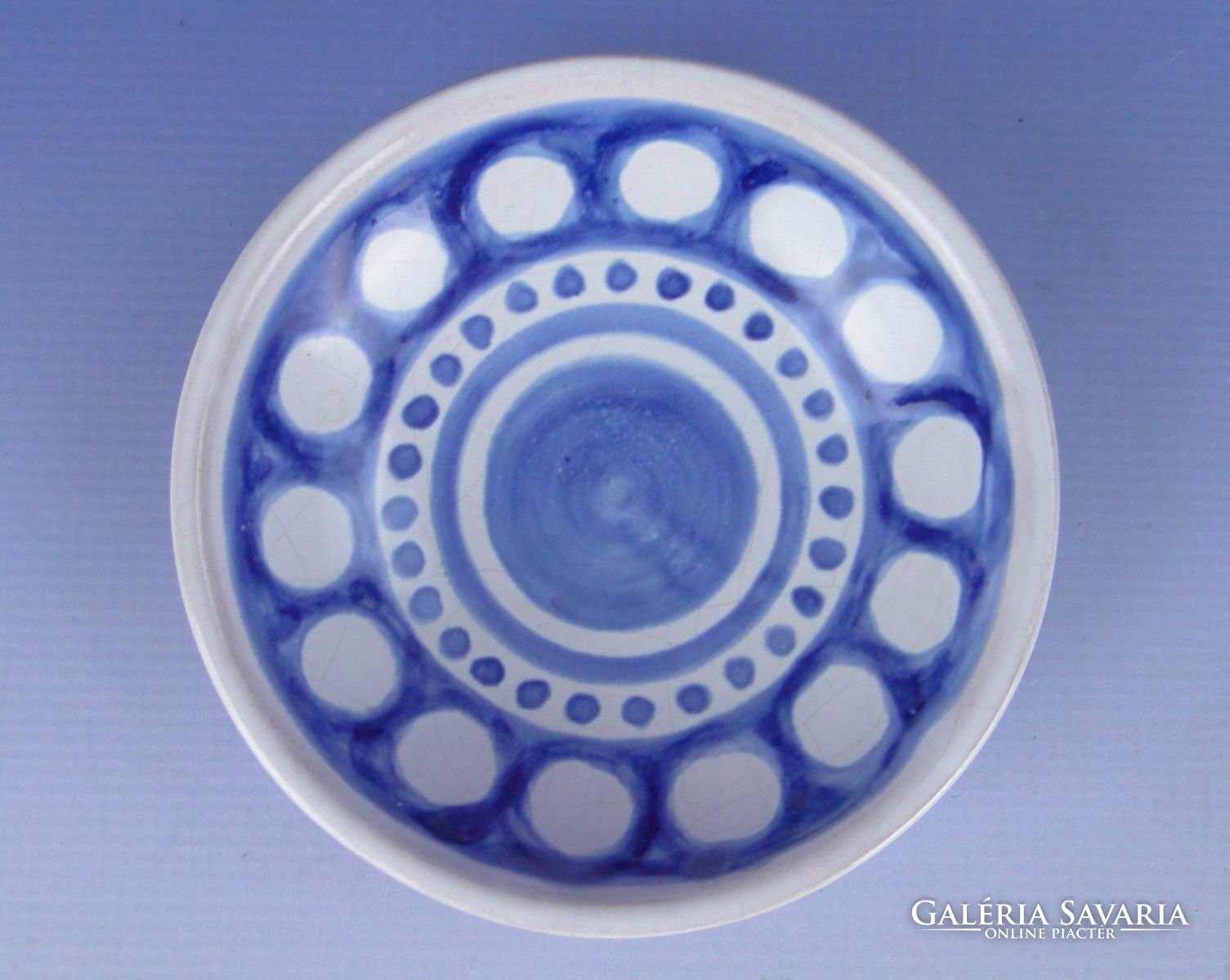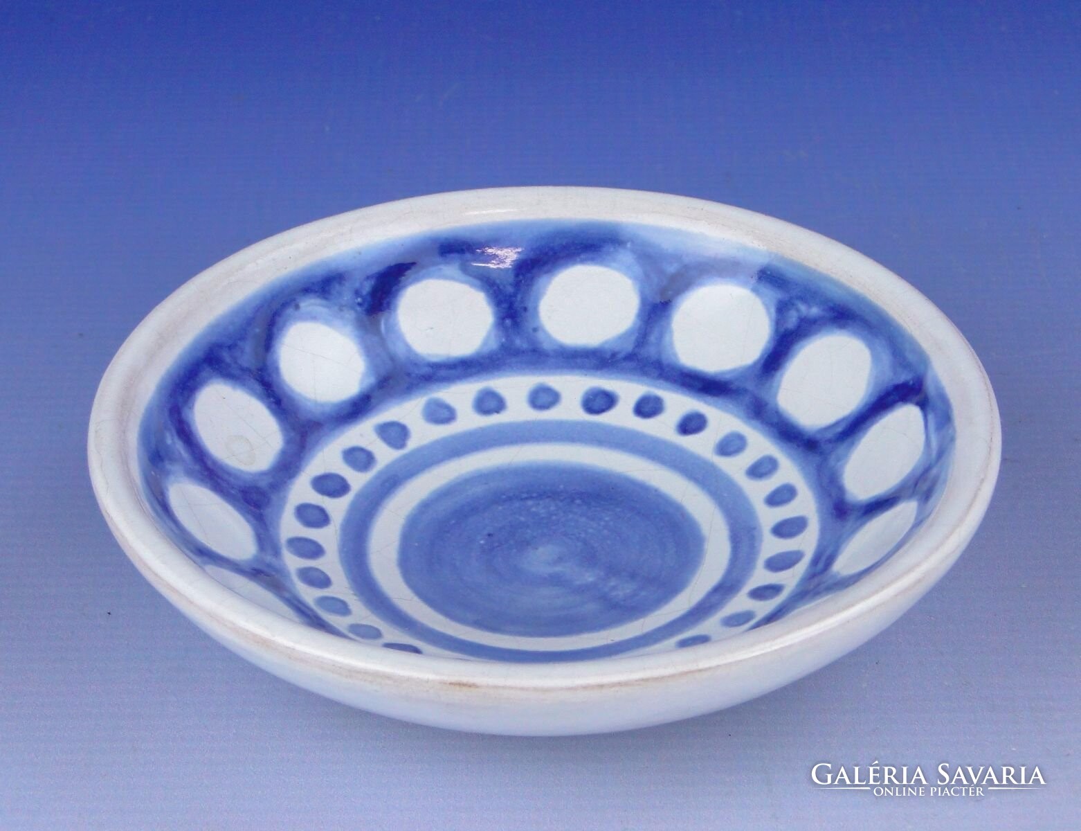 Hibátlan állapotú, jelzett kisméretű retro kék-fehér színű, mázas iparművészeti kerámia tál. Alján jelzés: KRAJTSOVITS MARGIT