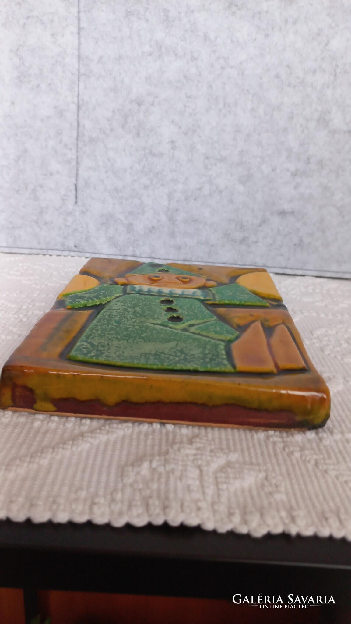 Zsolnay pirogránit bohócos falikép FI 111 jelzéssel, hibátlan