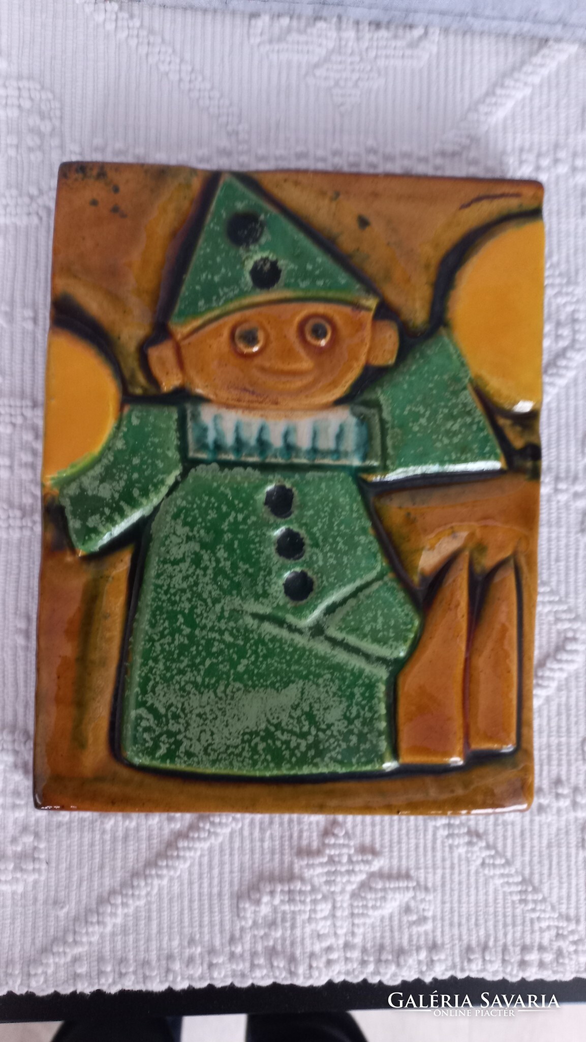 Zsolnay pirogránit bohócos falikép FI 111 jelzéssel, hibátlan, 14 x 18,5 x 2 cm, 658 g.