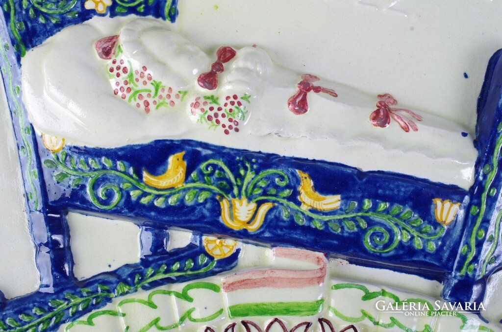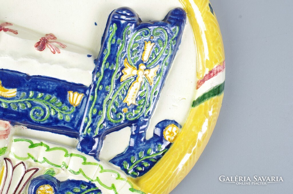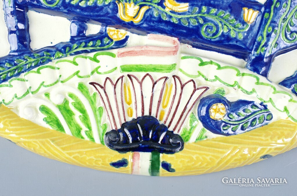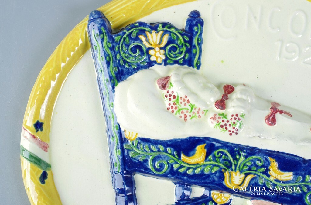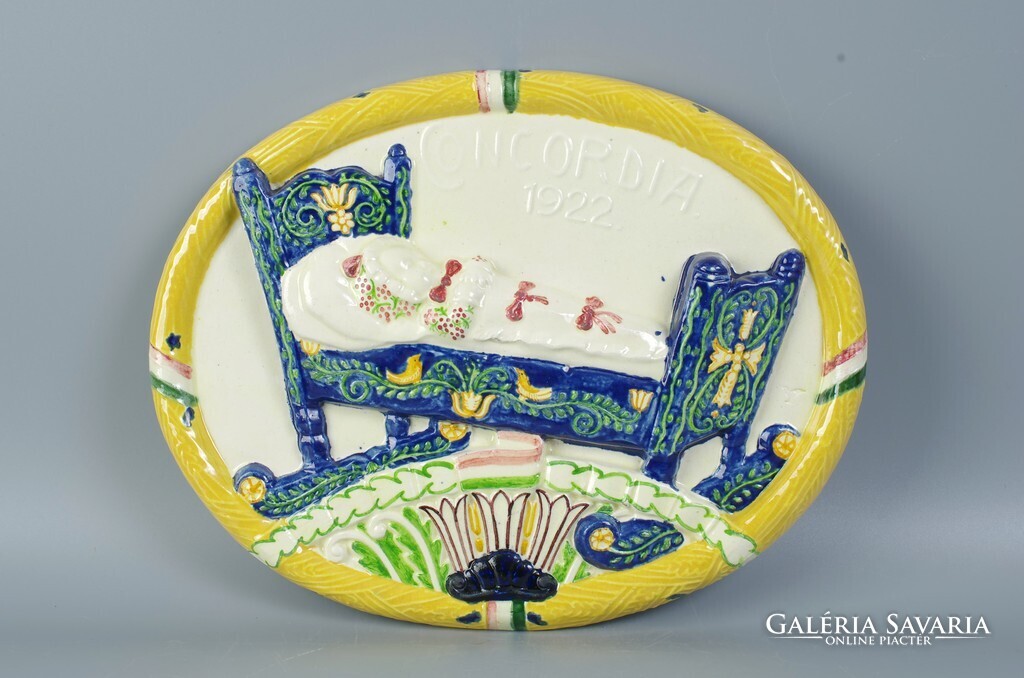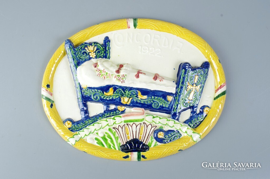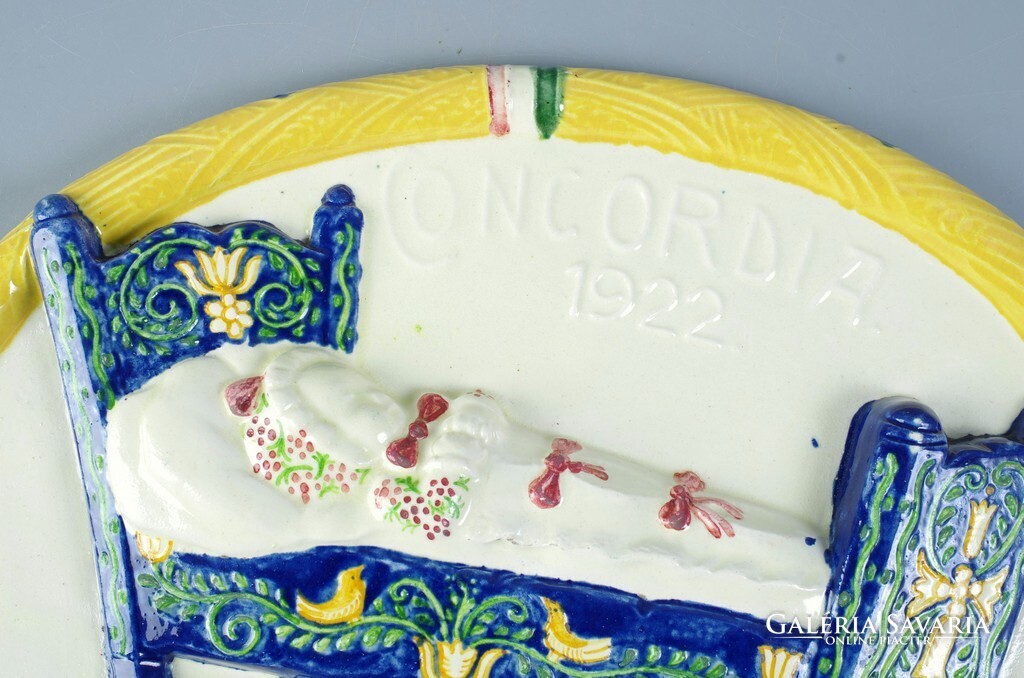 Borszéky Frigyes (1880 - 1955): Concordia bizosító ovális fali plakett, 1922 Kerámia falra akasztható falikép, szép mutatós állapot. Jellegzetes Borszéky jelzés oldalán, lásd a képen. Méret: 32 x 28,4 cm.