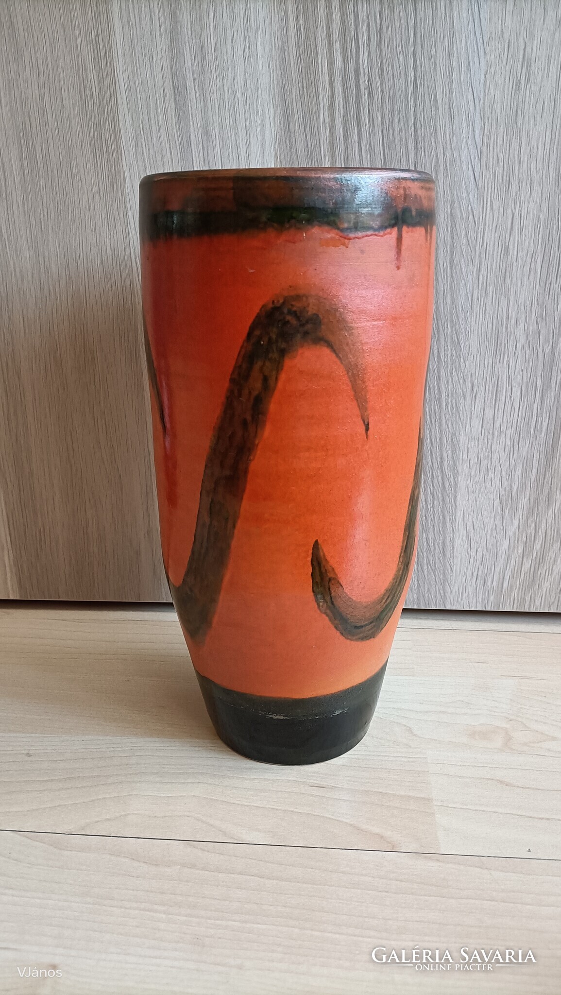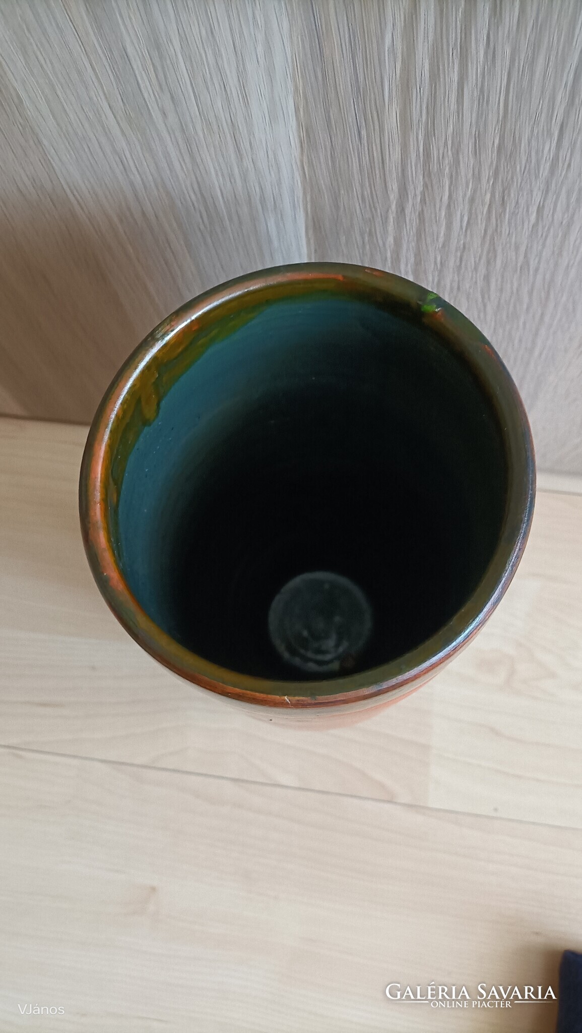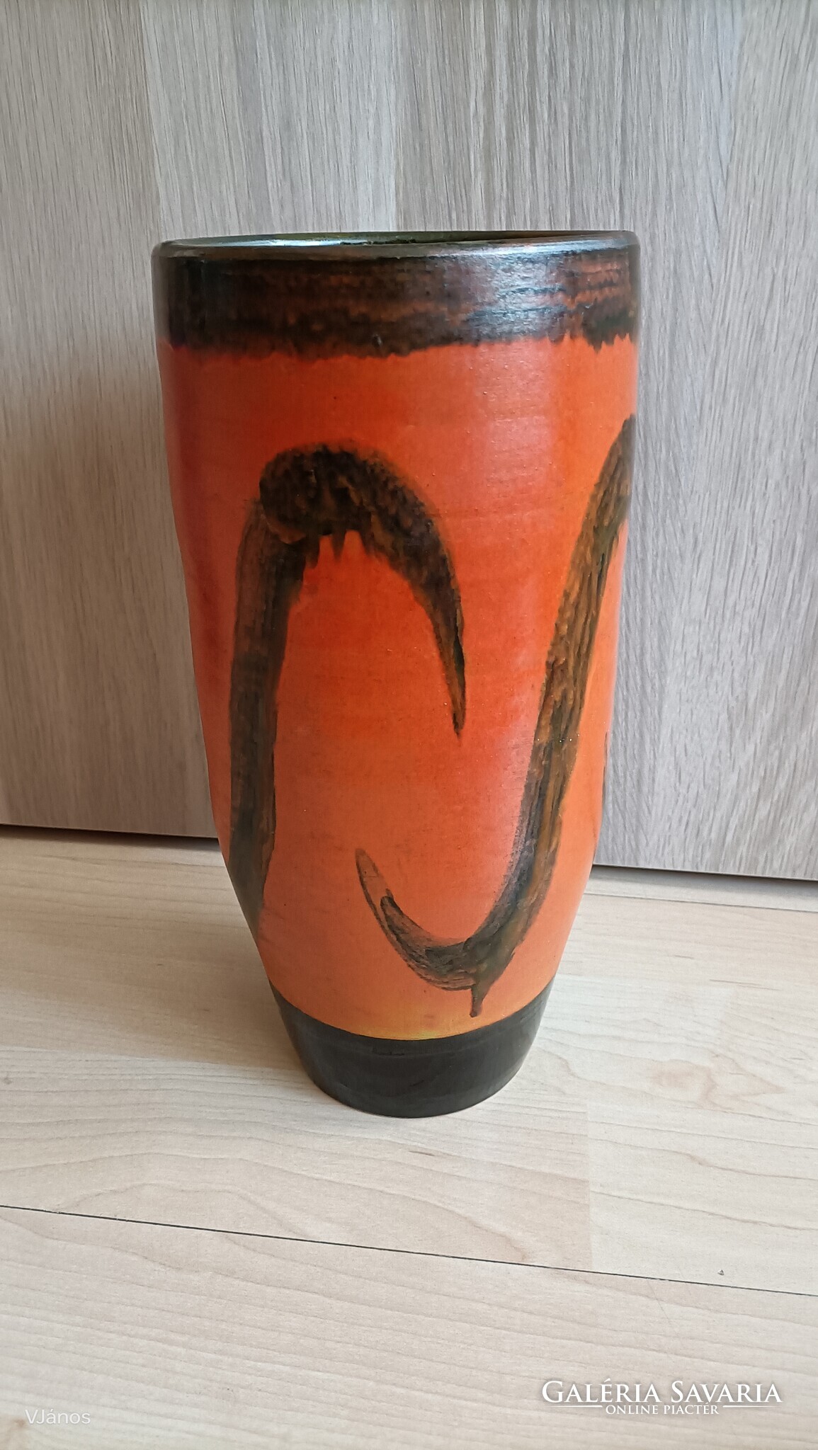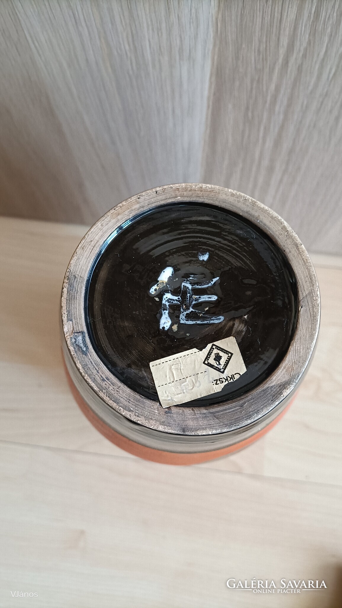 Eladó a képen látható retro kerámia váza, szép dekorációval.