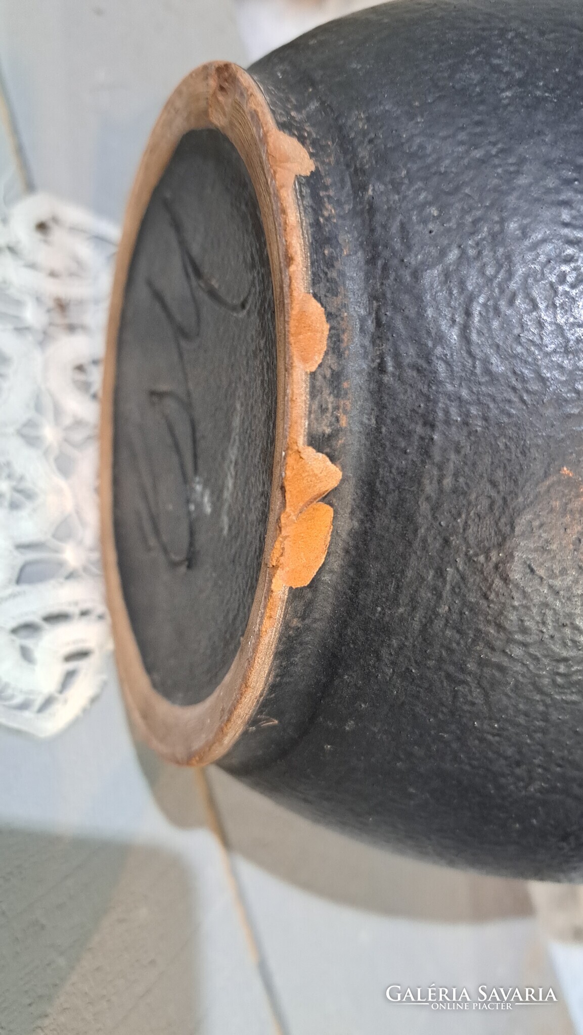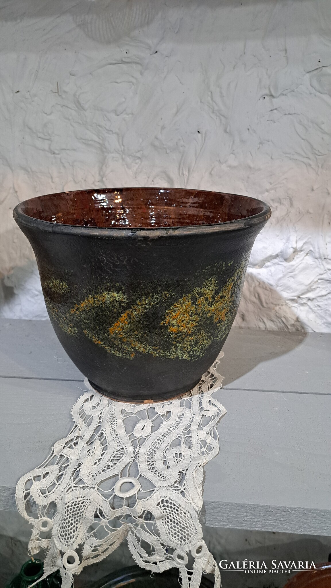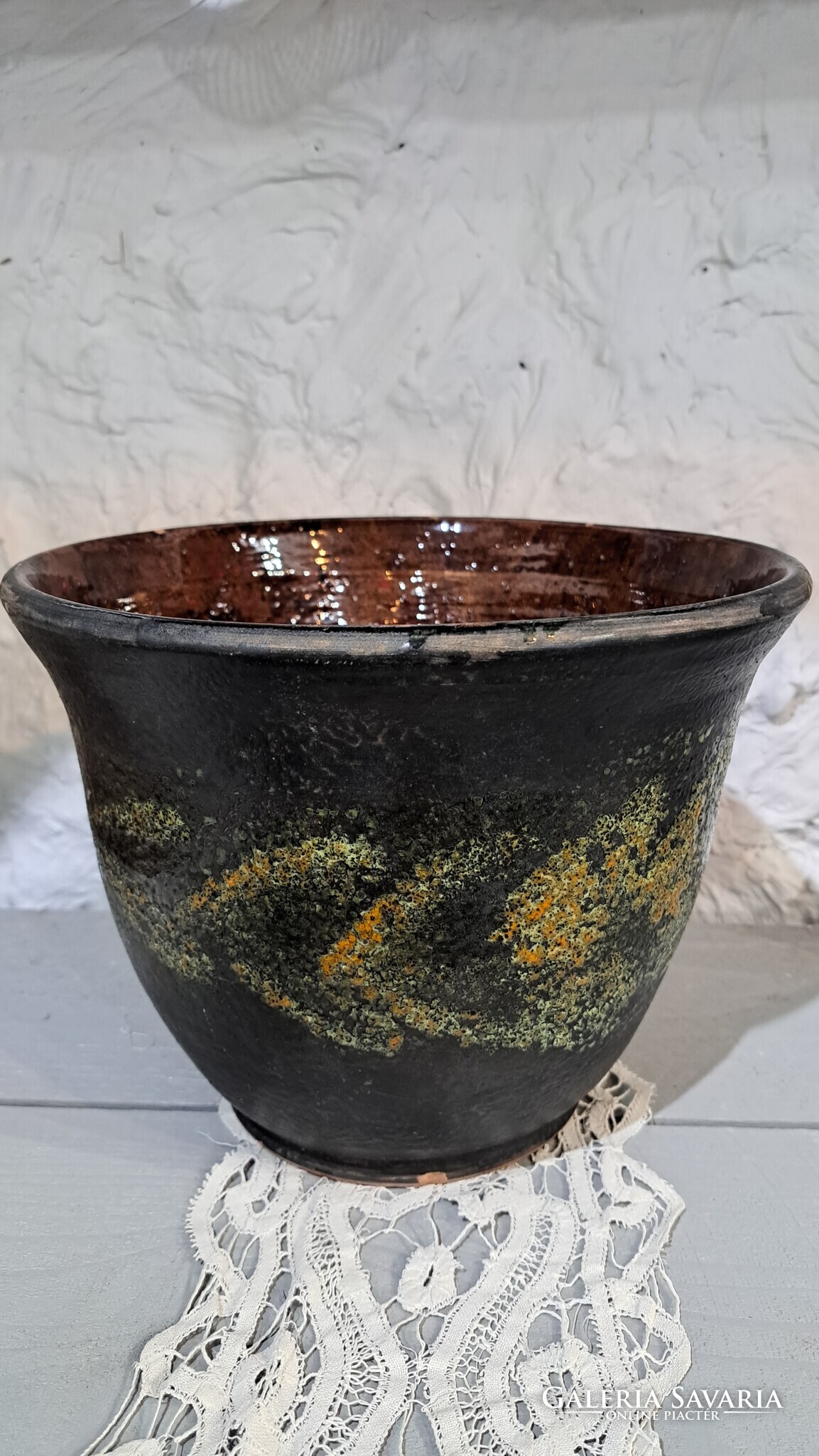 Nagyméretű kerámia kaspó mintával, alján pár kicsi lepattanás