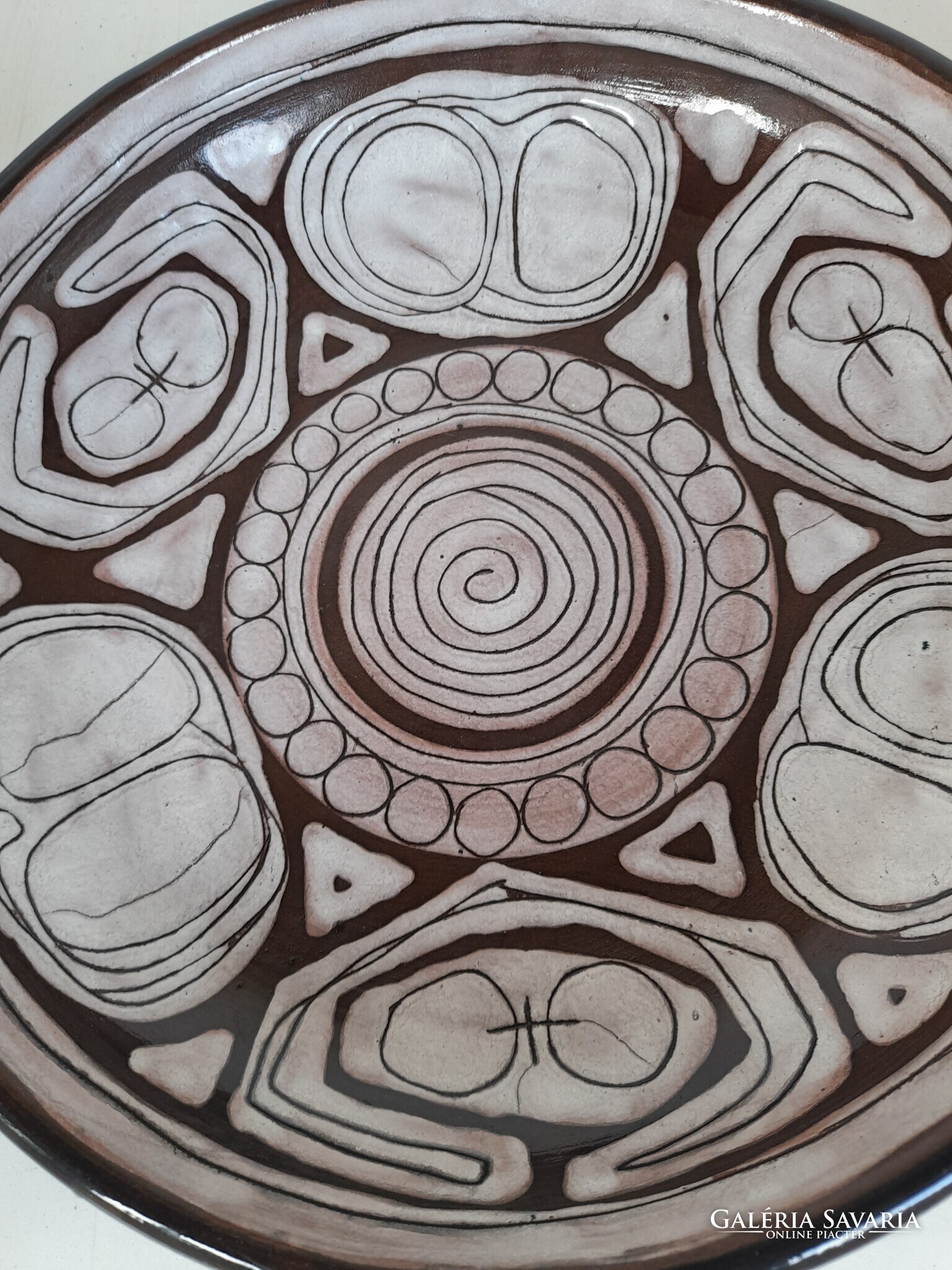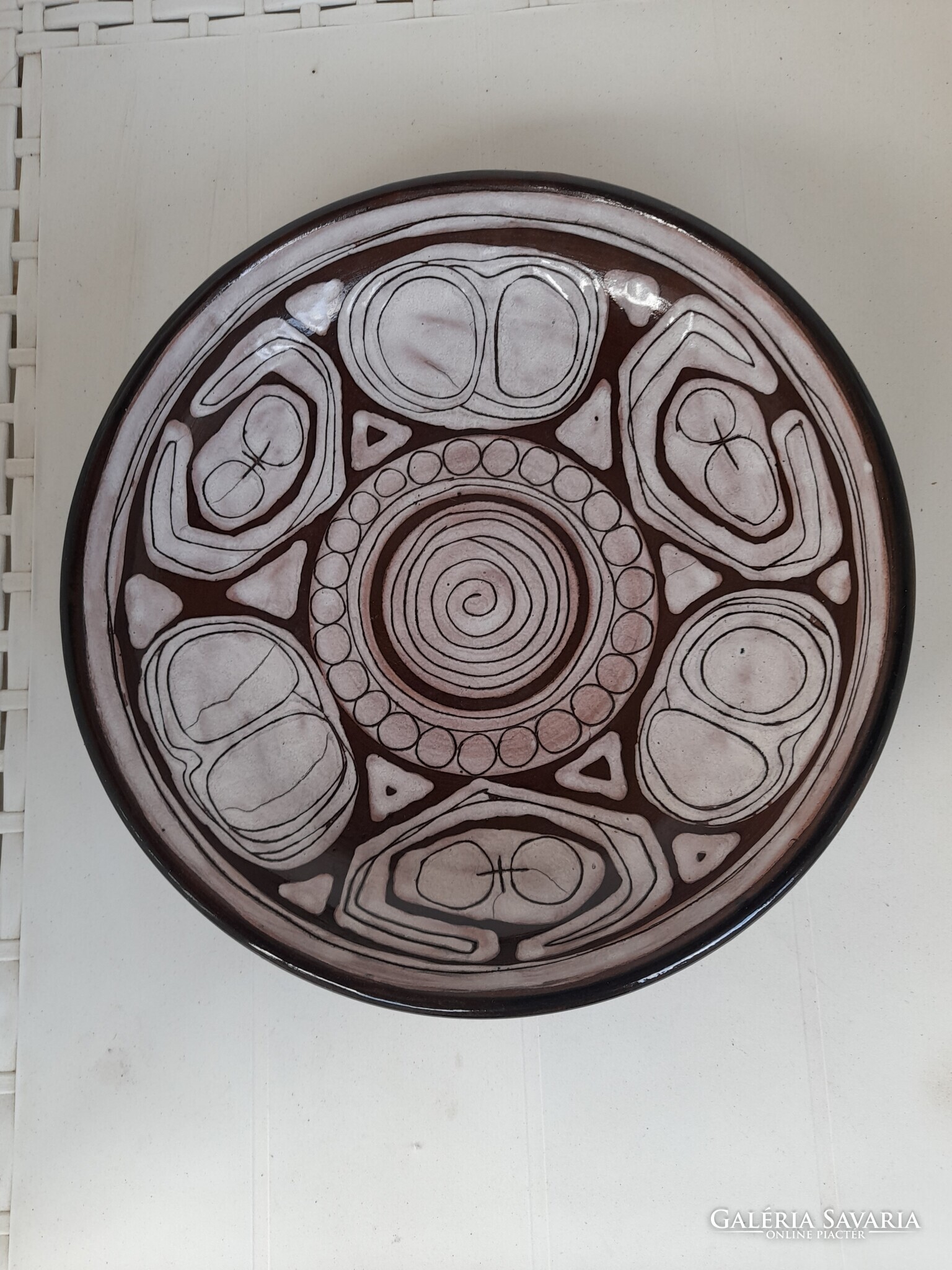 Gyönyörű kerámia falitál, Al szerint Szilágyi Mária munkája. Jelzetlen, sérülést nem találtam rajta. Átmérője 26,5 cm, magassága 5,5 cm.
