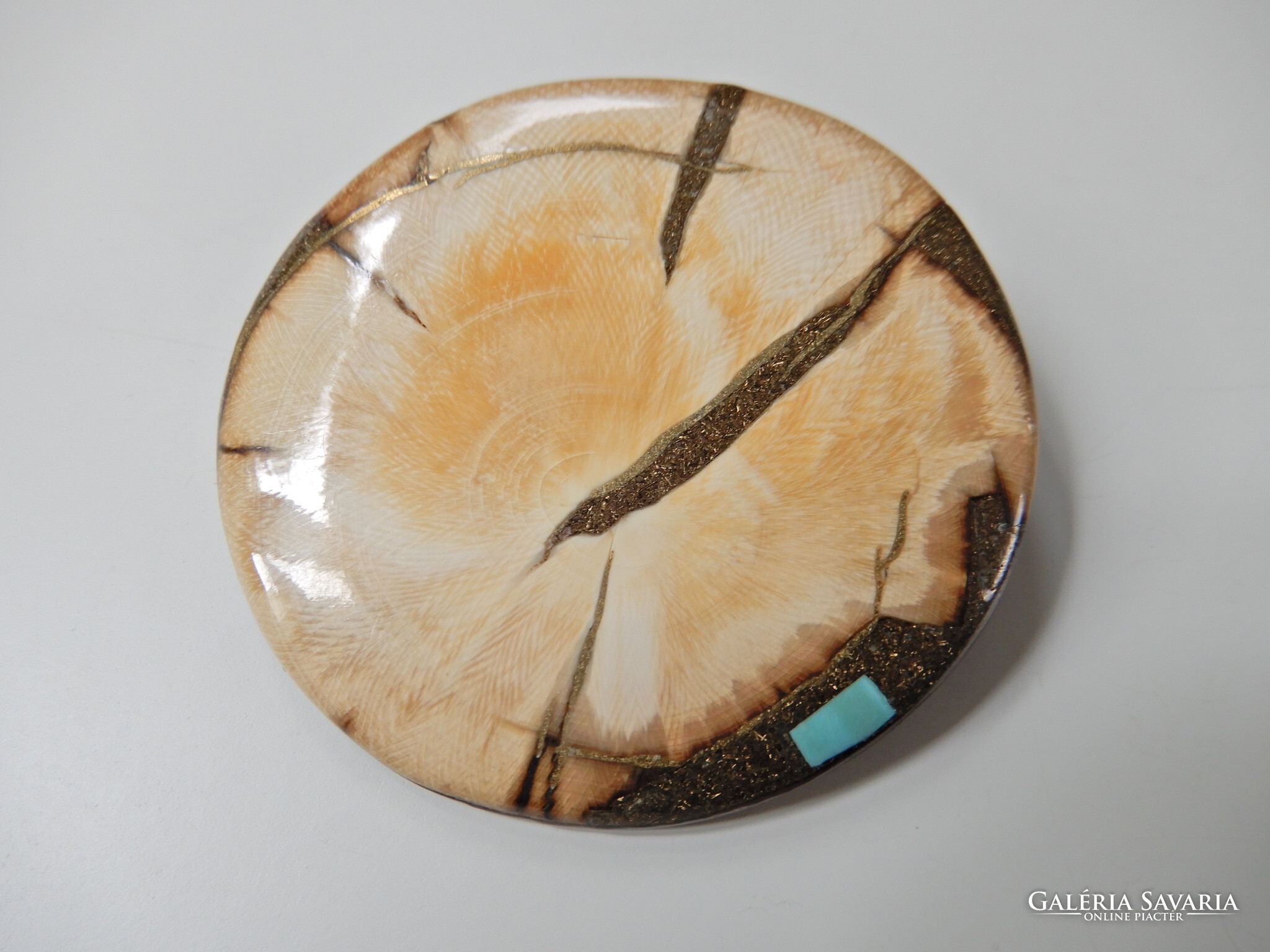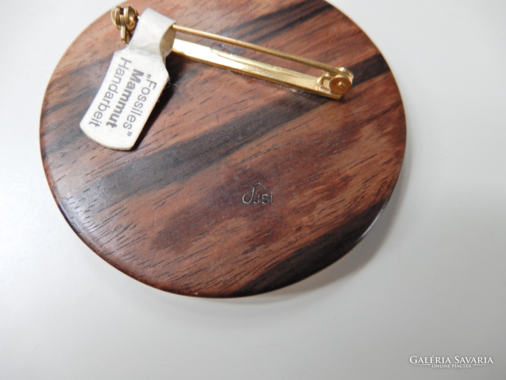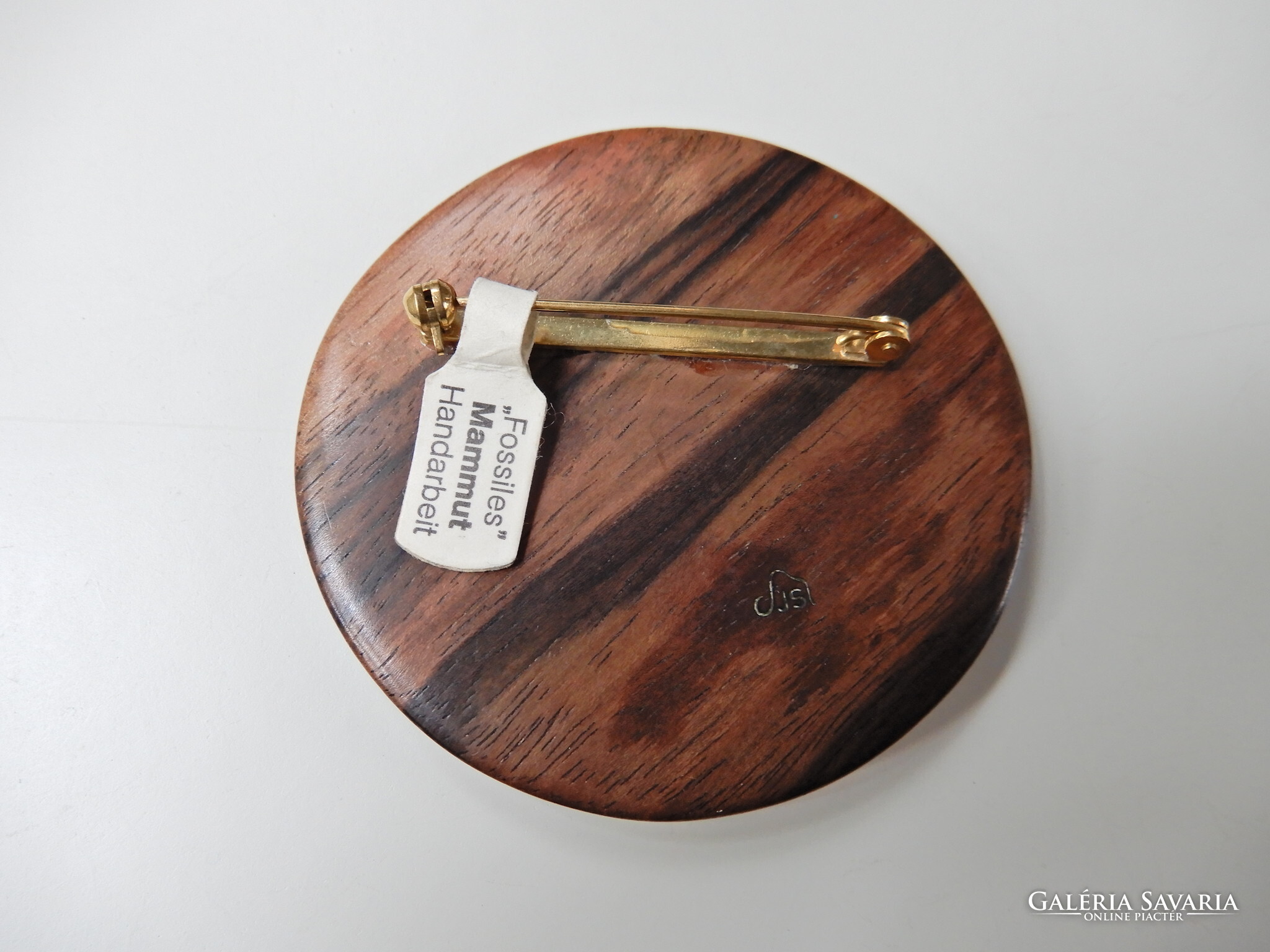 Régi kézműves Jürgen Schott nagyméretű mammut agyar bross türkiz intarziával