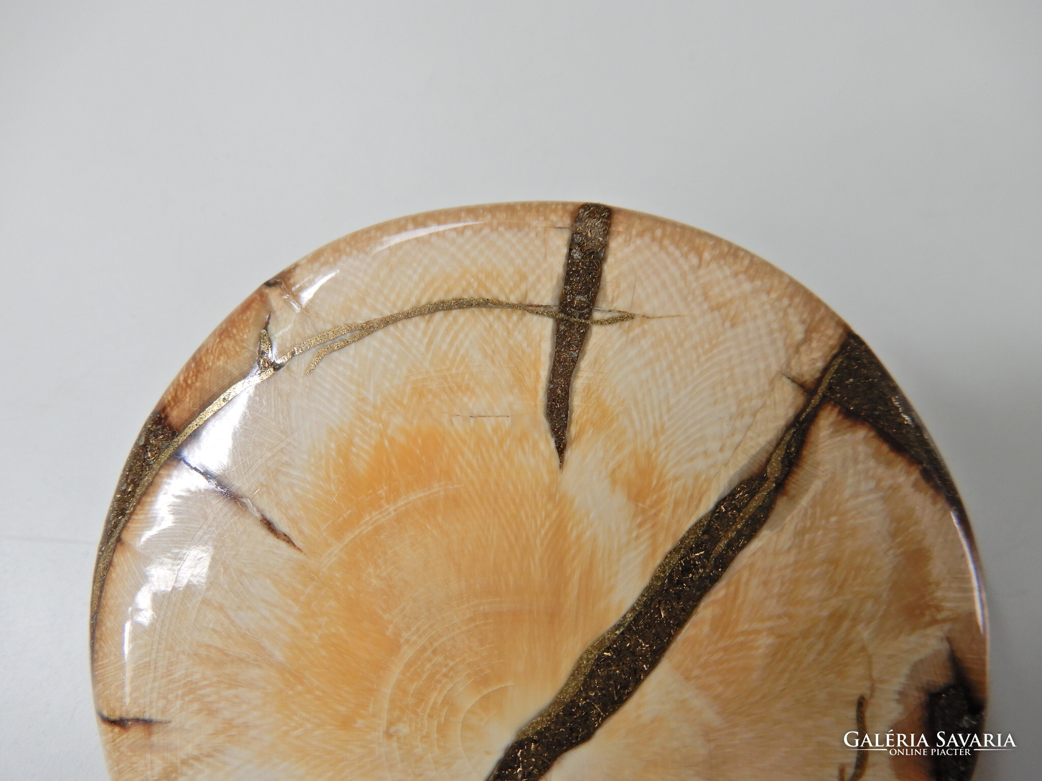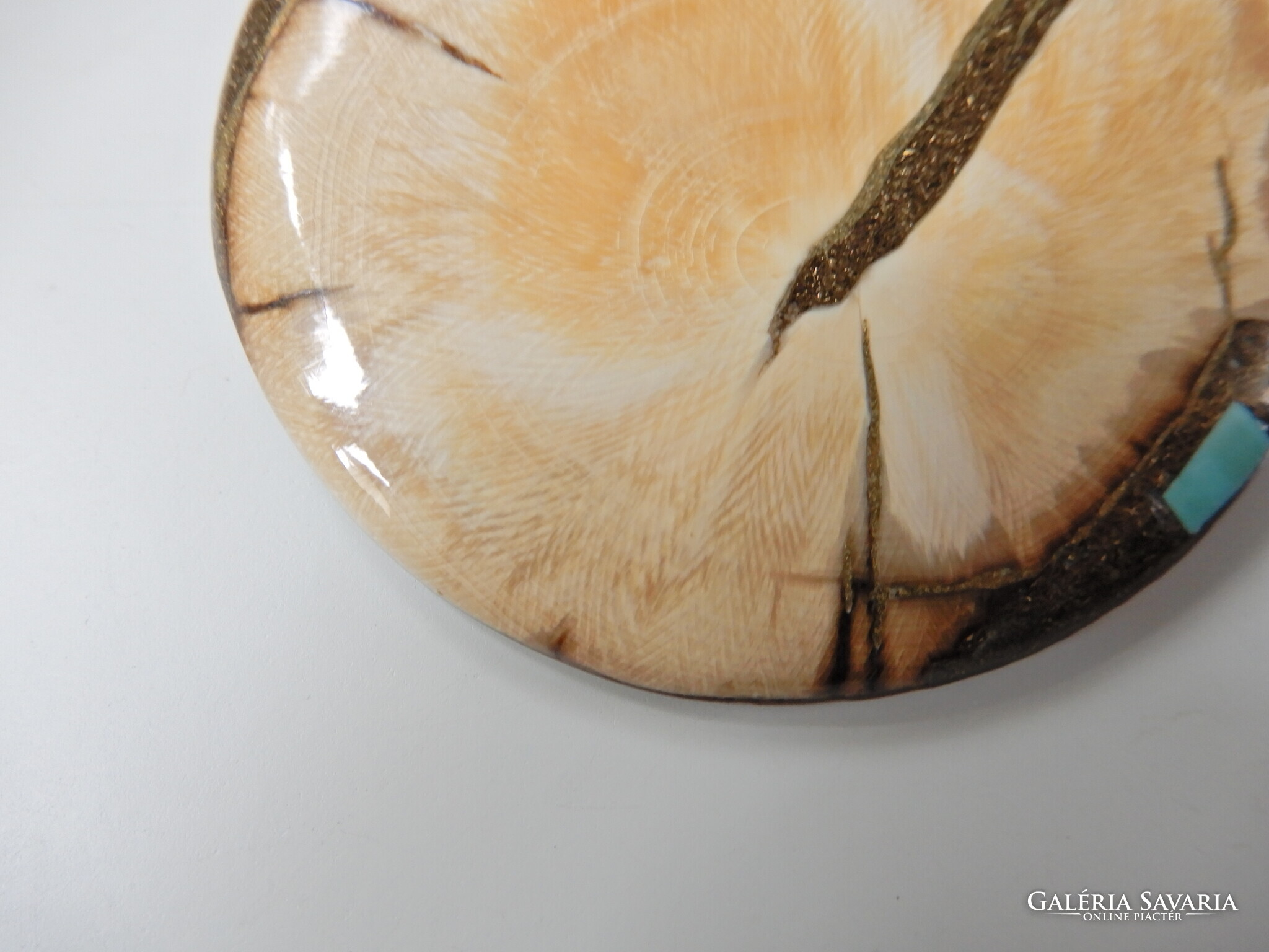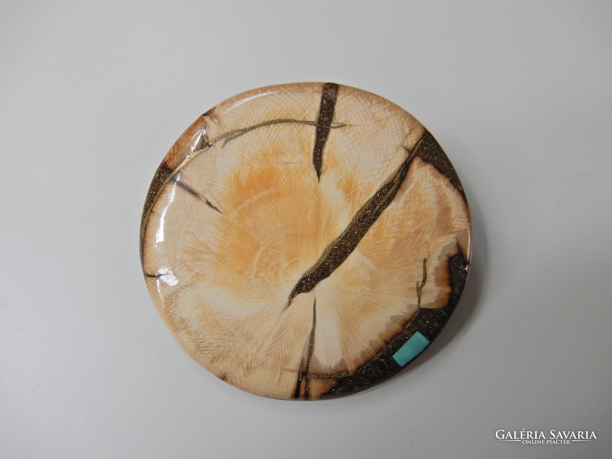 Régi kézműves Jürgen Schott nagyméretű mammut agyar bross türkiz intarziával