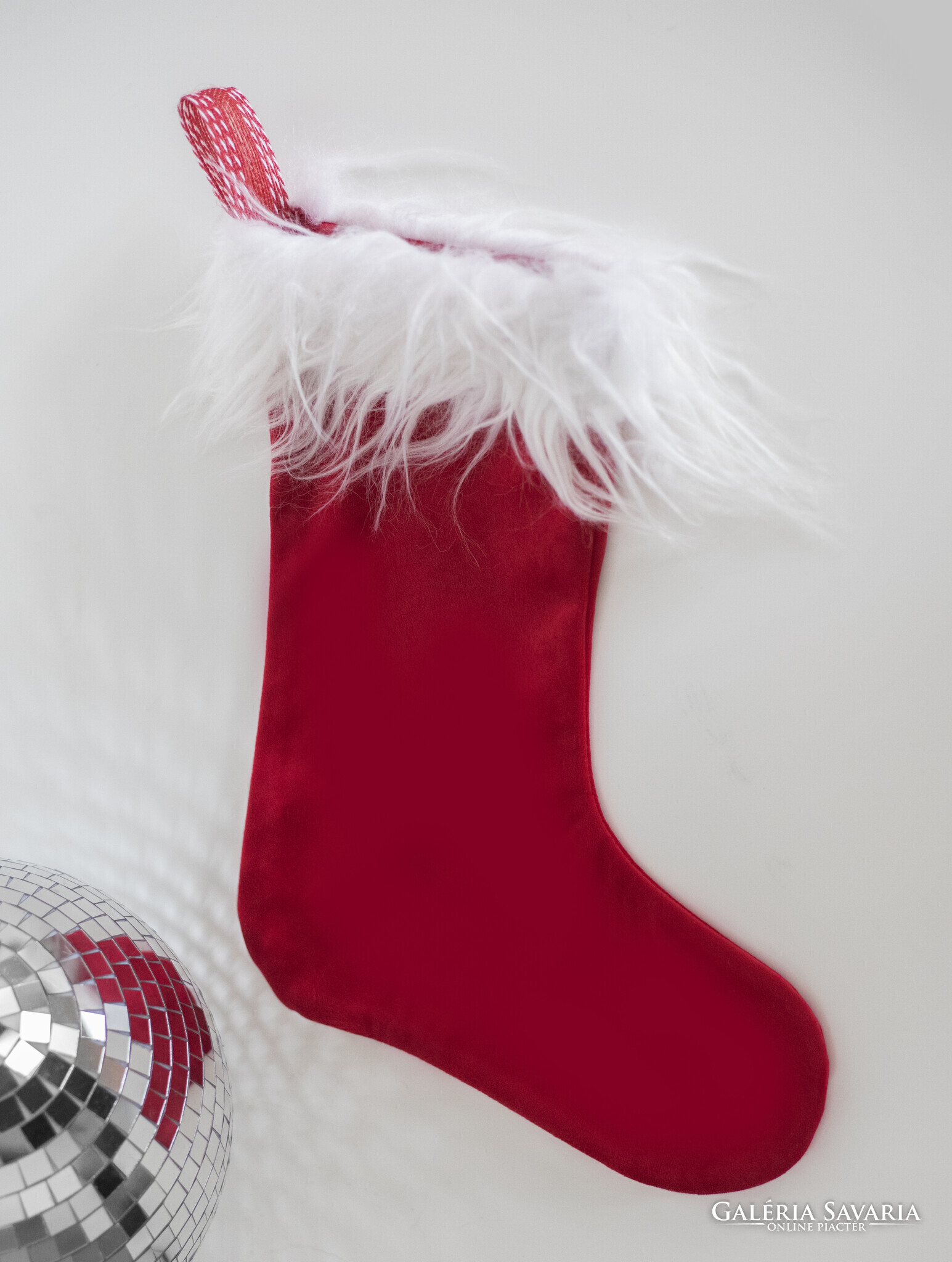 Reszkessetek betörők, forró csoki, fenyő illat és EZ lóg az esetenként kartonból készült kandallón (ugye, hogy ugye?).A piros legkarácsonyibb árnyalatában, borzas fehér szőrrel, selymes tapintással.