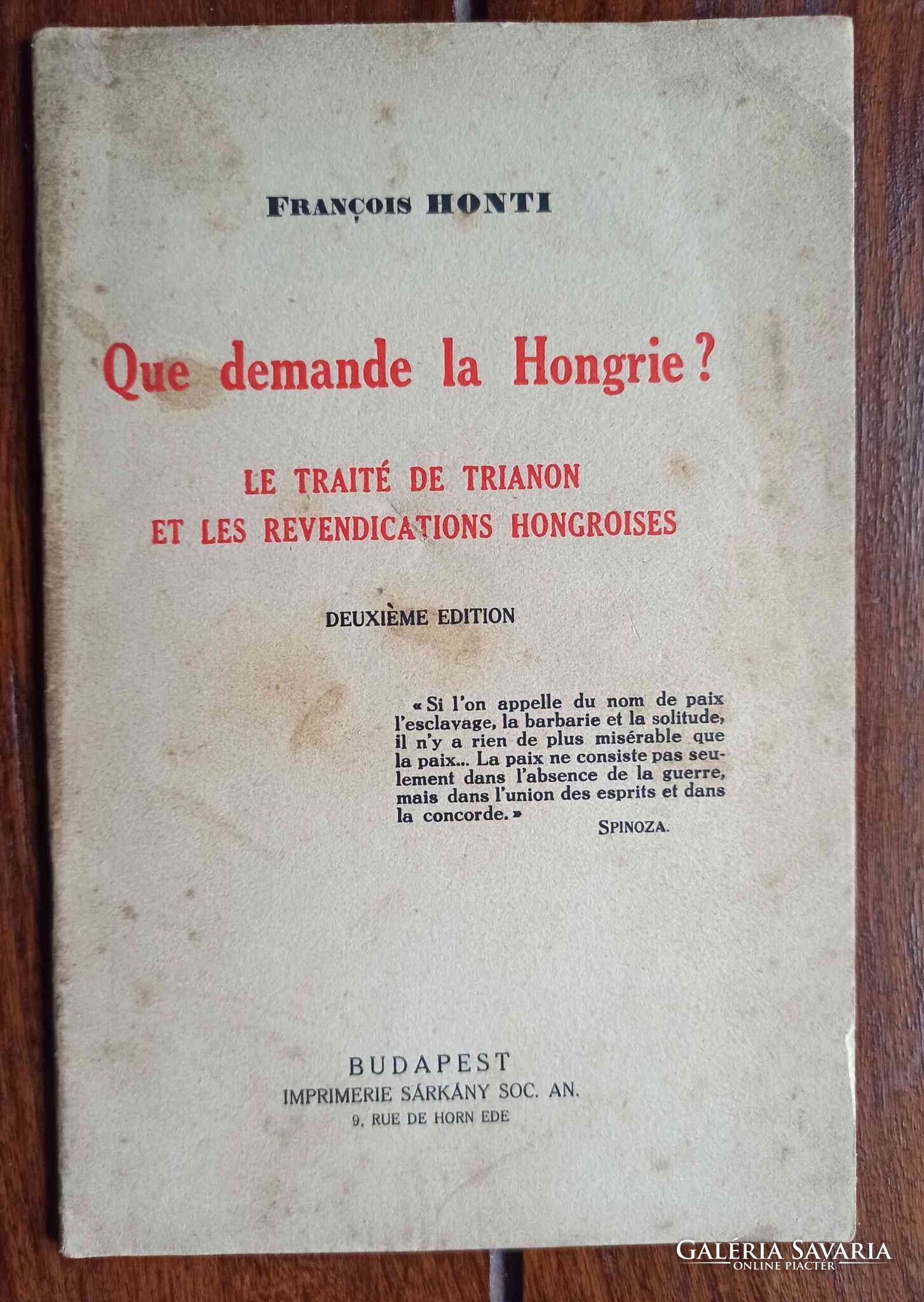 Ritka!!! Trianon téma. François Honti - Que demande la Hongrie? [1933]. Bp., 33 p.