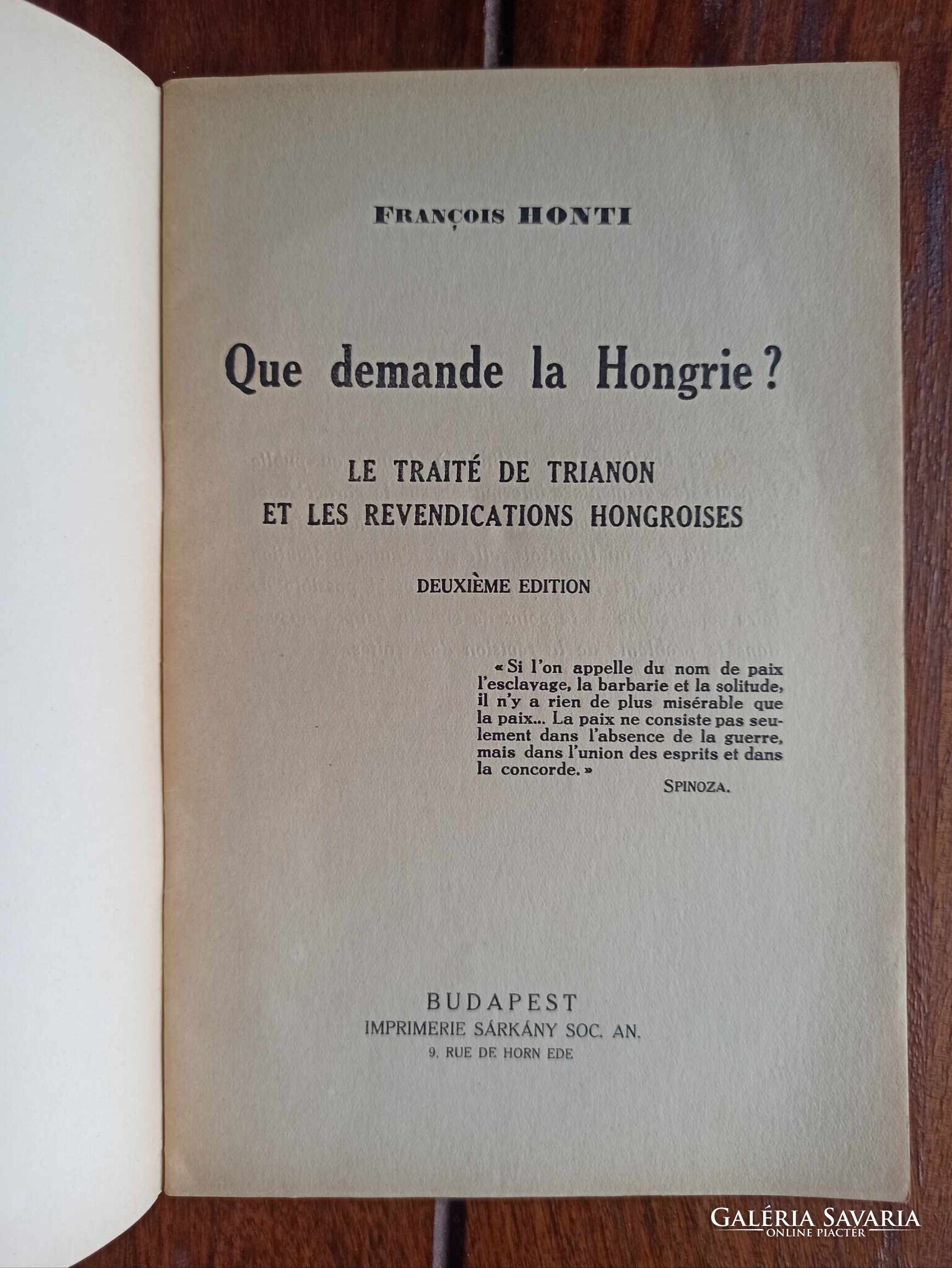 HONTI François (Ferenc) - Que demande la Hongrie - Le traité de Trianon et les revendications Hongroises. Deuxieme edition.