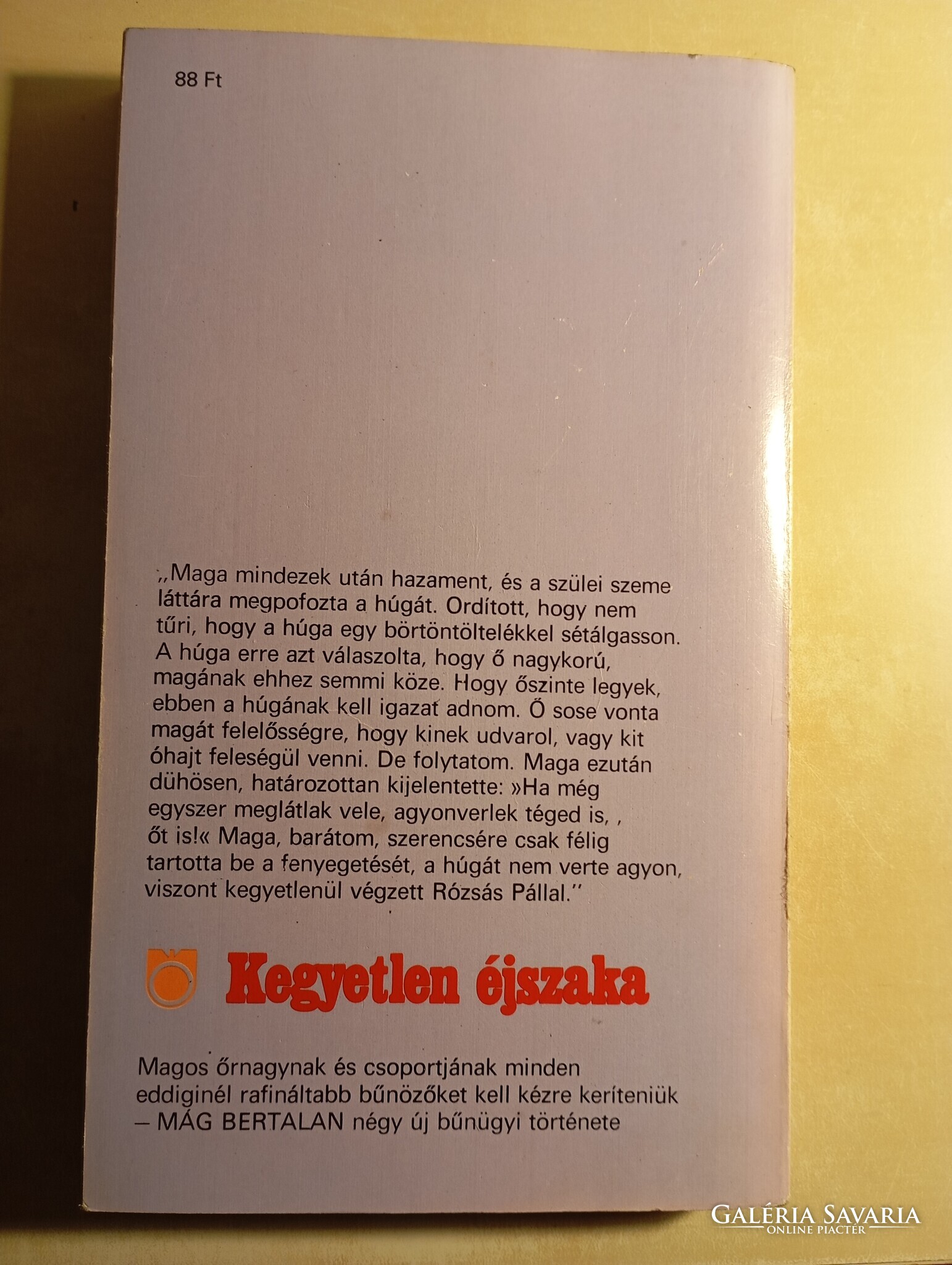 "Maga mindezek után hazament, és a szülei szeme láttára megpofozta a húgát. Ordított, hogy nem tűri, hogy a húga börtöntöltelékkel sétálgasson. A húga erre azt válaszolta, hogy ő nagykorú, magának ehhez semmi köze. Hogy őszinte legyek, ebben a húgának kell igazat adnom. Ő sose vonta magát felelősségre, hogy kinek udvarol, vagy kit óhajt feleségül venni. De folytatom. Maga ezután dühösen, határozottan kijelentette: „Ha még egyszer meglátlak vele, agyonverlek téged is, őt is!” Maga, barátom, szerencsére csak félig tartotta be a fenyegetését, a húgát nem verte agyon, viszont kegyetlenül végzett Rózsás Pállal."