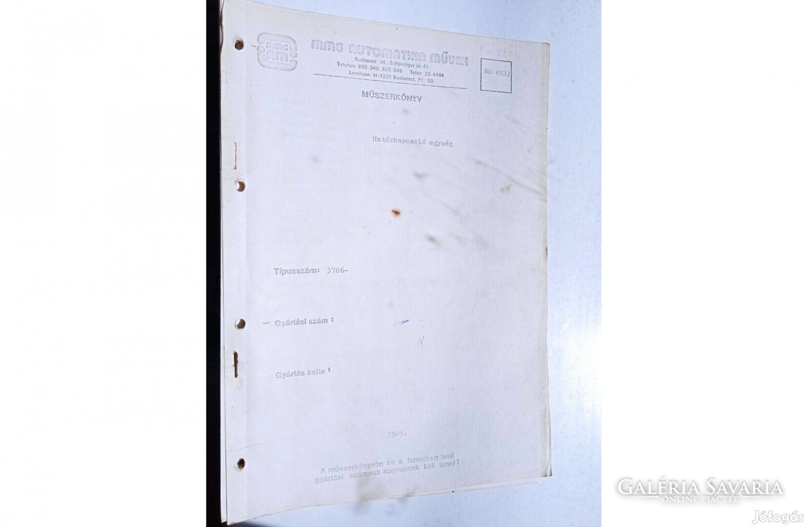 MMG -AM határkapcsoló egység műszerkönyv , 1985 mmmmmmmmm