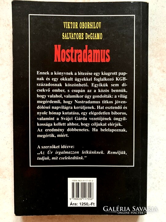 Ennek a könyvnek a létezése egy kirugott papnak és egy okkult ügyekkel foglalkozó KGB-századosnak köszönhető. Egyikük sem dicsekvő ember, s csupán az a közös bennük, hogy valahol, valamikor úgy gondolták: a világ megérdemli, hogy Nostradamus titkos jövendölései napvilágra kerüljenek. Hat esztendő és nyolc hónap kutatás, egy elégedetlen bíboros, valamint a Svájci Gárda vezetőjének öngyilkossága kellett ahhoz, hogy céljukat elérjék. Az eredmény döbbenetes. Ha belelapoznak, megértik, miért.