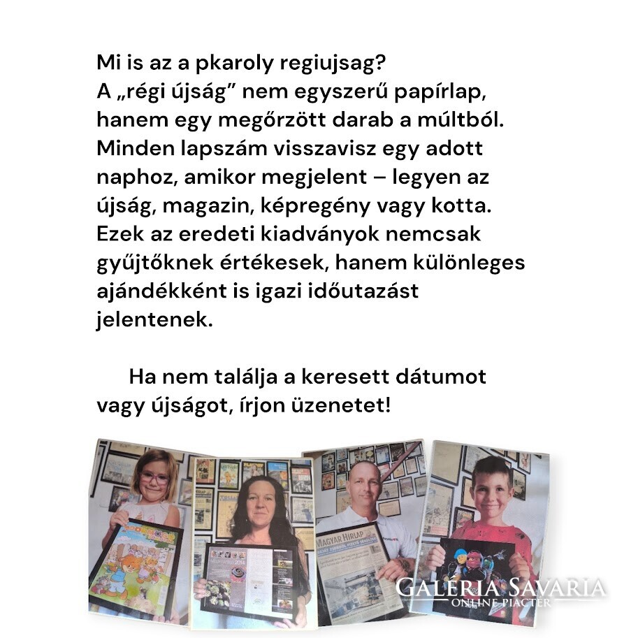 Utánvétes küldemény esetén kizárólag az MPL és FoxPost szolgáltatással tudom feladni az újságot, amely plusz költséggel jár.