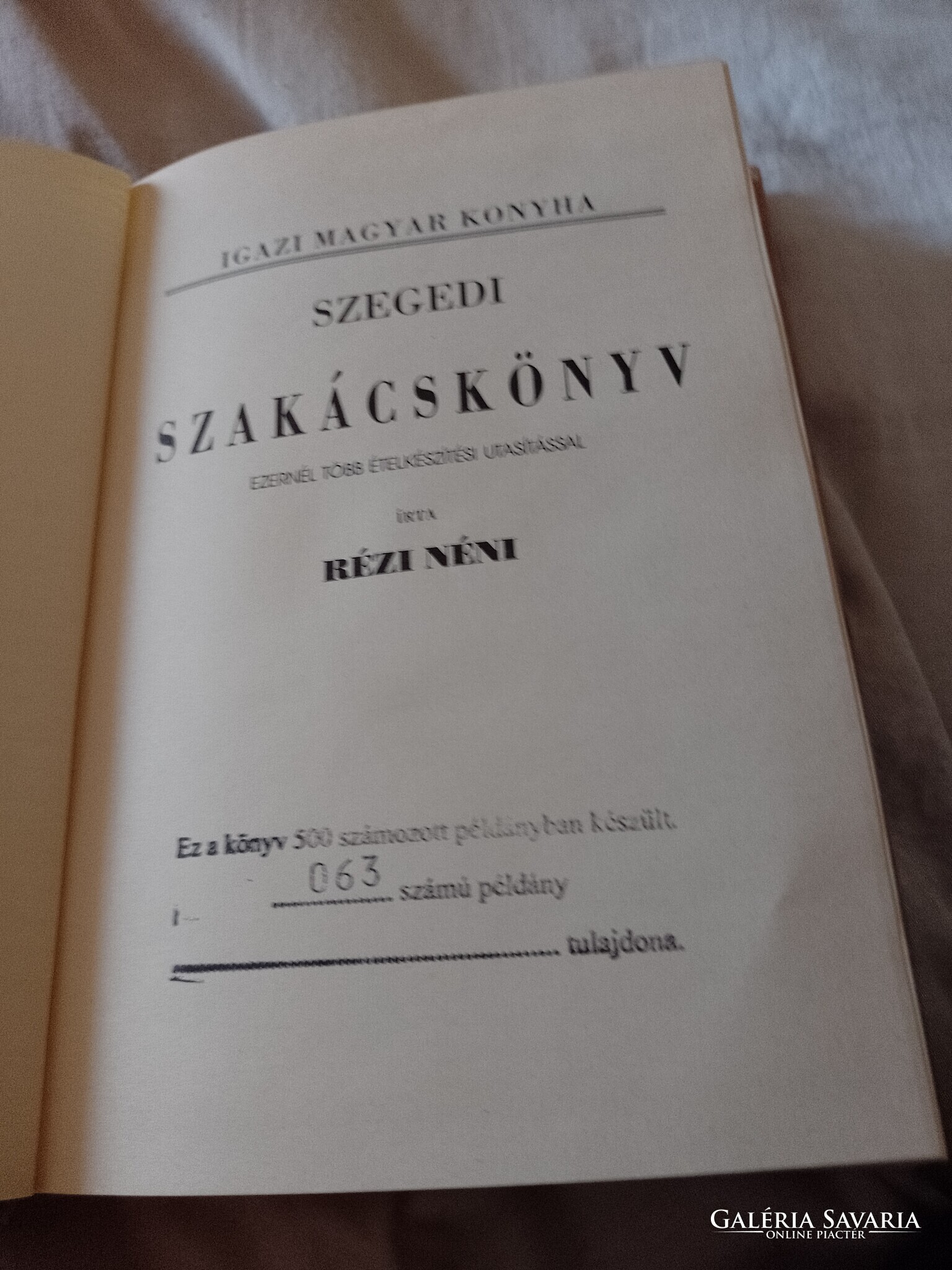 Rézi Néni Szegedi Szakácskönyv,1996 bán megjelent limitált példányból (500db) ból 63 dik példány .Fa díszdobozban ,jó állapotú. Gyűjtõi darab .