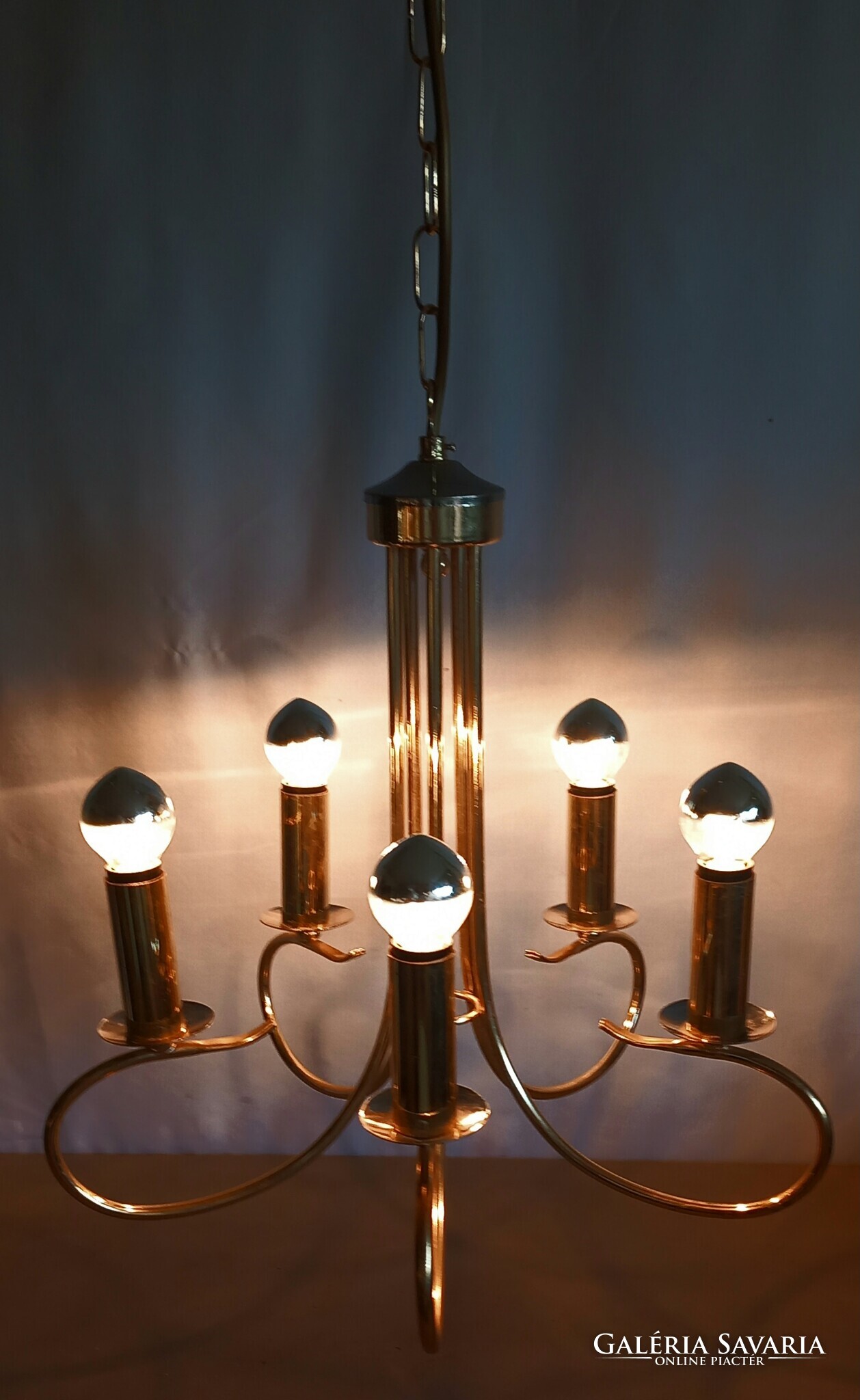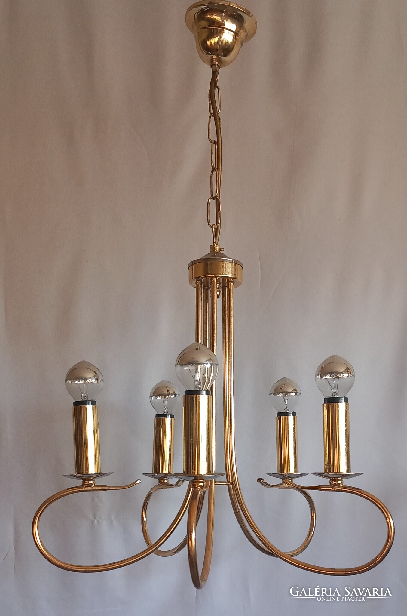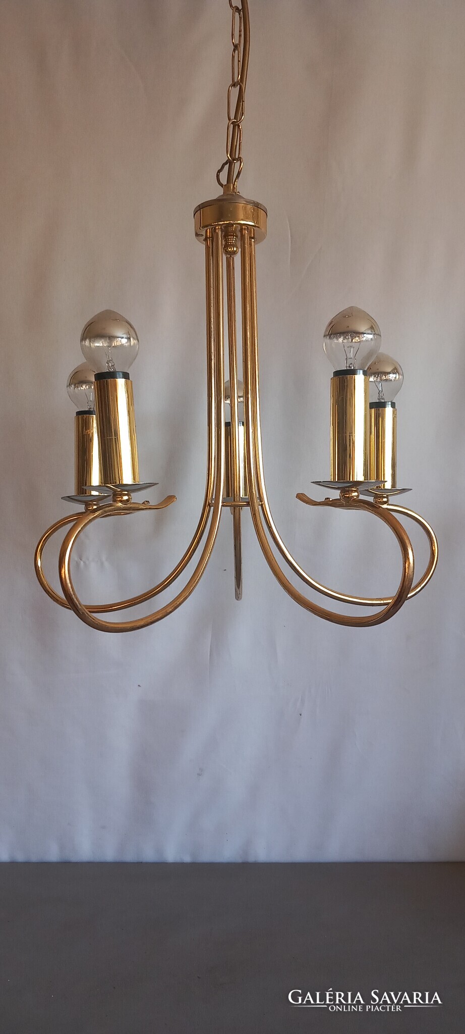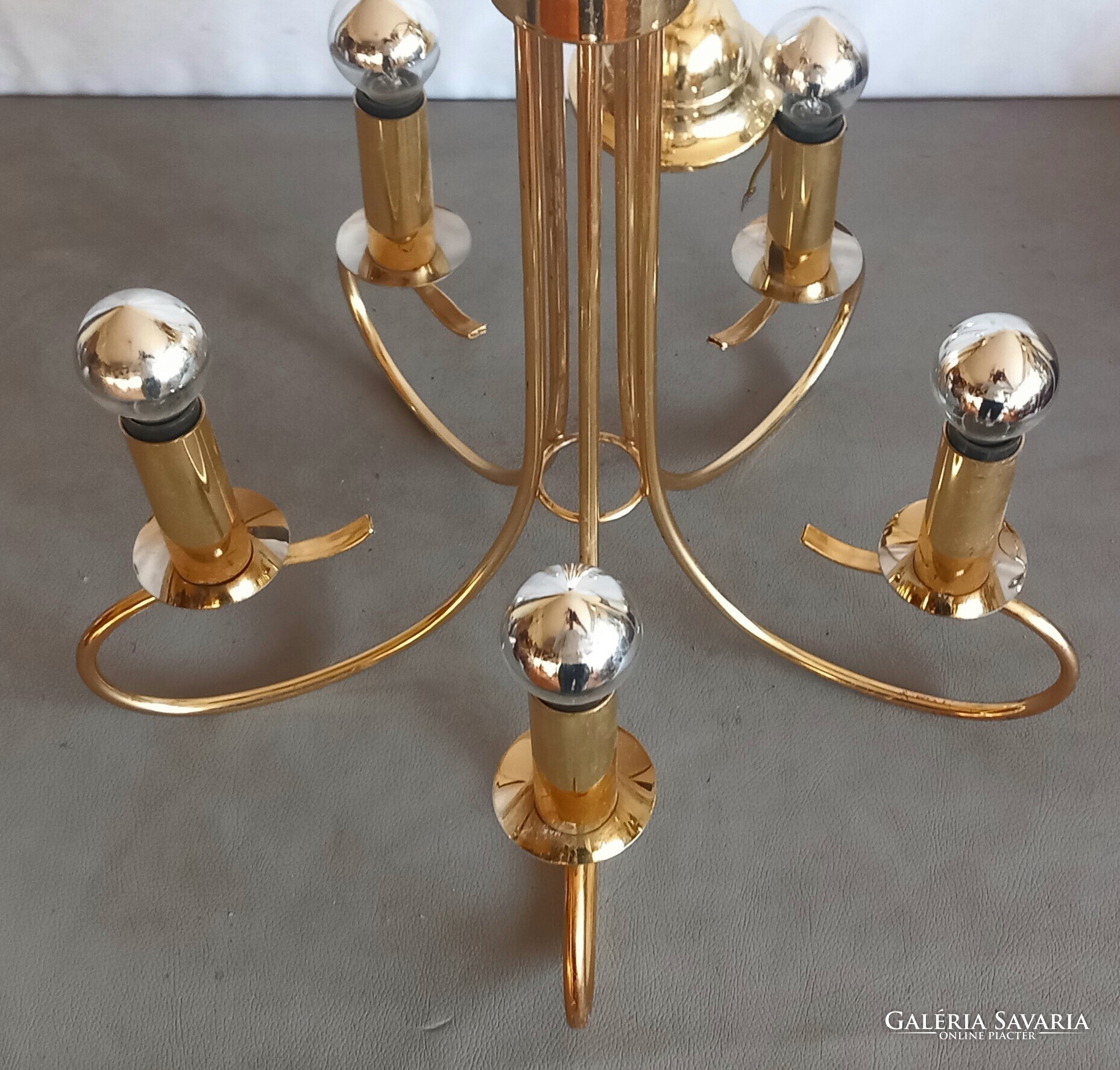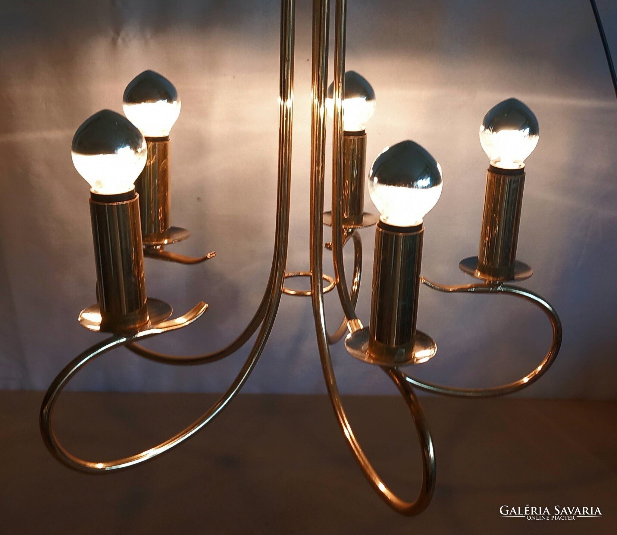Hollywood regency Kolarz mennyezeti lámpa. 5 égös, krómmal kombinálva. Szép állapotban, tökéletesen működik.