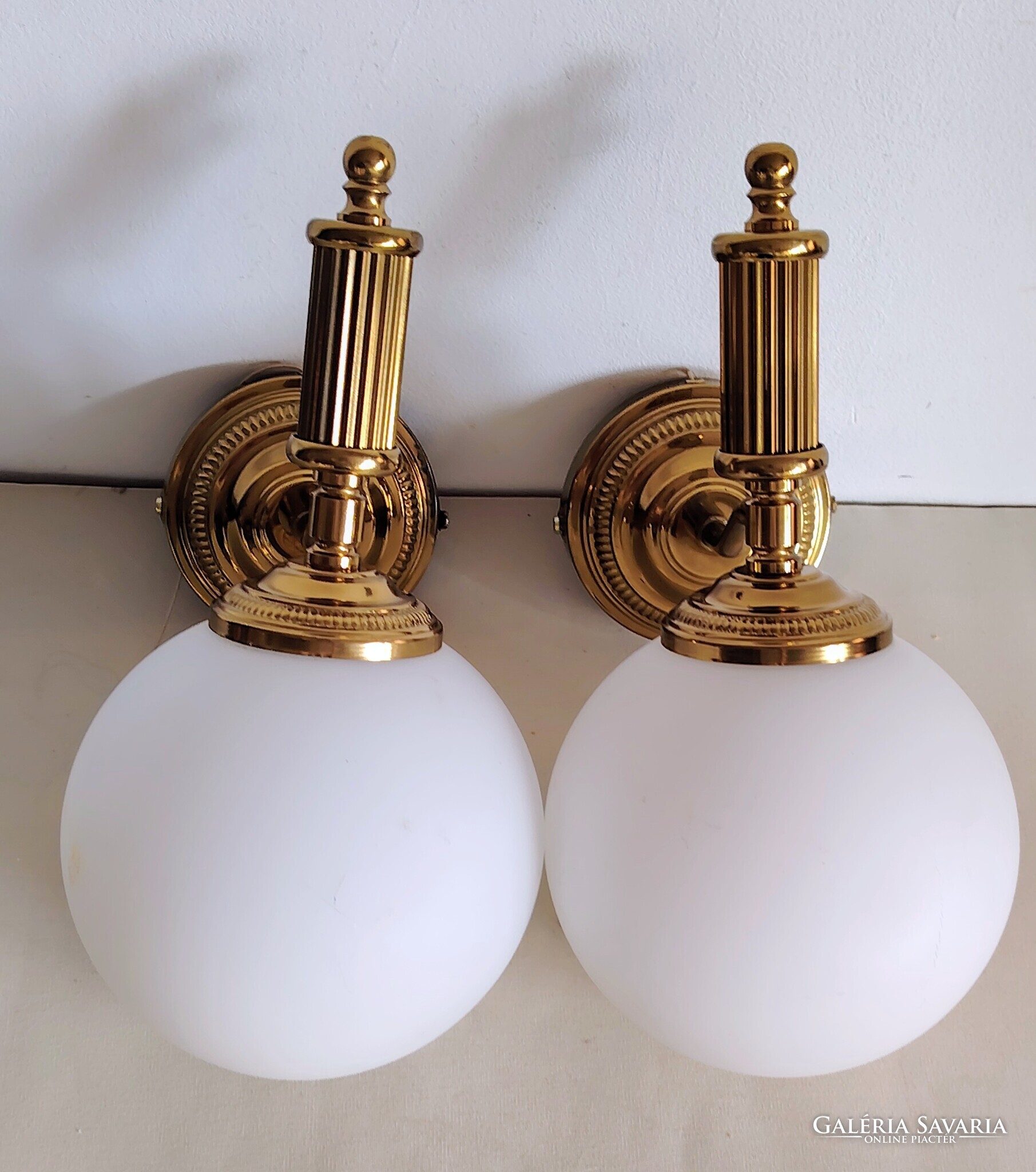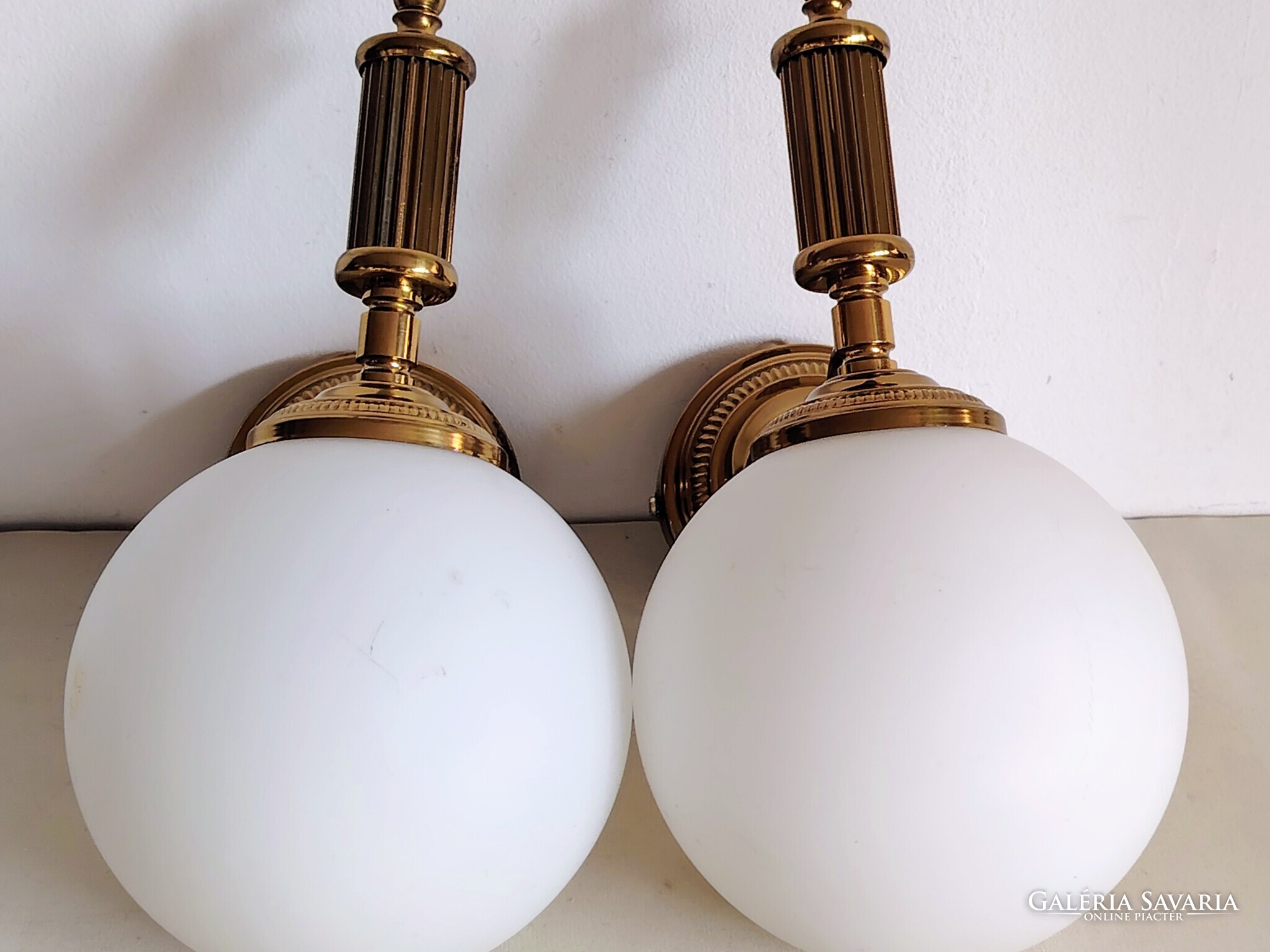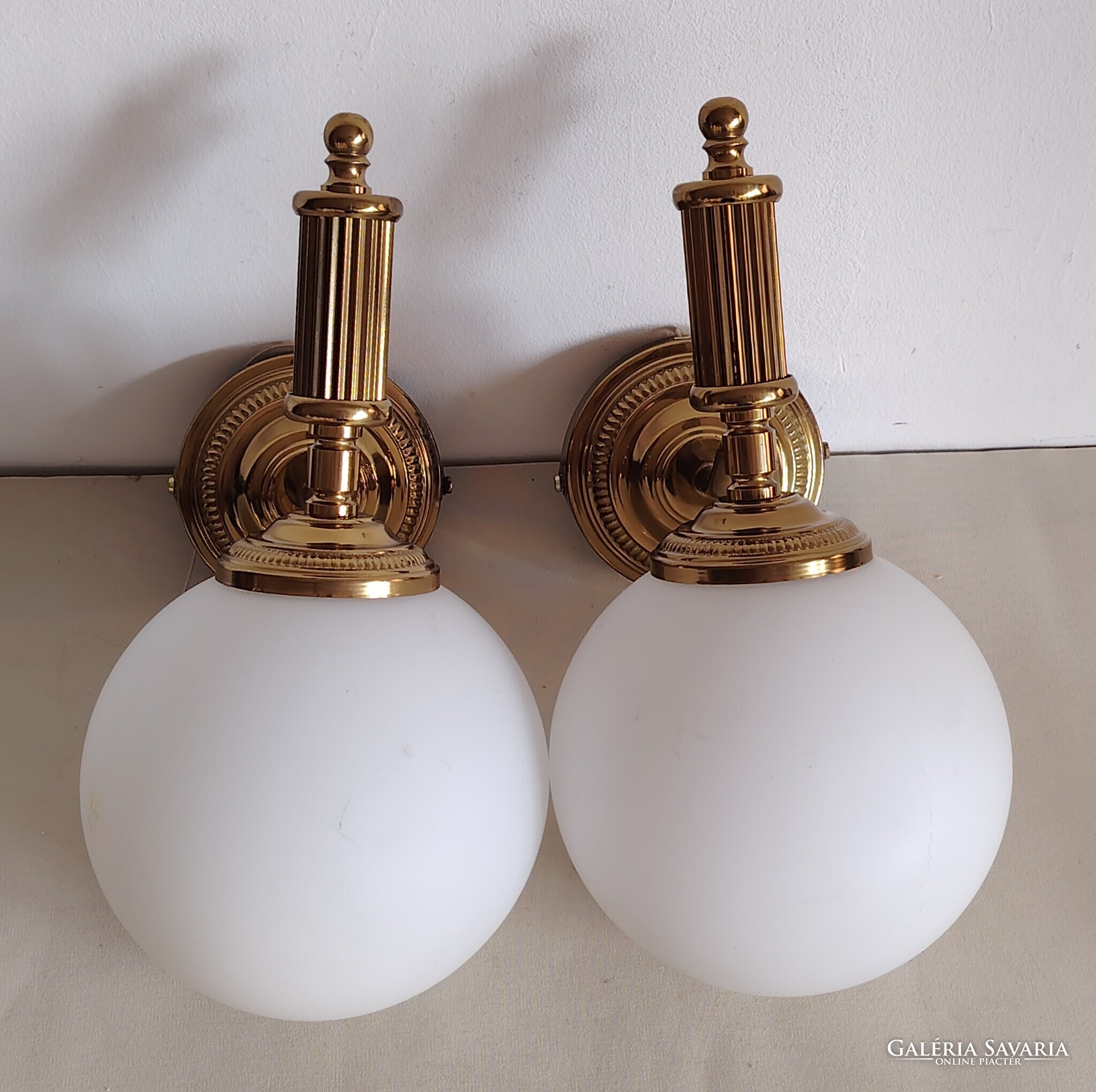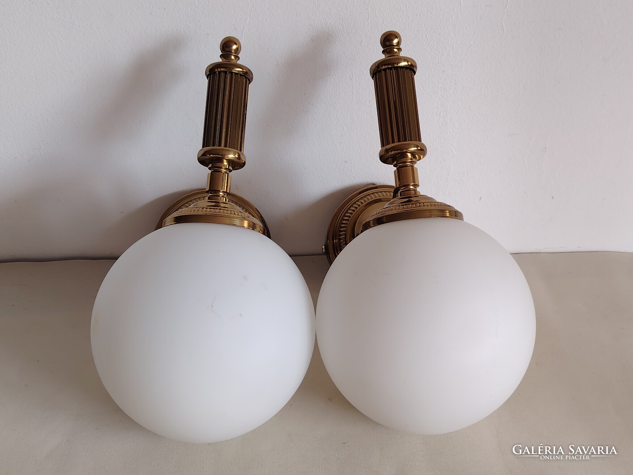 Hollywood Règency fali lámpa párban. Tejüveg matt búrával. Sima normál kisméretű gyertya izzós. Szép állapotban, tökéletesen működik. Húzó kapcsolós.