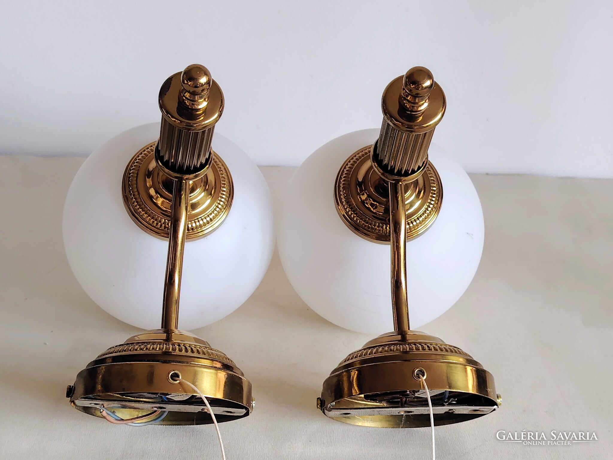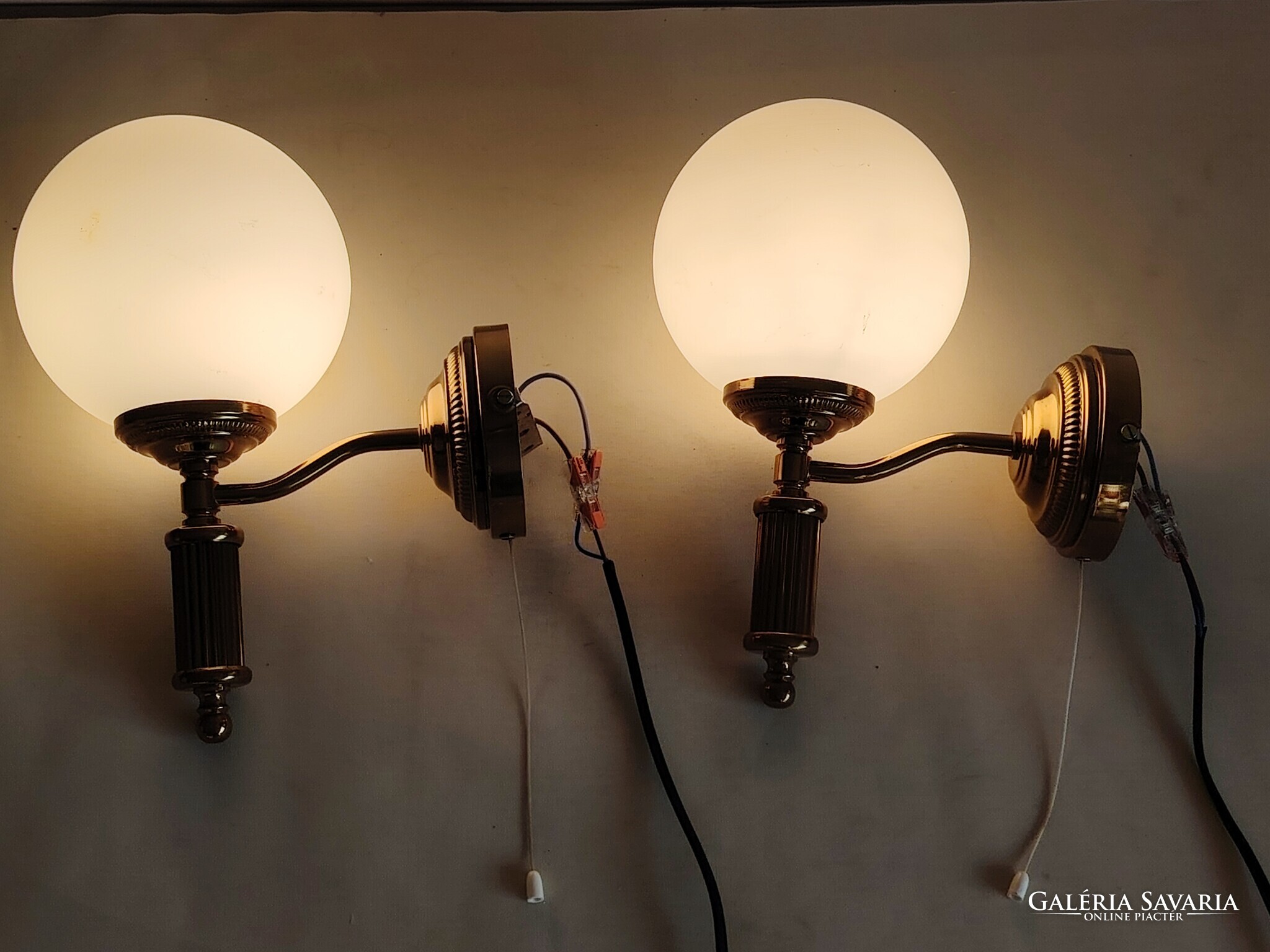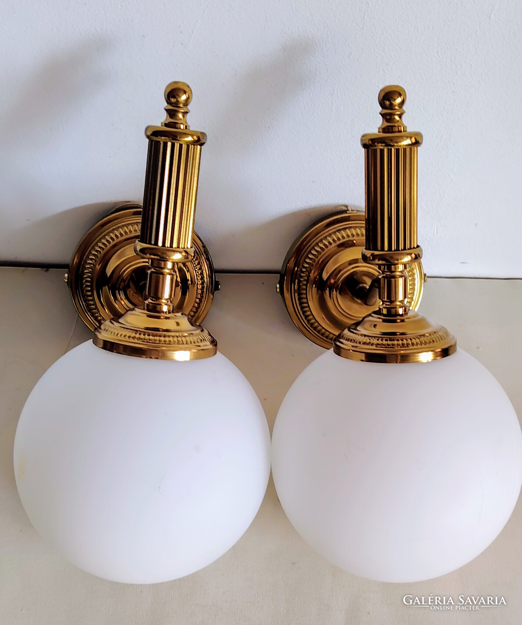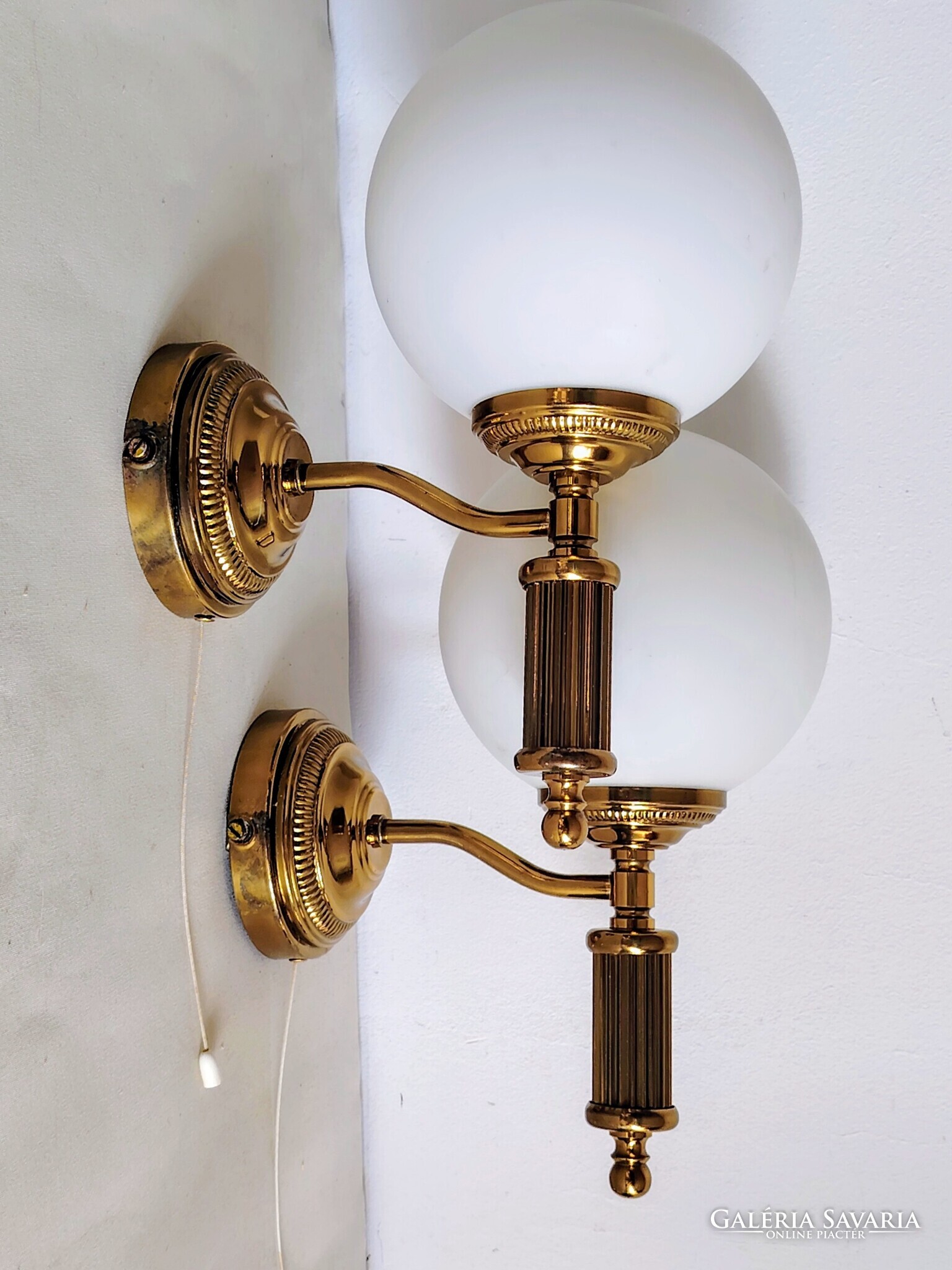 Hollywood Règency fali lámpa párban. Tejüveg matt búrával. Sima normál kisméretű gyertya izzós. Szép állapotban, tökéletesen működik. Húzó kapcsolós.