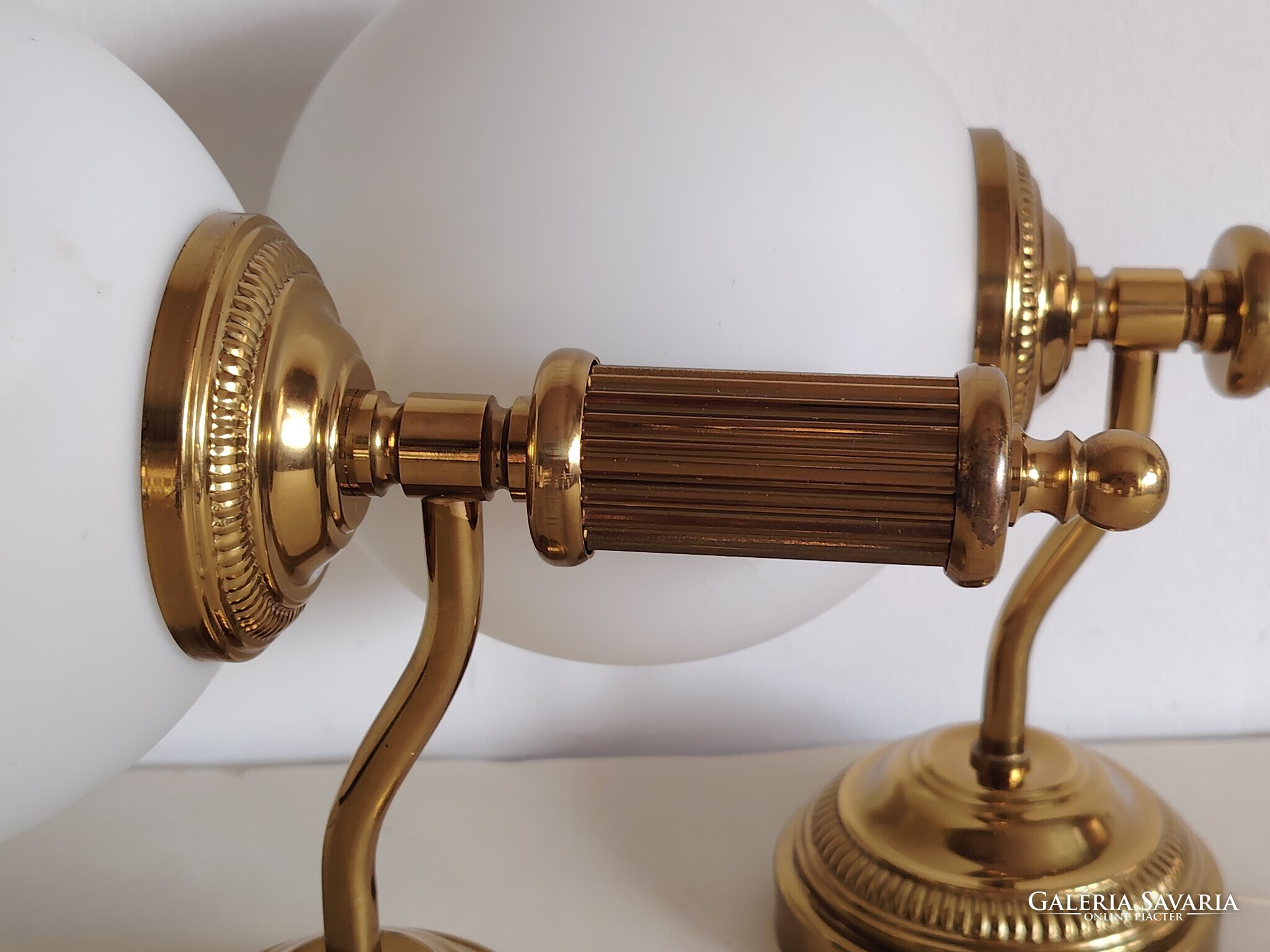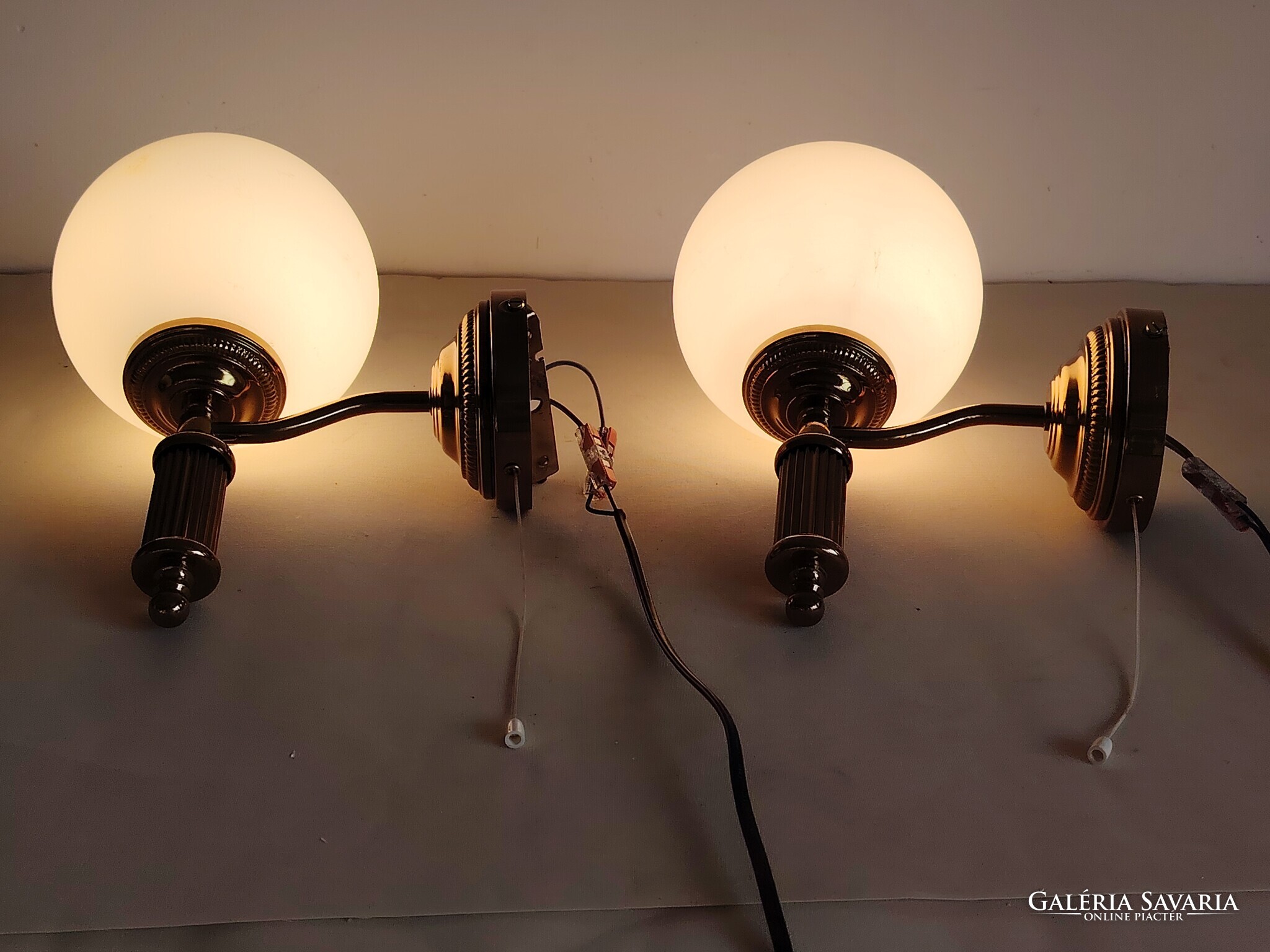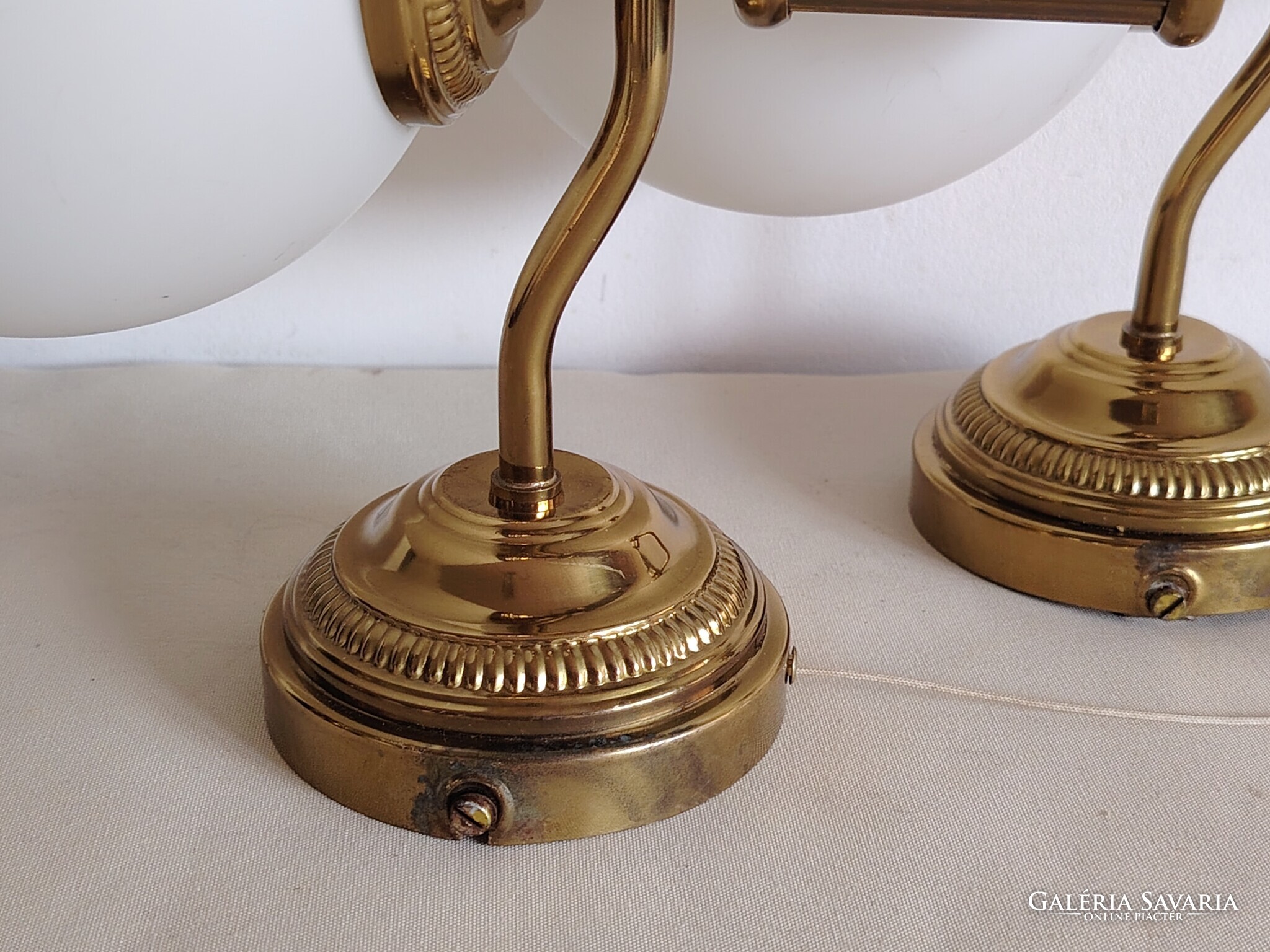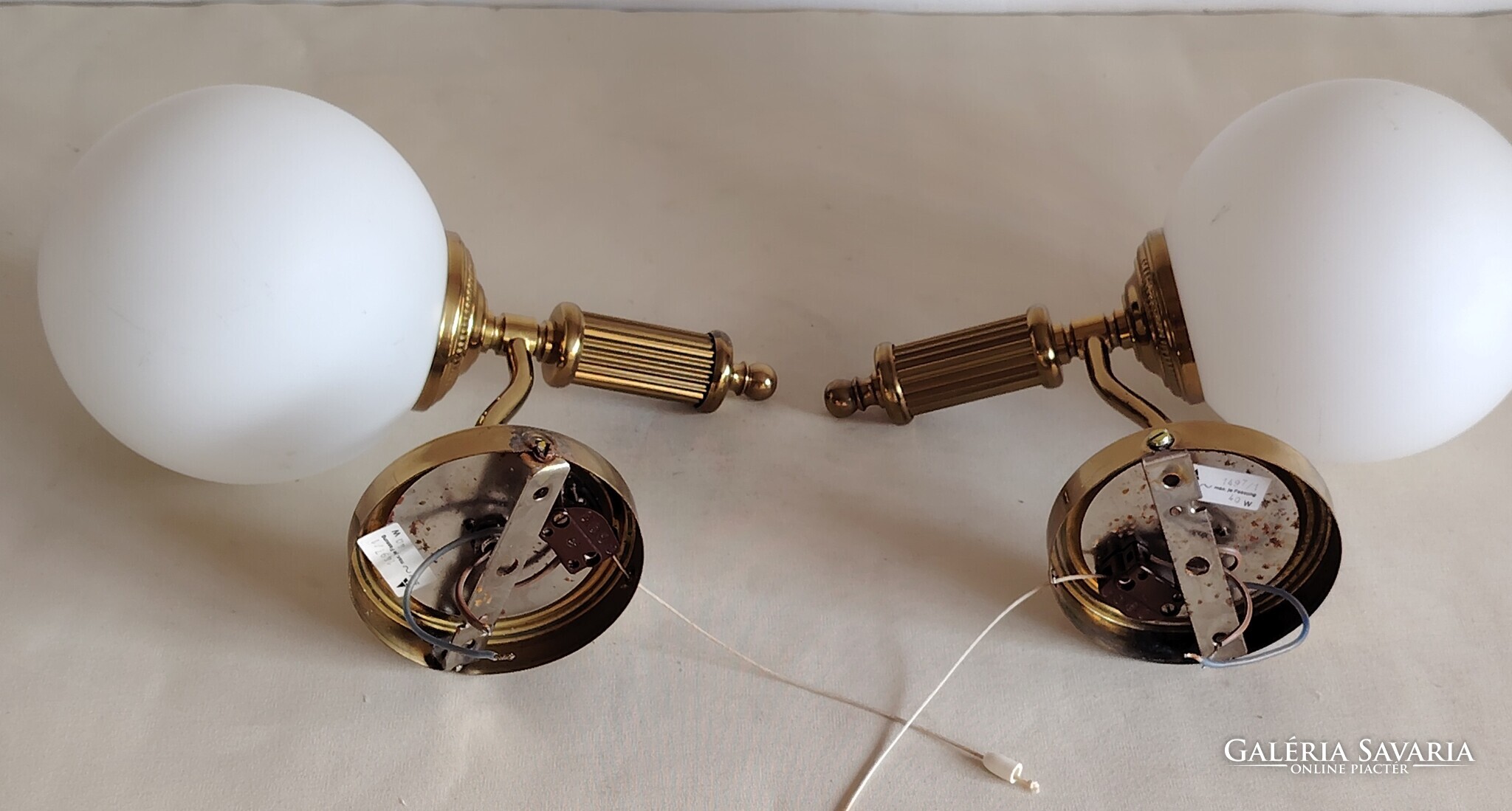 Hollywood Règency fali lámpa párban. Tejüveg matt búrával. Sima normál kisméretű gyertya izzós. Szép állapotban, tökéletesen működik. Húzó kapcsolós.