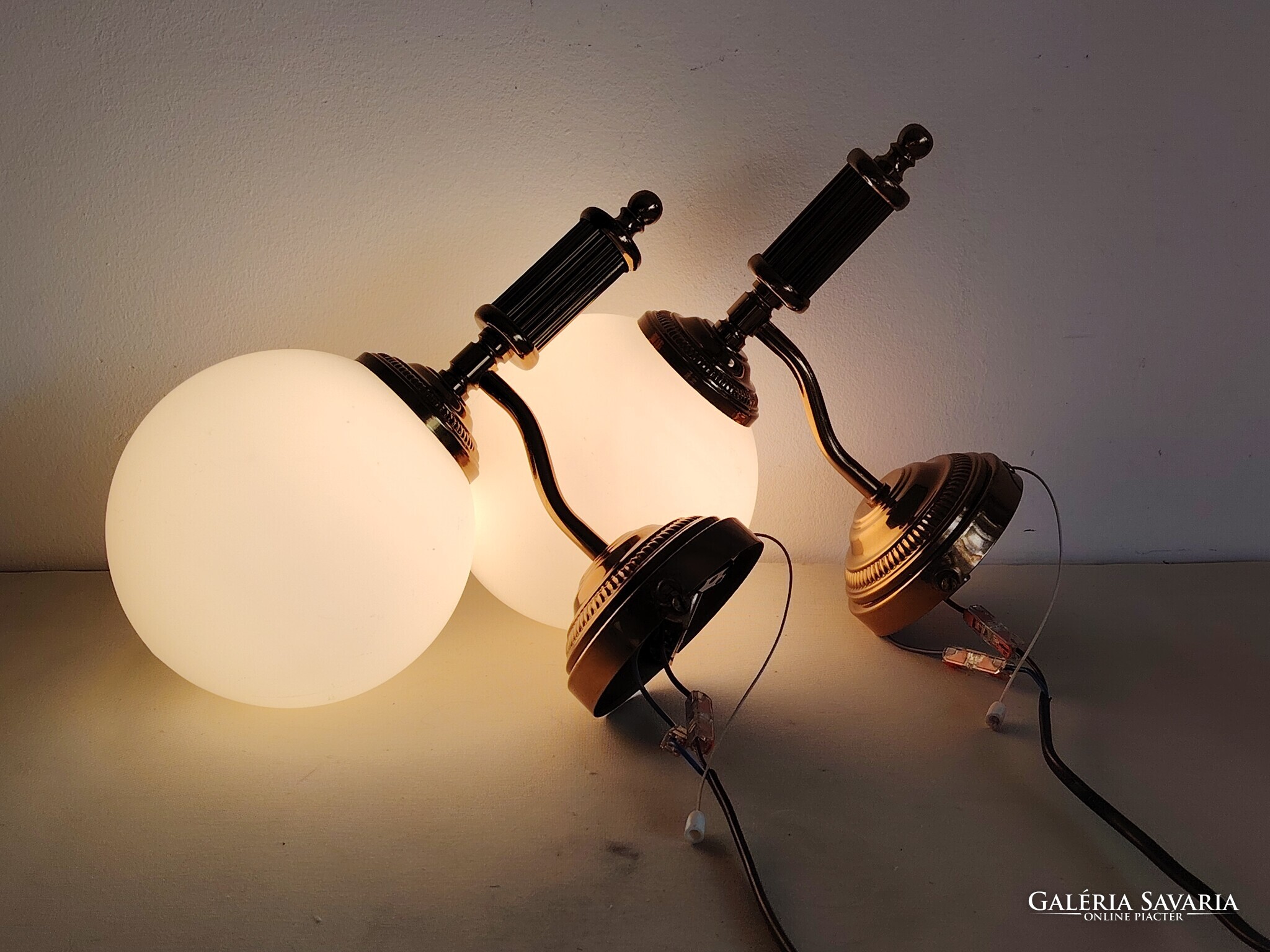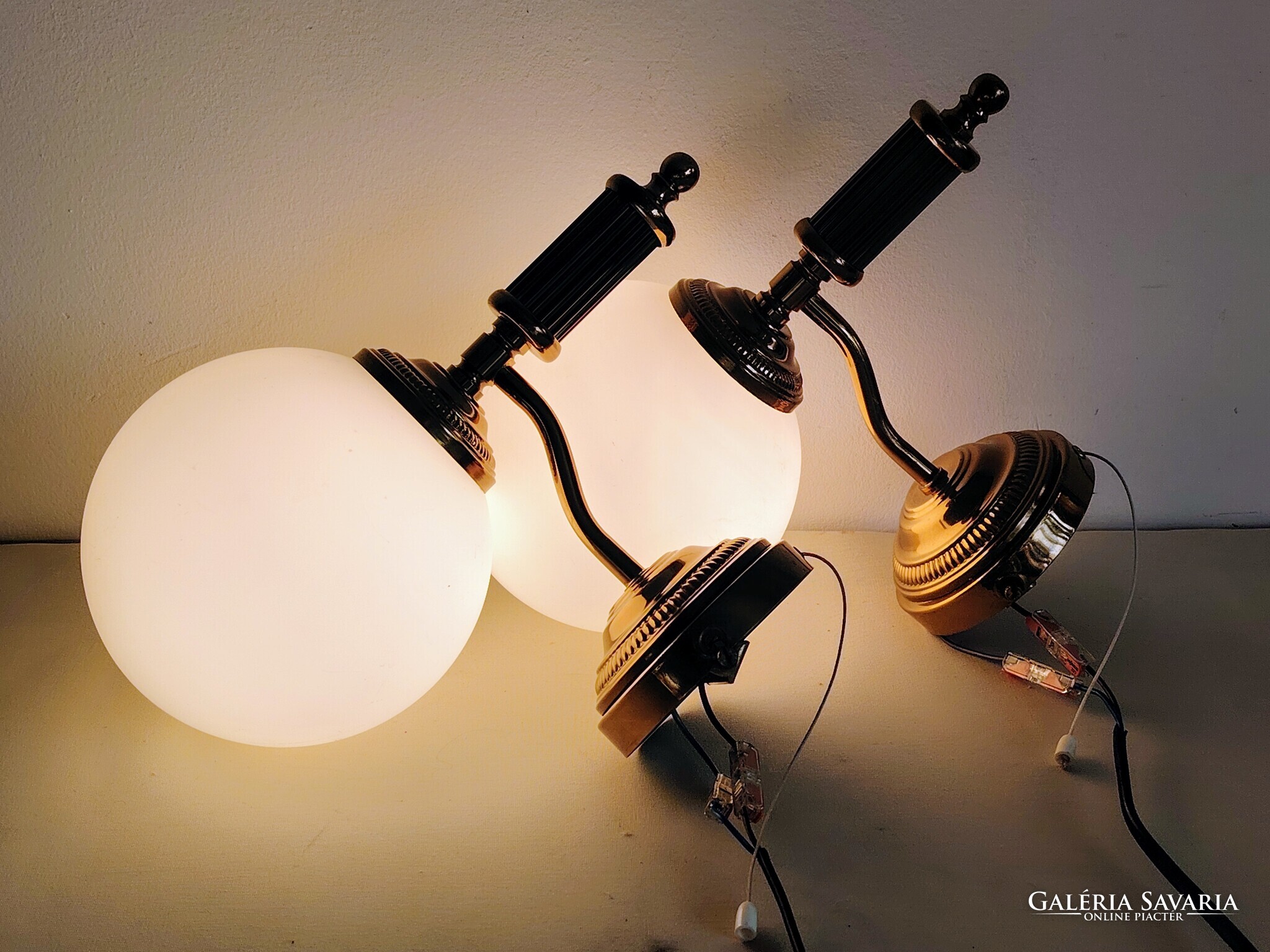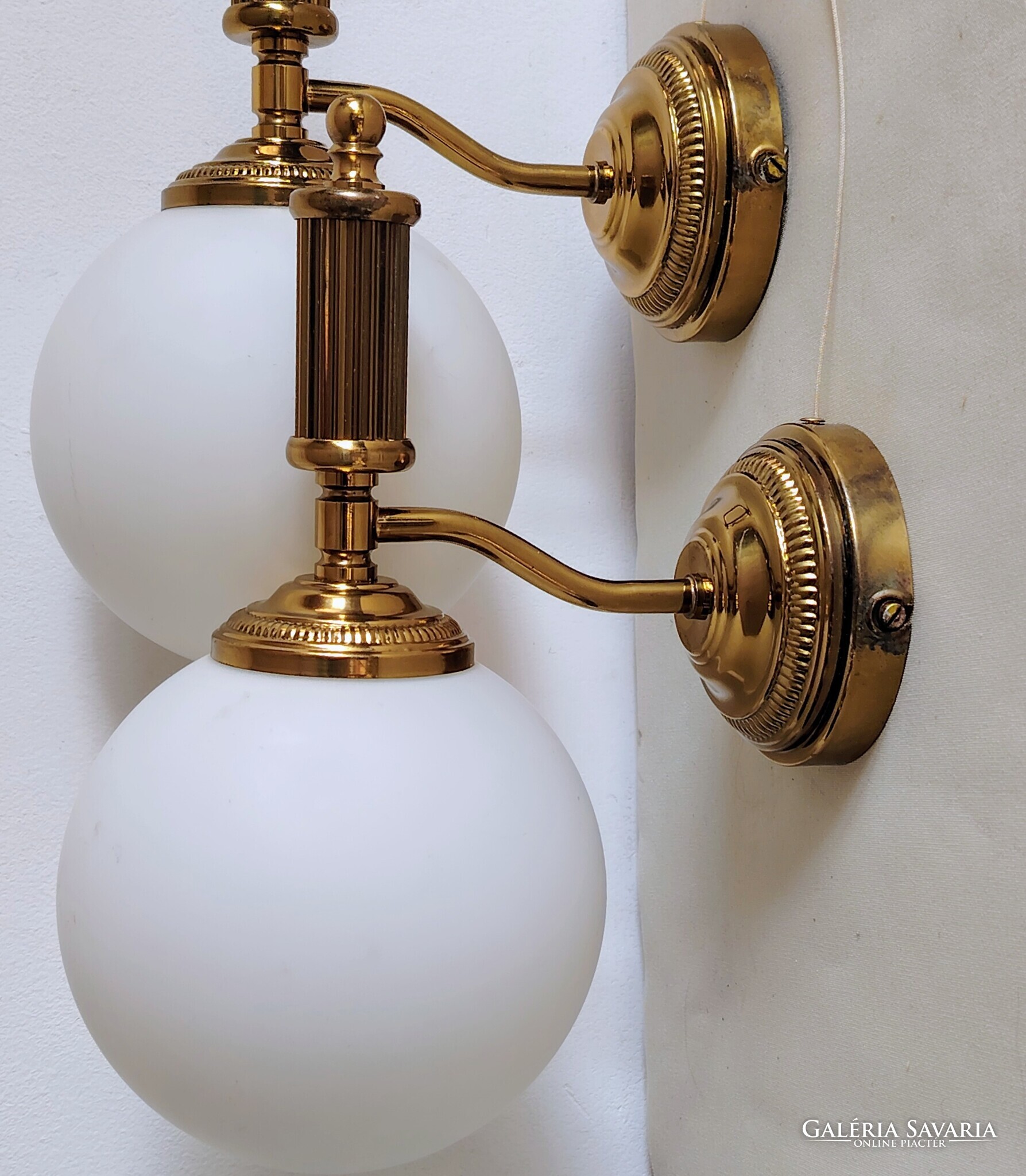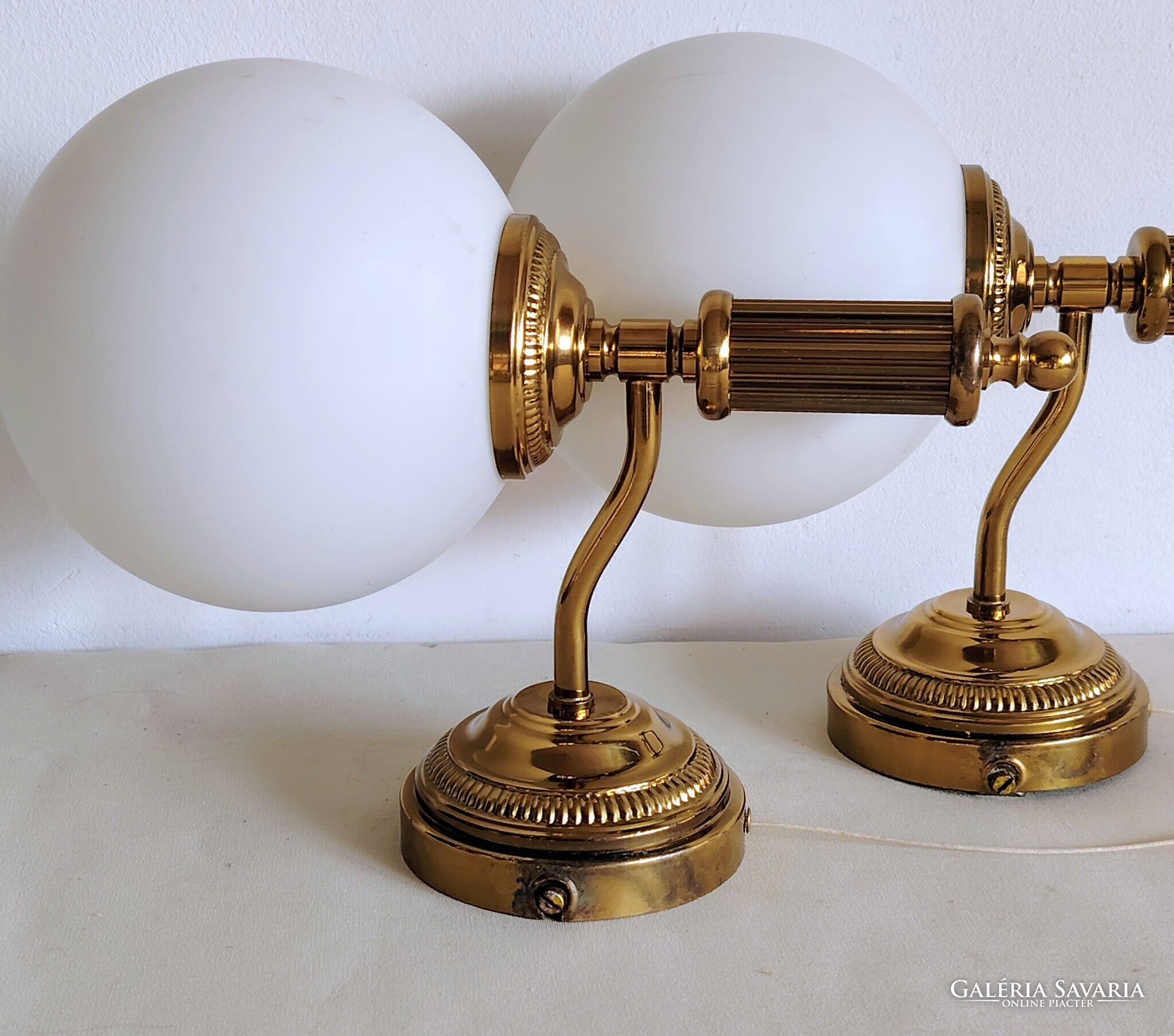 Hollywood Règency fali lámpa párban. Tejüveg matt búrával. Sima normál kisméretű gyertya izzós. Szép állapotban, tökéletesen működik. Húzó kapcsolós.