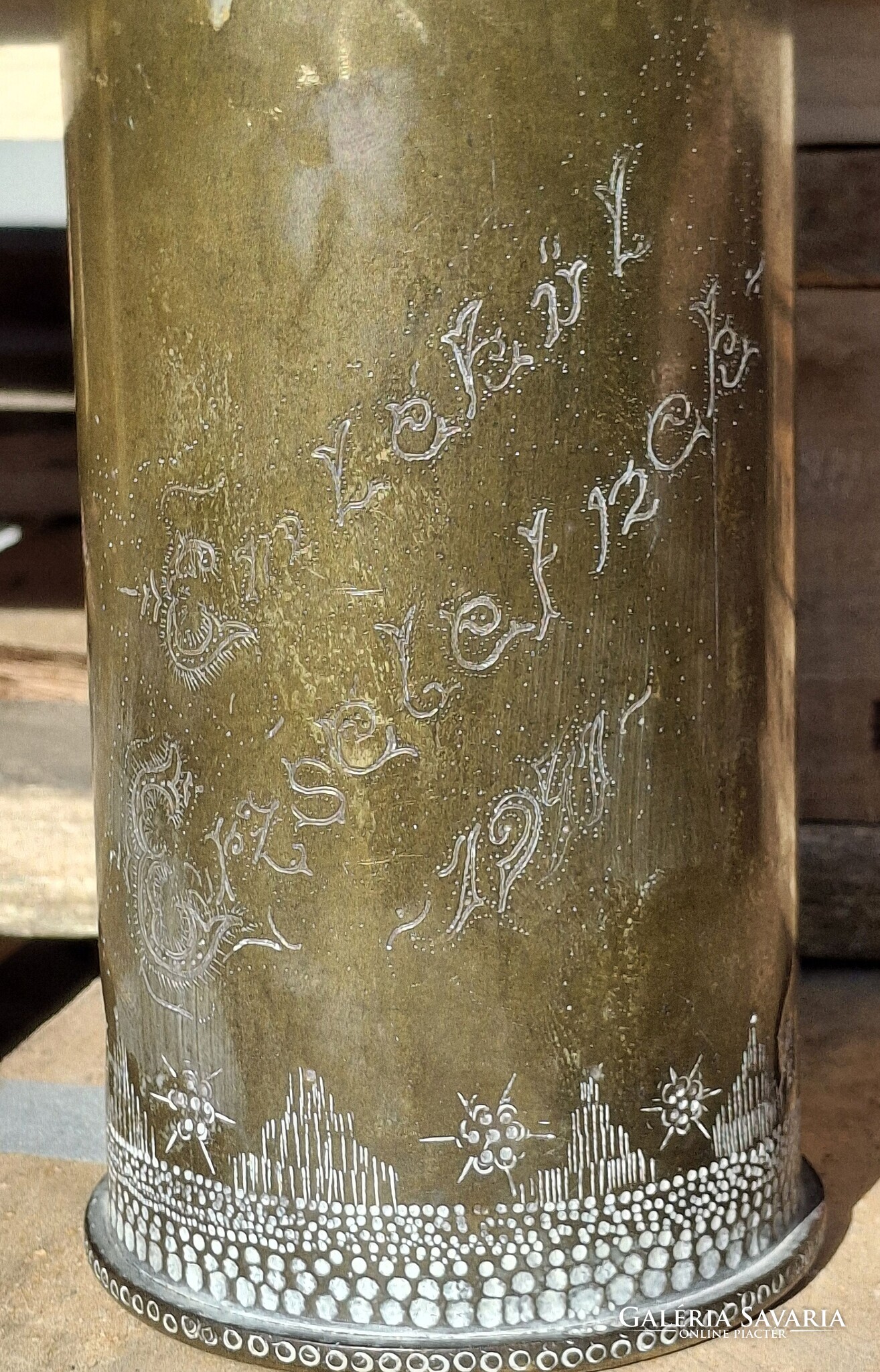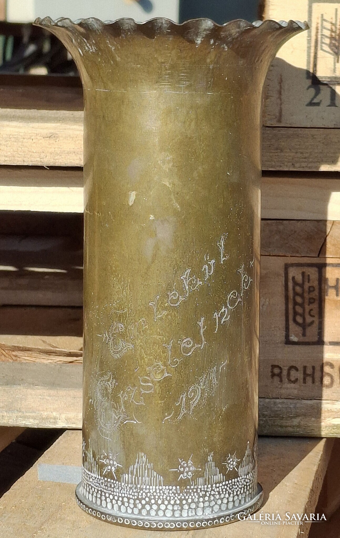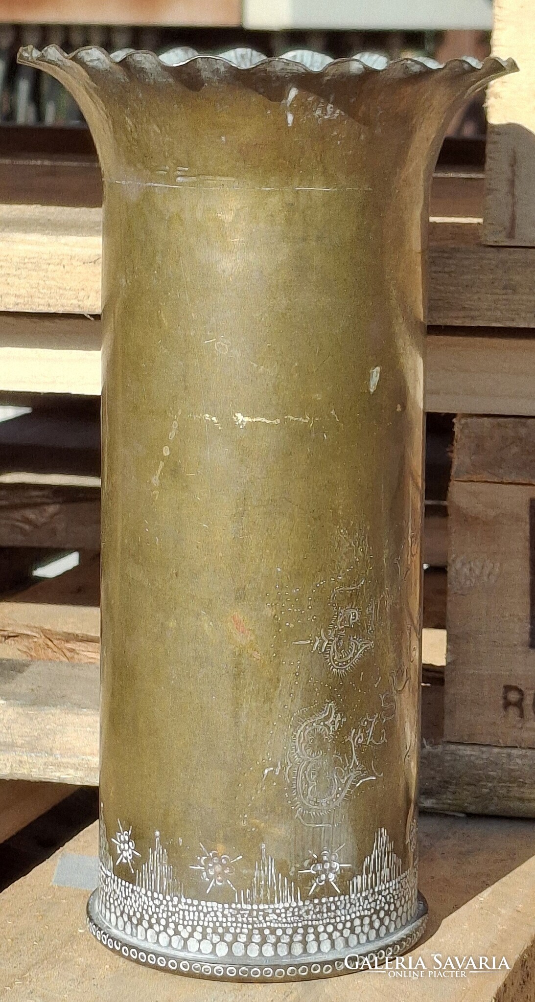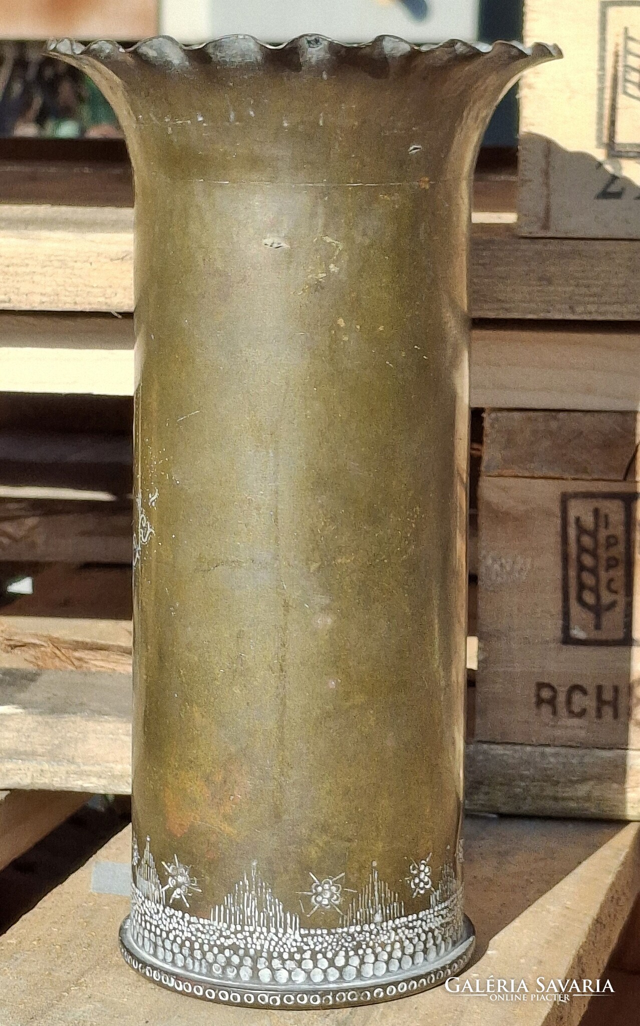 Lövegből készített, szépen megmunkált, hadifogoly munka, hadi emlék, díszváza.